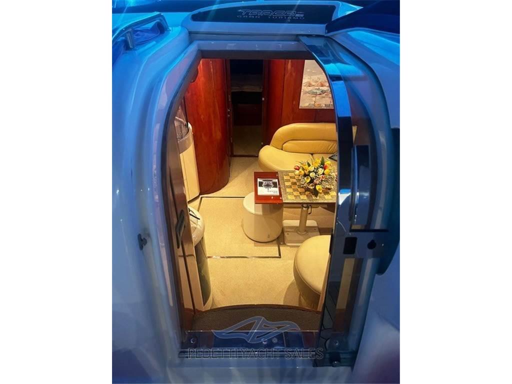 Notas de la instrumentaciónAllarme motore, Allarme sentina, Ancora, Angolo barra, Autoclave, 5 Batterie, Bussola, Caricabatterie, Comando motori elettronico (Volvo Penta), Contamiglia (Raymarine ), Doccia esterna, Ecoscandaglio (Raymarine ), Elica di prua - bow thruster, Flap elettrici, Garage per tender, Impianto antincendio, Interfono, Lavandino nel Pozzetto, Luci di cortesia, Passerella (Opacmare a scomparsa), Piattaforma, Pilota automatico (Raymarine), Plotter con antenna GPS (Raymarine Axiom 12), 3 Pompa di sentina automatica, Pompa di sentina manuale, Pozzetto Teak, Presa 220V banchina, Radio VHF (Raymarine), Rollbar, Salpa Ancore Elettrico, Scaletta da bagno, Tavolo pozzetto, Tavolo Salone Abbattibile, Tromba