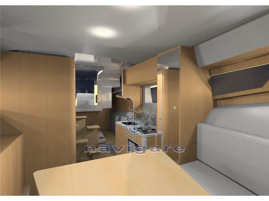 Notas de armamento, Il ponte sottocoperta offre un ambiente vivibile a pieno, molto spazioso ed arioso grazie alla sua altezza utile che supera i 190 cm, una luminosità interna grazie alle paratie laterali trasparenti senza precedenti in battelli di questa categoria, il comfort e l’eleganza degli interni vi accoglieranno regalandovi un ambiente caldo e raffinato, con una ricerca nei dettagli e nei particolari che vi faranno sentire a vostro agio in ogni condizione. Il suo design, la cura nei dettagli da yacht di lusso, il suo living interno è stato pensato per il massimo confort di vita a bordo.