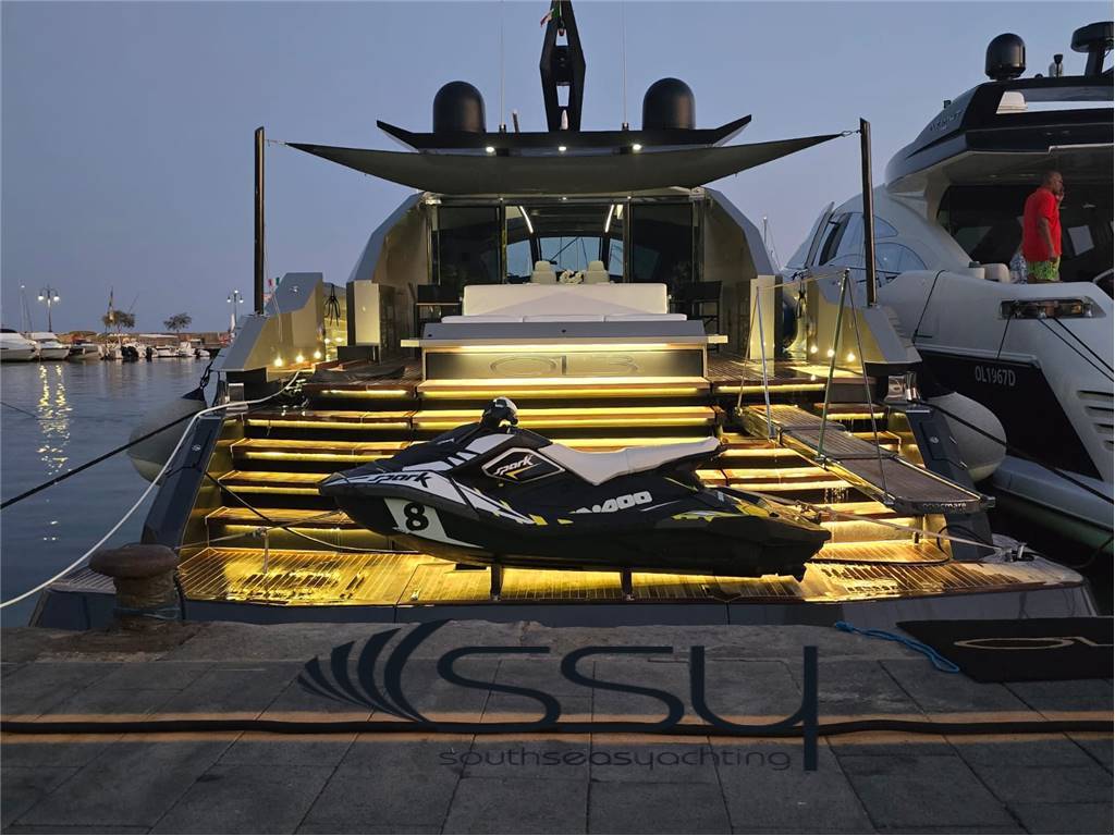 Notas internas- Ampio e luminosissimo salone con divano lineare e mobile bar/tv contrapposto, con affianco la scala di accesso alla zona equipaggio e cucina sottocoperta; - più avanti troviamo il tavolo da pranzo per 8 ospiti e due mobili laterali; - a seguire la plancia comandi con due sedili in pelle regolabili elettricamente e le due porte laterali di servizio, oltre alla scala di accesso alla zona notte; - sottocoperta verso poppa troviamo la cucina completa di piano cottura ad induzione Miele, forno elettrico Miele, doppio lavello, lavastoviglie, frigorifero, freezer, fabbricatore di ghiaccio e crew mess con TV, impianto stereo, telecamere di sorveglianza e lavasciuga - cabina comandante + cabina equipaggio doppia ed un bagno in comune con doccia. ZONA NOTTE - cabina armatoriale a mezza nave a tutto baglio completa di cabina armadio, angolo vanity, bagno con box doccia, impianto hifi e smart TV con surround; - cabina VIP a prua matrimoniale completa di bagno con box doccia, impianto hifi e smart TV con surround; - cabina ospiti a dritta con letti sovrapposti completa di bagno con box doccia, impianto hifi e smart TV; - cabina ospiti doppia a sx con letti in piano completa di box doccia, impianto hifi e smart TV. UPPER DECK - Spacious and extremely bright living room with a linear sofa and an opposite bar/TV cabinet, adjacent to the staircase leading to the crew area and below-deck galley; - Further forward is the dining table for 8 guests and two side cabinets; - Followed by the helm station with two electrically adjustable leather seats and two side service doors, as well as the staircase leading to the night area; - Below deck, towards the stern, is the fully equipped galley featuring a Miele induction cooktop, Miele electric oven, double sink, dishwasher, refrigerator, freezer, ice maker, and crew mess with TV, stereo system, surveillance cameras, and washer-dryer – captain’s cabin + twin crew cabin and a shared bathroom with shower. LOWER DECK - Full-beam midship master cabin complete with walk-in wardrobe, vanity corner, bathroom with shower box, hi-fi system, and smart TV with surround sound; - Forward VIP double cabin complete with bathroom with shower box, hi-fi system, and smart TV with surround sound; - Starboard guest cabin with bunk beds, complete with bathroom with shower box, hi-fi system, and smart TV; - Portside twin guest cabin with flat beds, complete with bathroom with shower box, hi-fi system, and smart TV. Notas de la instrumentaciónRAYMARINE Electronic EquipmentVHF/DSC Ray90 Black Box; Ray I70S multifunction display (echo/log/speed); EV300A autopilot with P7070Rs display; 2xAxiom XL19 multifunction chart plotter/radar; RMK-10 remote controller for Axiom XL19; RCR-SDUSBU SB/SD card reader; AIS 650A IS RX & TX; CP370 fishfinder B. Box; Simrad HS60G PS satellite Compass NMEA2K; Sailor 4065E Epirb; Raymarine digital HD radome 18’’ radar; rudder & flaps ind. level; trim tab for surface drive; YachtController remote joystick control; MTU engine display; Notas de armamento- elica di prua BCS;- faro di ricerca elettrico Sunshin; - 2 gruppi elettrogeni Kohler 24 Kw Efozd; - 20 batterie servizi Exide ES1100-6 200Ah; - 4 batterie avviamento motori Exide EP2100 240Ah; - 4 batterie elettronica motori Exide ES1600 140Ah; - 2 batterie gruppi elettrogeni Exide 100Ah; - Caricabatterie 2xQuick SBC Advanced Plus 1950; - 1xQuick SBC Advanced Plus 250 12V/25A; - Dissalatore Idromar MC2J 160 lt/h; - 2 autoclavi Gianneschi Ecoinox 2; - 2 Boiler Gianneschi 100lt; - Blower 4xGianeschi ELL 450/2; - A/C Condaria Dometic PCWM/FCL 30004 60mila BTU; - Ancora Lewmar Claw SS80Kg; - 2 winch di tonneggio Lewmar C5; - impianto illuminazione int/est a led; - 4 luci subacquee Thru hull dual colour 6.8; - tender Williams Turbojet 325; - tender garage ad apertura idraulica; - KVH TV6 SAT antenna + TV SAT system; - WIFI network lan + UBIQUITI router; - PepLink MAX BR1 LTE 4G/LTE; - 5 smart TV (salone + cabine ospiti + equipaggio); - impianto stereo con surround int/est (JL Audio); - 2 frigobar + icemaker + winecooler; - passerella idraulica telescopia OpacMare; - tendalini ed oscuranti completi; - tenda di poppa e di prua con pali ad innesto; - dotazioni di sicurezza complete. - BCS bow thruster; - Sunshin electric searchlight; - 2 Kohler 24 kW Efozd generators; - 20 Exide ES1100-6 200Ah service batteries; - 4 Exide EP2100 240Ah engine starter batteries; - 4 Exide ES1600 140Ah engine electronics batteries; - 2 Exide 100Ah generator batteries; - 2x Quick SBC Advanced Plus 1950 24V/80A battery chargers; - 1x Quick SBC Advanced Plus 250 12V/25A; - Idromar MC2J watermaker, 160 l/h; - 2 Gianneschi Ecoinox 2 water pressure pumps; - 2 Gianneschi 100L boilers; - 4x Gianneschi ELL 450/2 blowers; - Condaria Dometic PCWM/FCL 30004 A/C system, 60,000 BTU; - Lewmar Claw stainless steel anchor, 80 kg; - 2 Lewmar C5 mooring winches; - Interior/exterior LED lighting system; - 4 Thru-hull dual-colour underwater lights 6.8; - Williams Turbojet 325 tender; - Tender garage with hydraulic opening; - KVH TV6 SAT antenna + SAT TV system; - Wi-Fi LAN network + UBIQUITI router; - PepLink MAX BR1 LTE 4G/LTE; - 5 Smart TVs (salon + guest cabins + crew area); - Indoor/outdoor stereo system with surround sound; - 2 minibars + icemaker + wine cooler; - OpacMare telescopic hydraulic gangway; - Full set of sunshades and privacy screens; - Fore and aft awning with removable poles; - Complete safety equipment. |