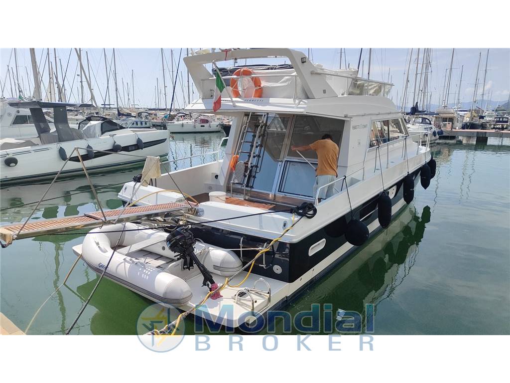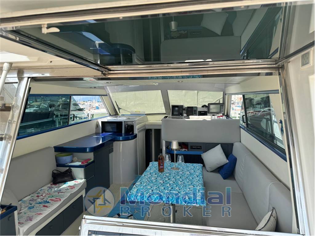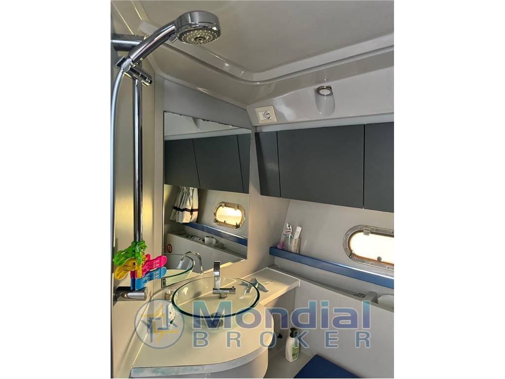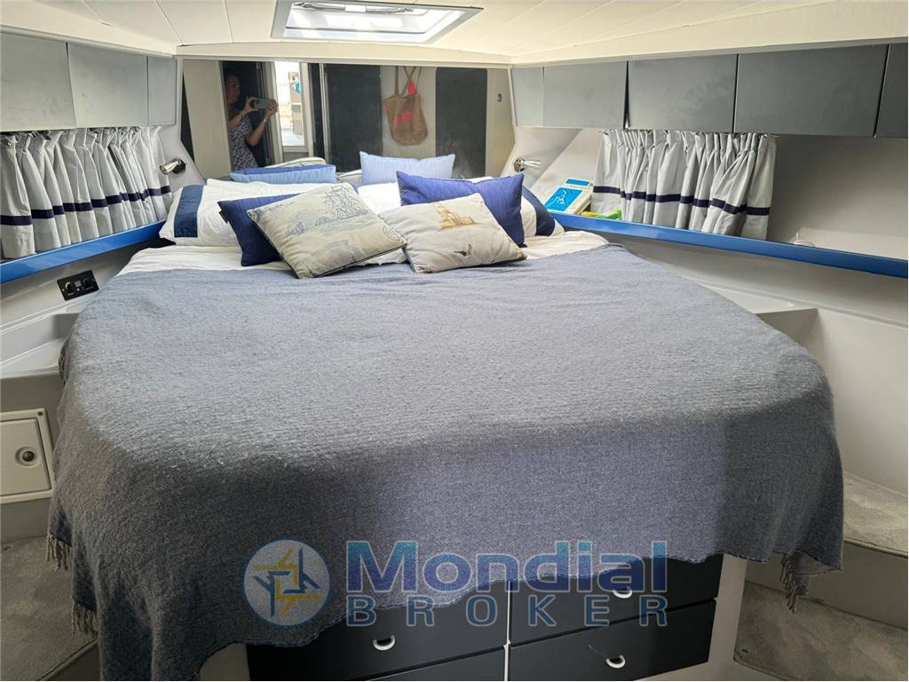 Notas internasSalone con cucina al piano , tre frigoriferi nuovi , uno sotto cucina , uno all'ingresso a cassetto e uno portatile su fly , forno microonde nuovo , pozzetto in teak, divani salone nuovi, moquette nuova , 2 bagni, rubinetteria nuova con top bagni e lavello in vetro , gruppo elettrogeno nuovo 4,5 kw, passerella elettroidraulica , plancetta allungata , tender e motore , 4 luci sub bicolore , nome retroilluminato , tutte le luci interne a led , luci segna passo in pozzetto ,impianto wi-fi , wrapping su murate e specchiatura su vetri, Pavimenti in legno.