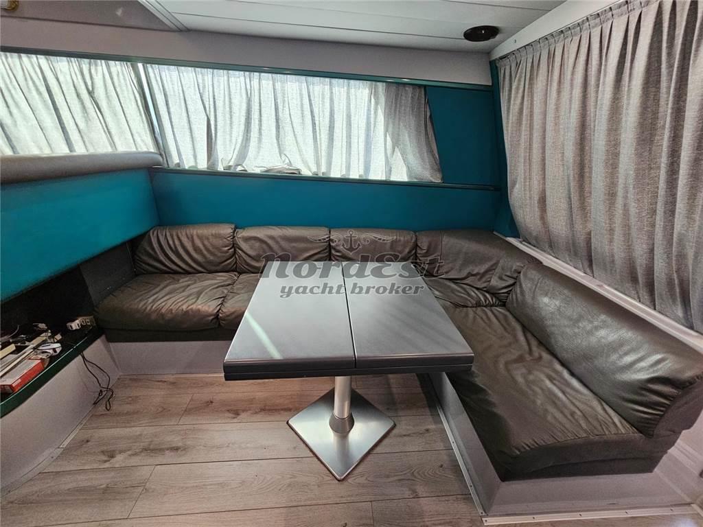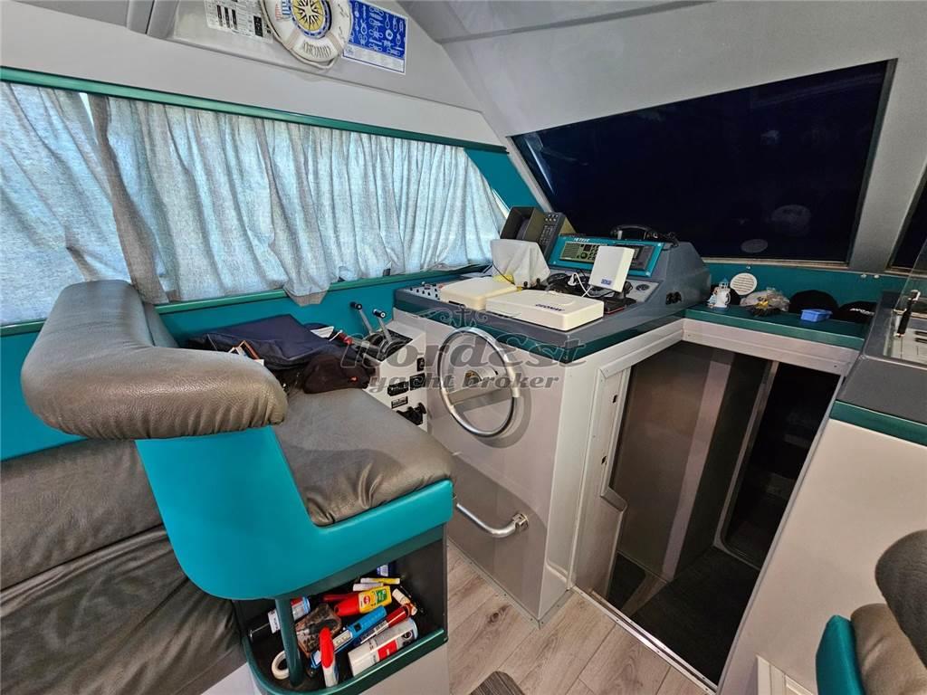 Notas internasAria condizionata: Presente Interni: DESCRIZIONE INTERNI Servizi con bidet. ----- Impianto stereo Impianto TV Tv Bagni: 2 Cabine: 2 Posti letto: 6+2 Cucina Forno: Presente Frigorifero Notas de la instrumentaciónPilota automatico: Presente Ecoscandaglio: Presente GPS: Presente Plancetta: Presente Radar: Presente Strumenti vento Vhf: Presente Notas de armamentoImpianto antincendio Bimini top: si in acciao Copertura pozzetto Cuscineria prendisole Doccia esterna Elica di manovra a poppa: Presente Elica di manovra a prua: Presente Flaps Frigorifero esterno Luci di cortesia |