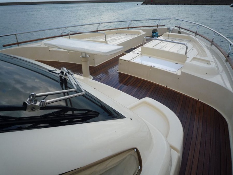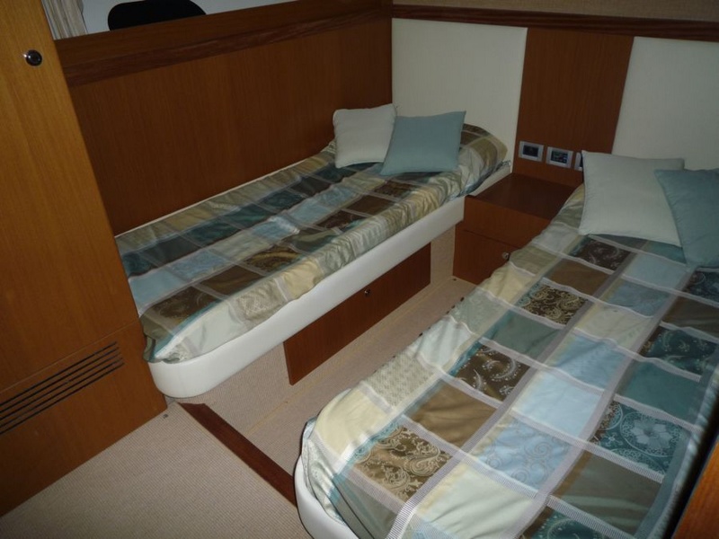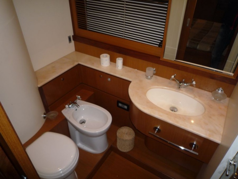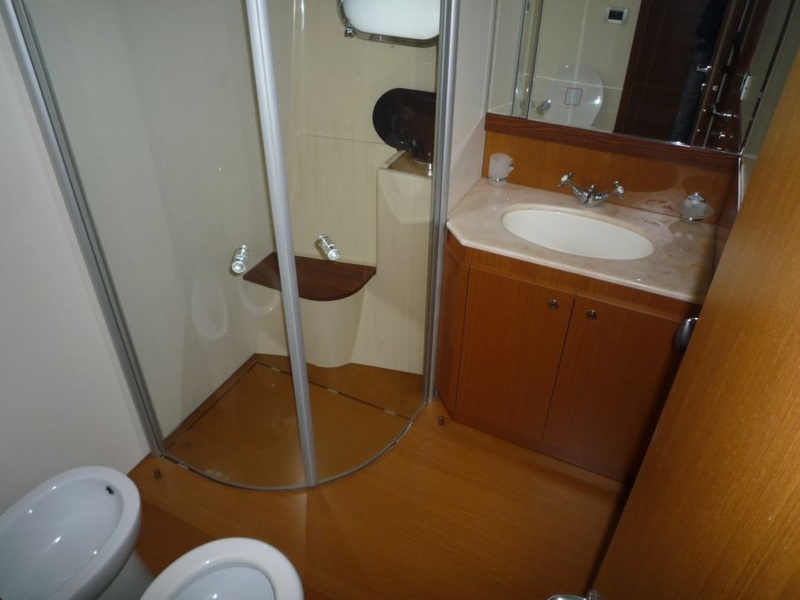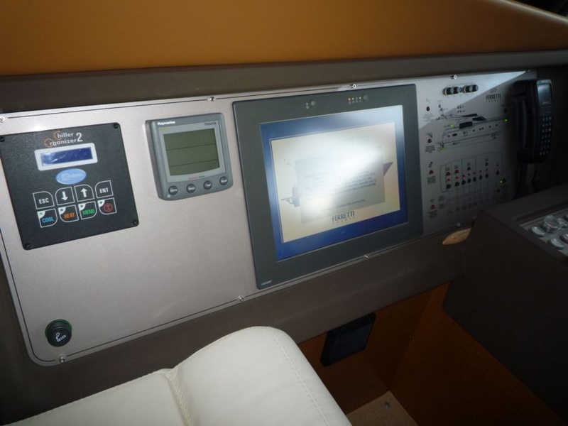 Notas internasWhen one given passion continues for over four decades, it becomes history. Brothers Alessandro and Norberto Ferretti founded Ferretti in 1968, a symbolic year for the history of both the world and the sea. Three years later, in 1971, their first wooden motor sailer enjoyed great success when presented at the Genoa Boat Show. Fitted with both a sail and an engine, the yacht was 10 metres in length and especially comfortable for cruises. The brothers’ lucky intuition meant that soon afterwards Ferretti was listed amongst the most prestigious shipyards in the world. In 1982, Ferretti presented its first motor yacht and began building sport fisherman models too, both open and flybridge. These yachts already featured revolutionary innovations which are still applied throughout the nautical industry today: a stern helm position, swinging windows in the salon which open out onto the cockpit, and an internal passage from the salon to the flying bridge. The nineties were characterised by research and development within the sphere of nautical engineering through establishment of the Engineering division, and winning performances in Offshore competitions. Over the next few years, the company expanded to encompass its current range, renewed year after year with cutting-edge design solutions. Ferretti Yachts division was created in September 2002, a historic brand of the group, production and marketing fibreglass fly bridge boats from 47 to 88 feet. The strategy of expansion and growth focuses on the evolution of the products and on technological innovation and design of new boats, from here come the introduction of the ARG system, developed with Mitsubishi, and the large open-view window of the ship owner's cabin in almost all models in the range. Today, Ferretti Yachts’ business is mainly international and covers Europe, the USA, the Middle East and the Far East. The constantly developing foreign markets are safeguarded by a widespread network which continues to expand and represents one of the strategic strengths of Ferretti Yachts. Ferretti 690 project, result of the working relationship between Studio Zuccon International Project, AYT - Advanced Yacht Technology and Centro Stile Ferrettigroup, that will be presented during Spring 2012, is characterized by the new design of outer sporty lines, with a continuous glazing from stern to bow, with increased height, reaching the gunwale. Large windows lighting up the VIP fore cabin and the guest cabins have been added to the large open view glazing where the Owner cabin is located. The sleek outer lines have been further enhanced by the flybridge, with an elongated tail. The new Project - approximately 21 metres long and 5.5 metres wide - presents two available interior layouts, with three or four cabins. The main deck features a rational distribution of spaces. On the lower deck the two options are based on a different position of the stairs and on a different design of lobby, guest cabins and heads amidships. The full-beam owner cabin is even more functional and spacious. The decision to place the bathroom - with separate shower - and the large walk-in wardrobe towards the stern, increases the Owners' privacy and the distance between this cabin and the engine room. The flybridge has been extensively renewed. Last-generation engines have been selected: two MAN 8V, 1000 mph in the standard version, 1200 mph as an option. These compact engines will allow to save space in the engine room, where a second optional genset can therefore be installed. Imbarcazione in condizioni generali buone , interni molto belli e curati , esterni da lucidare. LAYOUT: - cabina vip con letto matrimoniale a prua, bagno con box doccia, armadio - cabina armatoriale: atutto baglio a poppavia con grande finestra a poppa , letto matrimoniale, bagno con box doccia, armadio - cabina doppia: cabina ospiti con 2 letti in piano, bagno con box doccia, armadio - dinette al ponte superiore con divano ad u in pelle chiara, tavolo da pranzo, tv lcd, mobile tv in legno laccato - cucina aperta al ponte inferiore con piastra in vetroceramica a 4 fuochi, lavello, forno, lavastoviglie - cabina equipaggio a centro barca doppia con letti a castello e bagno proprio con servizio e con accesso diretto alla sala macchine Interni classici in massello e con inserti e divanerie in pelle e rivestimenti color panna. Spaziosa Cabina Armatoriale a poppavia con ampia finestratura sullo specchio di poppa, grande letto matrimoniale ad isola con mobile scrittoio , TV Lcd 26' e con bagno privato con ampio lavabo, bidet e wc con box doccia separato - Cabina vip con letto matrimoniale e bagno privato ad estrema prua con mobile lavabo bidet e wc e box doccia separato - cabina ospiti con 2 letti in piano e accesso al bagno privato - moquette chiara nella zona notte - cabina equipaggio con 2 letti a castello e servizio + accesso a sala macchine - cucina completa con piastra elettrica a 4 fuochi, microonde, frigorifero 90 lt , lavastoviglie - 1 frigobar nella dinette esterna ed 1 frigo nel fly - icemaker - salone con divaneria a "c" in pelle crema e tavolo in ciliegio satinato + salottino con tavolo in teak e 2 poltrone rossse FRAU - a dritta dinette con divano ad Elle a murata, grande tavolo da pranzo in ciliegio e 3 sedie in pelle color panna come il divano - Ampio tavolo in teak in pozzetto - Mobile cucina completo sul fly composto da lavabo, frigo e barbecue - Notas de la instrumentaciónLugar de pilotaje interno: GuÃa ajustable sentado, rueda de manejo de computadoras de escritorio, acero inoxidable y teca con manejo de energÃa y ajustables en altura, varios comandos (torno, aletas, tergilavavetri, apertura, ventanas laterales, luces de navegación y búsqueda, Lavacadena, trompeta, motor habitación ventiladores y extractores.Equipo electrónico de Raynmarine completo y Furuno interconectado y repetido sobre la marcha: parámetros de gestión NAVIOP domótica para el buque y utilidades, displ
