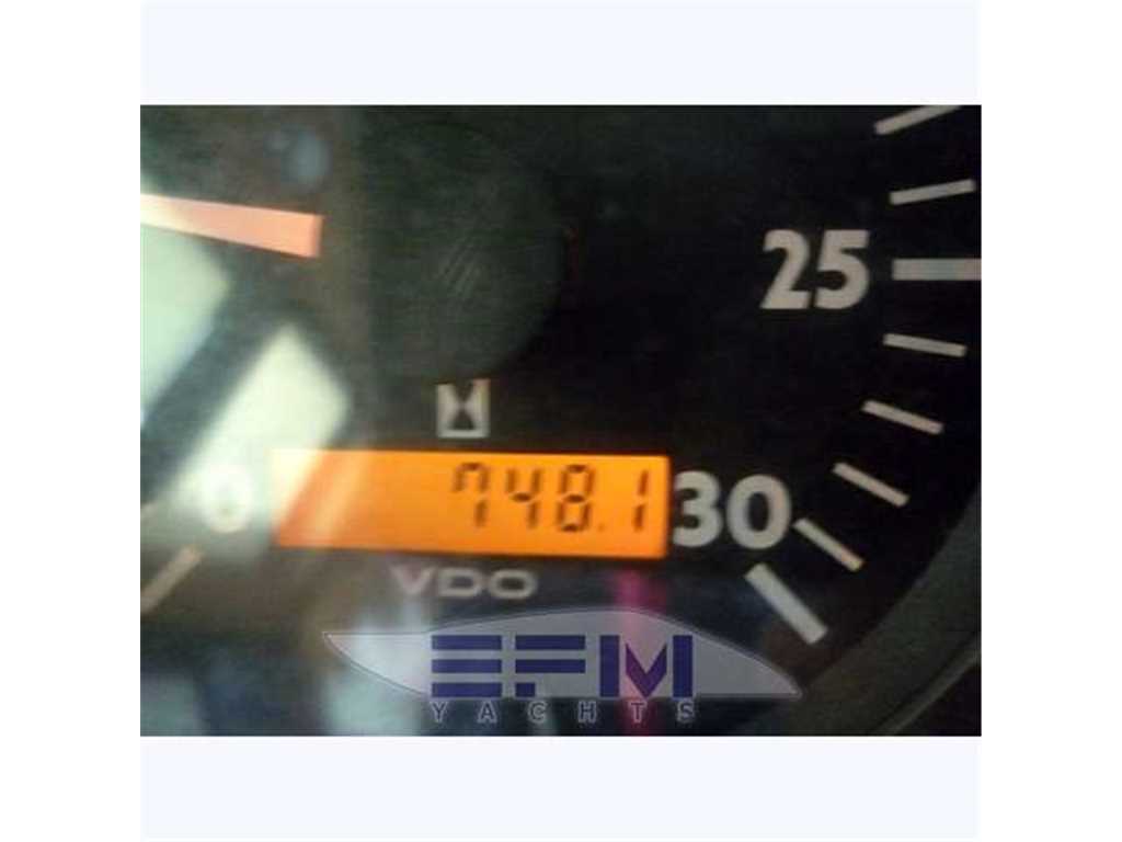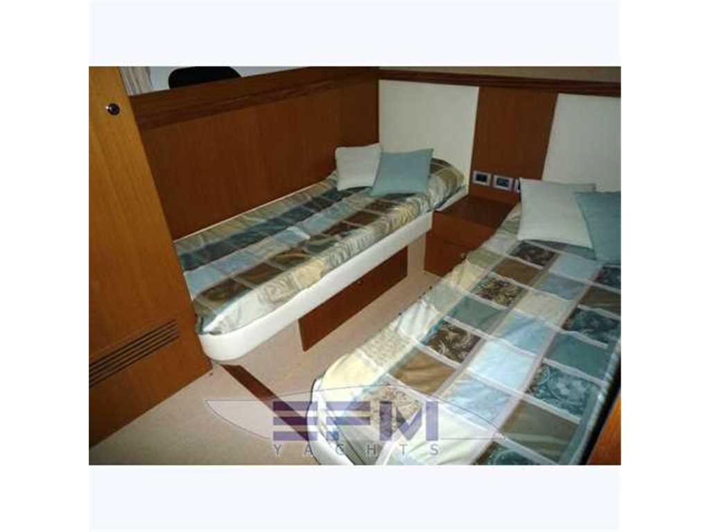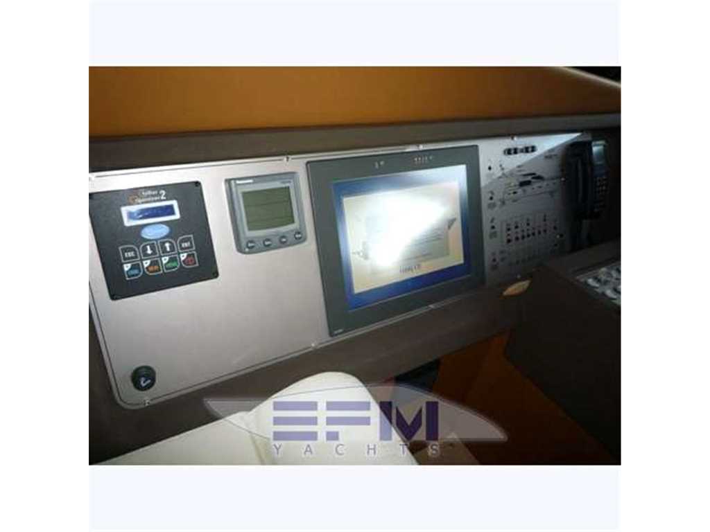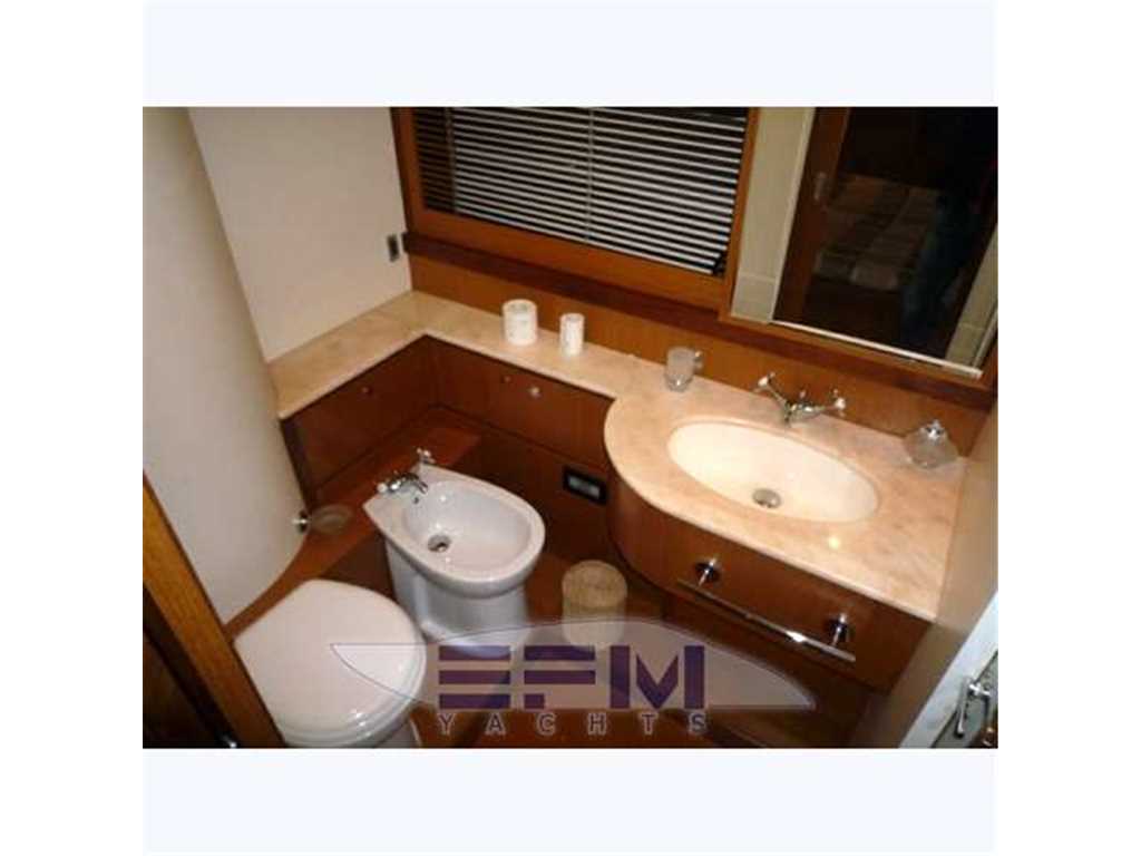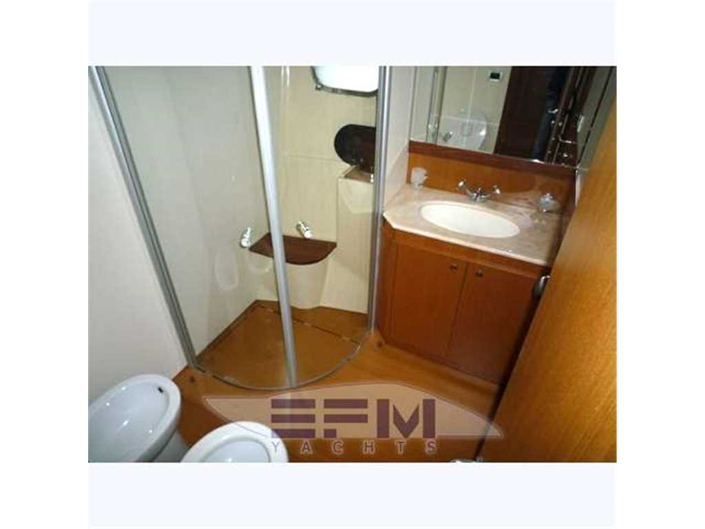 Notas internasWhen one given passion continues for over four decades, it becomes history. Brothers Alessandro and Norberto Ferretti founded Ferretti in 1968, a symbolic year for the history of both the world and the sea. Three years later, in 1971, their first wooden motor sailer enjoyed great success when presented at the Genoa Boat Show. Fitted with both a sail and an engine, the yacht was 10 metres in length and especially comfortable for cruises. The brothers’ lucky intuition meant that soon afterwards Ferretti was listed amongst the most prestigious shipyards in the world. In 1982, Ferretti presented its first motor yacht and began building sport fisherman models too, both open and flybridge. These yachts already featured revolutionary innovations which are still applied throughout the nautical industry today: a stern helm position, swinging windows in the salon which open out onto the cockpit, and an internal passage from the salon to the flying bridge. The nineties were characterised by research and development within the sphere of nautical engineering through establishment of the Engineering division, and winning performances in Offshore competitions. Over the next few years, the company expanded to encompass its current range, renewed year after year with cutting-edge design solutions. Ferretti Yachts division was created in September 2002, a historic brand of the group, production and marketing fibreglass fly bridge boats from 47 to 88 feet. The strategy of expansion and growth focuses on the evolution of the products and on technological innovation and design of new boats, from here come the introduction of the ARG system, developed with Mitsubishi, and the large open-view window of the ship owner's cabin in almost all models in the range. Today, Ferretti Yachts’ business is mainly international and covers Europe, the USA, the Middle East and the Far East. The constantly developing foreign markets are safeguarded by a widespread network which continues to expand and represents one of the strategic strengths of Ferretti Yachts. Ferretti 690 project, result of the working relationship between Studio Zuccon International Project, AYT - Advanced Yacht Technology and Centro Stile Ferrettigroup, that will be presented during Spring 2012, is characterized by the new design of outer sporty lines, with a continuous glazing from stern to bow, with increased height, reaching the gunwale. Large windows lighting up the VIP fore cabin and the guest cabins have been added to the large open view glazing where the Owner cabin is located. The sleek outer lines have been further enhanced by the flybridge, with an elongated tail. The new Project - approximately 21 metres long and 5.5 metres wide - presents two available interior layouts, with three or four cabins. The main deck features a rational distribution of spaces. On the lower deck the two options are based on a different position of the stairs and on a different design of lobby, guest cabins and heads amidships. The full-beam owner cabin is even more functional and spacious. The decision to place the bathroom - with separate shower - and the large walk-in wardrobe towards the stern, increases the Owners' privacy and the distance between this cabin and the engine room. The flybridge has been extensively renewed. Last-generation engines have been selected: two MAN 8V, 1000 mph in the standard version, 1200 mph as an option. These compact engines will allow to save space in the engine room, where a second optional genset can therefore be installed. Imbarcazione in condizioni generali buone , interni molto belli e curati , esterni da lucidare. LAYOUT: - cabina vip con letto matrimoniale a prua, bagno con box doccia, armadio - cabina armatoriale: atutto baglio a poppavia con grande finestra a poppa , letto matrimoniale, bagno con box doccia, armadio - cabina doppia: cabina ospiti con 2 letti in piano, bagno con box doccia, armadio - dinette al ponte superiore con divano ad u in pelle chiara, tavolo da pranzo, tv lcd, mobile tv in legno laccato - cucina aperta al ponte inferiore con piastra in vetroceramica a 4 fuochi, lavello, forno, lavastoviglie - cabina equipaggio a centro barca doppia con letti a castello e bagno proprio con servizio e con accesso diretto alla sala macchine Interni classici in massello e con inserti e divanerie in pelle e rivestimenti color panna. Spaziosa Cabina Armatoriale a poppavia con ampia finestratura sullo specchio di poppa, grande letto matrimoniale ad isola con mobile scrittoio , TV Lcd 26' e con bagno privato con ampio lavabo, bidet e wc con box doccia separato - Cabina vip con letto matrimoniale e bagno privato ad estrema prua con mobile lavabo bidet e wc e box doccia separato - cabina ospiti con 2 letti in piano e accesso al bagno privato - moquette chiara nella zona notte - cabina equipaggio con 2 letti a castello e servizio + accesso a sala macchine - cucina completa con piastra elettrica a 4 fuochi, microonde, frigorifero 90 lt , lavastoviglie - 1 frigobar nella dinette esterna ed 1 frigo nel fly - icemaker - salone con divaneria a "c" in pelle crema e tavolo in ciliegio satinato + salottino con tavolo in teak e 2 poltrone rossse FRAU - a dritta dinette con divano ad Elle a murata, grande tavolo da pranzo in ciliegio e 3 sedie in pelle color panna come il divano - Ampio tavolo in teak in pozzetto - Mobile cucina completo sul fly composto da lavabo, frigo e barbecue - Notas de la instrumentaciónPosto di pilotaggio interno: seduta guida regolabile, desk computer, timoneria a ruota in acciaio inox e teak con idroguida e regolabile in altezza, comandi vari (verricello, flaps, tergilavavetri, vetri laterali apribili, luci navigazione e ricerca, lavacatena, tromba, estrattori e ventilatori sala macchine.Strumentazione elettronica completa Raynmarine e Furuno interfacciata e ripetuta anche sul fly : Domotica NAVIOP per gestione parametri imbarcazione e utenze, display multifunzione Pilota automatico Raymarine