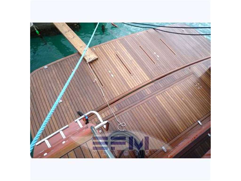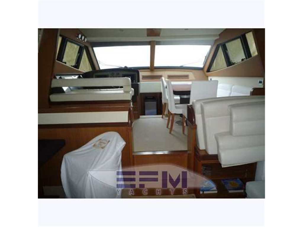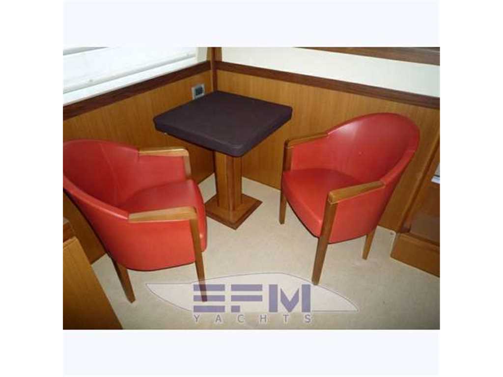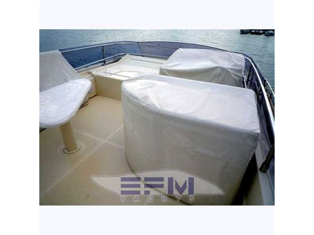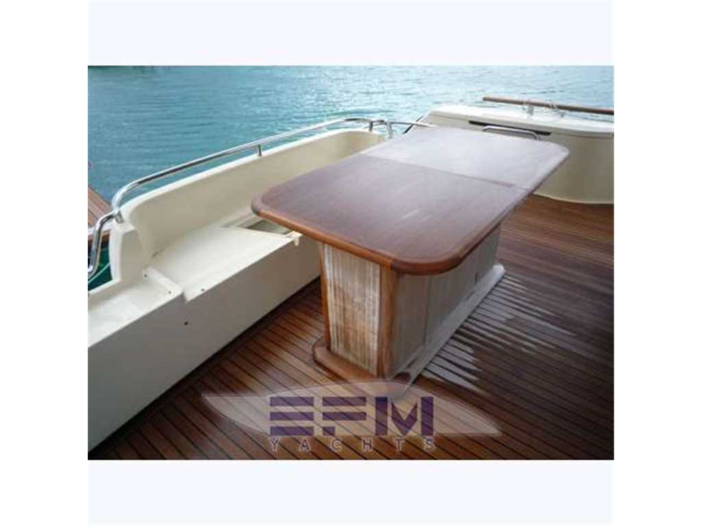 Notas internasWhen one given passion continues for over four decades, it becomes history. Brothers Alessandro and Norberto Ferretti founded Ferretti in 1968, a symbolic year for the history of both the world and the sea. Three years later, in 1971, their first wooden motor sailer enjoyed great success when presented at the Genoa Boat Show. Fitted with both a sail and an engine, the yacht was 10 metres in length and especially comfortable for cruises. The brothers’ lucky intuition meant that soon afterwards Ferretti was listed amongst the most prestigious shipyards in the world. In 1982, Ferretti presented its first motor yacht and began building sport fisherman models too, both open and flybridge. These yachts already featured revolutionary innovations which are still applied throughout the nautical industry today: a stern helm position, swinging windows in the salon which open out onto the cockpit, and an internal passage from the salon to the flying bridge. The nineties were characterised by research and development within the sphere of nautical engineering through establishment of the Engineering division, and winning performances in Offshore competitions. Over the next few years, the company expanded to encompass its current range, renewed year after year with cutting-edge design solutions. Ferretti Yachts division was created in September 2002, a historic brand of the group, production and marketing fibreglass fly bridge boats from 47 to 88 feet. The strategy of expansion and growth focuses on the evolution of the products and on technological innovation and design of new boats, from here come the introduction of the ARG system, developed with Mitsubishi, and the large open-view window of the ship owner's cabin in almost all models in the range. Today, Ferretti Yachts’ business is mainly international and covers Europe, the USA, the Middle East and the Far East. The constantly developing foreign markets are safeguarded by a widespread network which continues to expand and represents one of the strategic strengths of Ferretti Yachts. Ferretti 690 project, result of the working relationship between Studio Zuccon International Project, AYT - Advanced Yacht Technology and Centro Stile Ferrettigroup, that will be presented during Spring 2012, is characterized by the new design of outer sporty lines, with a continuous glazing from stern to bow, with increased height, reaching the gunwale. Large windows lighting up the VIP fore cabin and the guest cabins have been added to the large open view glazing where the Owner cabin is located. The sleek outer lines have been further enhanced by the flybridge, with an elongated tail. The new Project - approximately 21 metres long and 5.5 metres wide - presents two available interior layouts, with three or four cabins. The main deck features a rational distribution of spaces. On the lower deck the two options are based on a different position of the stairs and on a different design of lobby, guest cabins and heads amidships. The full-beam owner cabin is even more functional and spacious. The decision to place the bathroom - with separate shower - and the large walk-in wardrobe towards the stern, increases the Owners' privacy and the distance between this cabin and the engine room. The flybridge has been extensively renewed. Last-generation engines have been selected: two MAN 8V, 1000 mph in the standard version, 1200 mph as an option. These compact engines will allow to save space in the engine room, where a second optional genset can therefore be installed. Imbarcazione in condizioni generali buone , interni molto belli e curati , esterni da lucidare. LAYOUT: - cabina vip con letto matrimoniale a prua, bagno con box doccia, armadio - cabina armatoriale: atutto baglio a poppavia con grande finestra a poppa , letto matrimoniale, bagno con box doccia, armadio - cabina doppia: cabina ospiti con 2 letti in piano, bagno con box doccia, armadio - dinette al ponte superiore con divano ad u in pelle chiara, tavolo da pranzo, tv lcd, mobile tv in legno laccato - cucina aperta al ponte inferiore con piastra in vetroceramica a 4 fuochi, lavello, forno, lavastoviglie - cabina equipaggio a centro barca doppia con letti a castello e bagno proprio con servizio e con accesso diretto alla sala macchine Interni classici in massello e con inserti e divanerie in pelle e rivestimenti color panna. Spaziosa Cabina Armatoriale a poppavia con ampia finestratura sullo specchio di poppa, grande letto matrimoniale ad isola con mobile scrittoio , TV Lcd 26' e con bagno privato con ampio lavabo, bidet e wc con box doccia separato - Cabina vip con letto matrimoniale e bagno privato ad estrema prua con mobile lavabo bidet e wc e box doccia separato - cabina ospiti con 2 letti in piano e accesso al bagno privato - moquette chiara nella zona notte - cabina equipaggio con 2 letti a castello e servizio + accesso a sala macchine - cucina completa con piastra elettrica a 4 fuochi, microonde, frigorifero 90 lt , lavastoviglie - 1 frigobar nella dinette esterna ed 1 frigo nel fly - icemaker - salone con divaneria a "c" in pelle crema e tavolo in ciliegio satinato + salottino con tavolo in teak e 2 poltrone rossse FRAU - a dritta dinette con divano ad Elle a murata, grande tavolo da pranzo in ciliegio e 3 sedie in pelle color panna come il divano - Ampio tavolo in teak in pozzetto - Mobile cucina completo sul fly composto da lavabo, frigo e barbecue - Notas de la instrumentaciónPosto di pilotaggio interno: seduta guida regolabile, desk computer, timoneria a ruota in acciaio inox e teak con idroguida e regolabile in altezza, comandi vari (verricello, flaps, tergilavavetri, vetri laterali apribili, luci navigazione e ricerca, lavacatena, tromba, estrattori e ventilatori sala macchine.Strumentazione elettronica completa Raynmarine e Furuno interfacciata e ripetuta anche sul fly : Domotica NAVIOP per gestione parametri imbarcazione e utenze, display multifunzione Pilota automatico Raymarine