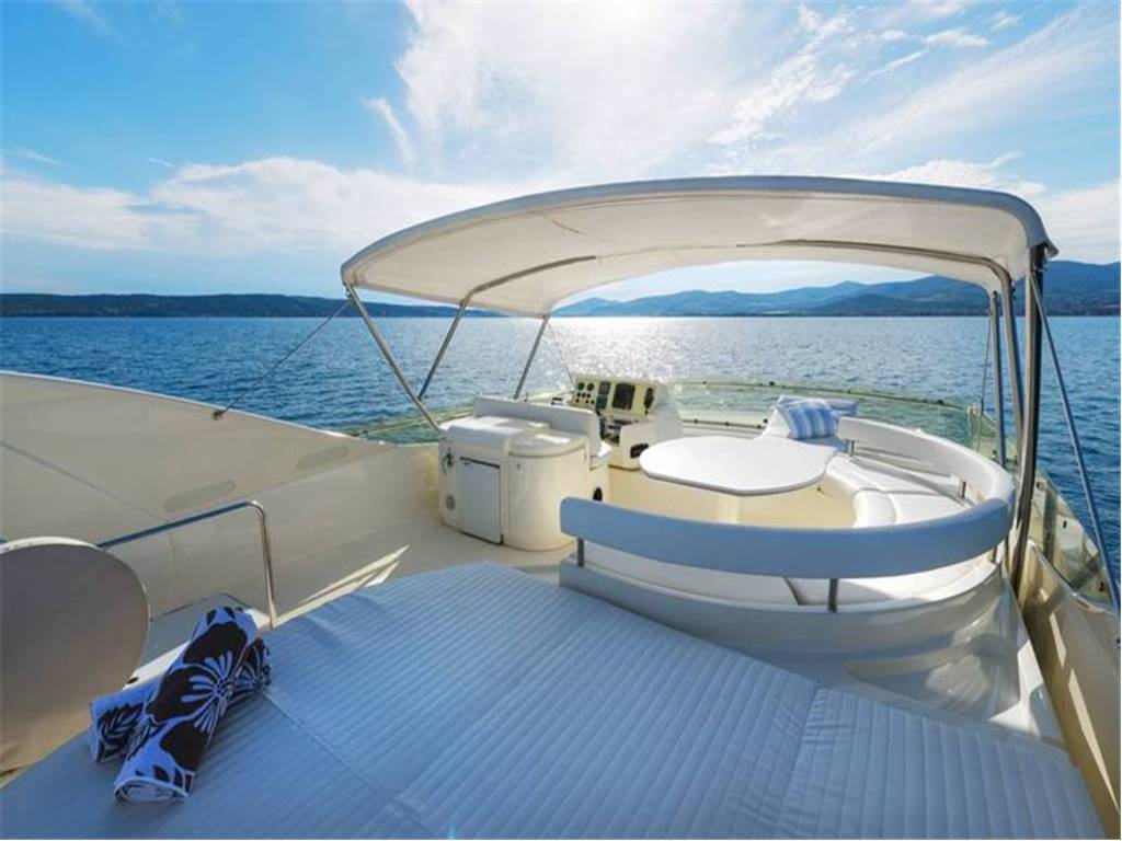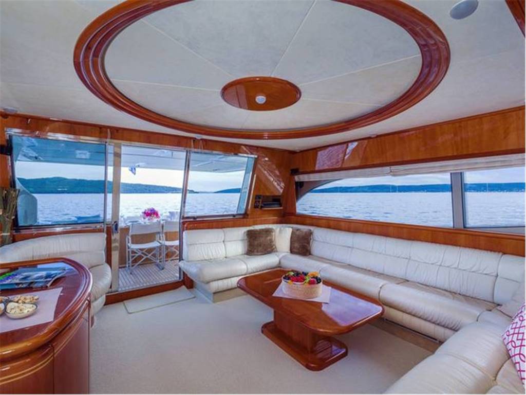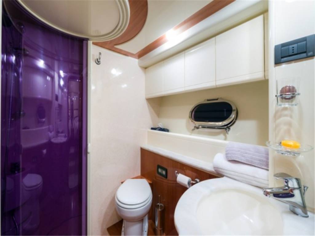 Notas internasLAYOUT: - cabina vip con letto matrimoniale a prua, bagno con box doccia, armadio - cabina armatoriale: a centro barca con letto matrimoniale, salottino, bagno con box doccia,armadi - cabina ospiti con 2 letti in piano , bagno con box doccia, armadio - seconda cabina ospiti con 2 letti in piano , bagno con box doccia, armadio - dinette con divano ad u in pelle , tavolo da pranzo, tv lcd, mobile tv in legno . - cucina separata con piastra in vetroceramica a 4 fuochi, lavello, forno, frigo, cappa ; servizi: 3 - cabina equipaggio con 2 cabine (3 letti) + bagno di servizio e con accesso dal pozzetto - Interni in ciliegio Americano con inserti e divani in pelle e rivestimenti color chiaro. Spaziosa Cabina Armatoriale a centro barca con finestrature a murata, grande letto matrimoniale ad isola con mobile scrittoio, salottino con 2 poltrone e con bagno privato con ampio lavabo, bidet e wc con box doccia separato - Cabina vip con letto matrimoniale e bagno privato ad estrema prua con mobile lavabo bidet e wc e box doccia separato - 2 cabine ospiti con 2 letti in piano e con bagno privato - moquette chiara nella zona notte - cabina equipaggio con 2 cabine 3 letti singoli e con servizio privato + lavasciuga e congelatore - cucina completa con piastra elettrica a 4 fuochi, microonde, frigorifero 130 lt , lavastoviglie - 1 frigobar nella dinette esterna ed 1 frigo nel fly - icemaker in pozzetto - salone con divaneria a "U" in pelle crema e tavolo in ciliegio - dinette con ampio grande tavolo da pranzo in legno e sedie - Ampio pozzetto in teak con splendido tavolo e divano + sedie regista - Mobile servizio sul fly con lavabo e frigo - Suddivisione e caratteristiche interni: Cabina armatore a centro barca con matrimoniale, armadio a doppia anta, vanity con scrittoio, 2 poltrone con tavolo , bagno privato completo di coccia separata. Cabina VIP a prua con matrimoniale, un armadio per lato, bagno. Cabina ospiti di dritta con letti in piano, armadio a murata e con accesso diretto al bagno completo di doccia e con accesso anche esterno. Seconda cabina ospiti di sx con letti in piano, armadio a murata e con accesso diretto al bagno privato completo di doccia - Salone, a dritta, con mobile in ciliegio e radica, icemaker, storage, TV color con VCR e bar con porta bottiglie , divano ad U a sinistra con tavolo. Dinette su secondo livello a dritta verso proravia con tavolo da pranzo e sedie. Cucina separata con porta sulla sinistra, contrapposta alla dinette e con piano cottura in vetroceramica a 4 fuochi , microonde + grill, piano di lavoro in granulon con due lavelli e miscelatore, aspiratore, frigo da 120 litri, mobili sotto piano di lavoro e mobile per storage servizio completo di posateria, pentole e stoviglie per 8 persone, lavastoviglie Notas de la instrumentaciónPosto di pilotaggio interno: seduta guida regolabile, desk computer, timoneria a ruota in acciaio inox e teak con idroguida e regolabile in altezza, comandi vari (verricello, flaps, tergi lavavetri, vetri laterali apribili, luci navigazione e ricerca, lava catena, tromba, estrattori e ventilatori sala macchine.Strumentazione elettronica completa Raymarine interfacciata e ripetuta anche sul fly : display multifunzione Pilota automatico Raymarine - Tridata Raymarine St 60, radiotelefono VHF - Plotter cartografico a colori GEONAV(GPS, Plotter cartografico), ST 6000 Plus (autopilota, angolo barra, bussola magnetica, log, eco), pannello sinottico strumentazioni e indicatori motori, telecomandi monoleva elettronici Micro commander, strumentazione VDO, Zona carteggio: in plancia con desk computer, luce e portacarte. Quadro e impiantistiche elettriche di grande qualità, con relais stacca batterie Bosch, due carica batterie separati per le differenti utenze, due quadri elettrici (uno in sala macchine stagno e uno in plancia), interruttori magnetotermici ad elevata affidabilità. Dotazioni oltre quelle indicate; generatori , flaps idraulici, batterie, 2 carica batterie, boiler, impianto antincendio, aria condizionata . Zona di prua: pulpito, verricello 2 salpa ancora 2000 W, 2 ancore Bruce, gavone per ancora e catena, attrezzature di ormeggio, prendisole con cuscineria, passo uomo, finestratura in cristallo temperato con finitura lucida . Notas de armamentoDue generatori Kohler 17 e 9kw - elica di prua e di poppa - aria condizionata - riscaldamento - 2 verricelli Salpancora a prua - 2 Winches tonneggio a poppa - impianto tv satellitare - tv lcd 50' nel salone , da 26' in tutte le cabine e da 40' in Armatoriale - terza stazione di comando a poppa - splendido tavolo in teak nel pozzetto con divano x 6 persone - frigobar nel salone - secondo frigo sul fly con lavabo - porta uscita laterale dalla cucina ad apertura elettro-idraulica -luci extra camminamenti laterali, pozzetto luci extra sotto lo spoiler - passerella idraulica 4 mt - serbatoio acque nere - gruetta sul fly - impianto antincendio sala macchine- dissalatore Idromar 130lt/h - pozzetto e passavanti in teak - luci cortesia scala accesso cabine - plancetta di poppa in teak - scaletta bagno idraulica - doccetta esterna - lavasciuga + congelatore in cabina equipaggio 3 posti con A/C e TV - bimini top fly - Cucina completa con elettrodomestici ,lavastoviglie piastra vetroceramica ,freezer supplementare - norvegese pozzetto con appendici laterali , dotazioni sicurezza , tender LOMAC 3,60 mt con fuoribordo Yamaha 30cv 2T - |