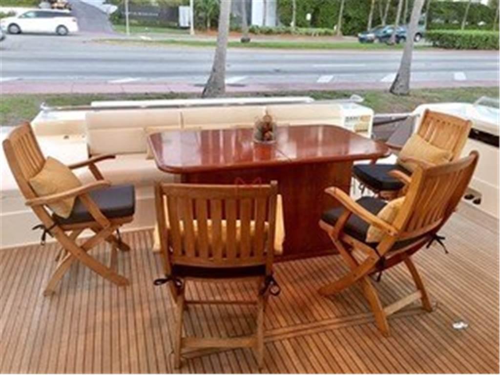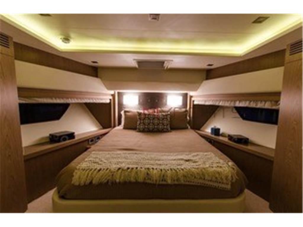 Notas internasOn the port side is a guest twin cabin with ensuite. Starboard side guest cabin features a queen bed, closet and ensuite. Similar to the guest cabin, the VIP Cabin also features Queen bed and ensuite. Notas de la instrumentaciónAIS, Antenna radar, Bussola, Comando motori elettronico, Contametri catena, Contamiglia, Display, Ecoscandaglio, GPS, Interfono, Joystick, Log, MeteoFax, Pilota automatico, Plotter, Plotter con antenna GPS, Radar, Radio VHF, Sonar, SSB, Stazione vento, Telefono satellitare.Notas de armamentoAllestimento tecnico e di coperta:Ancora, Asse di rispetto, Autogonfiabile, Doccia esterna, Elica di prua - bow thruster, Faro orientabile, Gruette, Gruette per motore fuoribordo, Gruette per tender, Lavaggio catena, Luci subacquee, Passerella, Piattaforma, Raddrizzatore, Tavolo pozzetto, Tender, Winch, Winch Elettrico. Dotazioni domestiche di bordo: Aria condizionata, BBQ/ Grill, Impianto acque nere, Riscaldamento, WC marino elettrico. Dotazioni di sicurezza: Dotazioni di sicurezza oltre 50 miglia, E.P.I.R.B.. Intrattenimento: Altoparlanti, DVD, Impianto TV, Personal computer, Radio AM/FM, Ricevitore satellitare, Stereo, TV, VHS. Cucina ed elettrodomestici: Aspirapolvere centralizzato, Congelatore, Cucina, Forno, Frigorifero esterno, Frigorifero interno, Ghiacciaia, ICE Maker, Lavasciuga, Lavastoviglie, Lavatrice, Microonde, Piastra elettrica, Piastra in vetroceramica. Tappezzerie: Cuscineria completa, Cuscineria di poppa, Cuscineria di prua, Cuscineria fly, Cuscineria Pozzetto, Telo copriconsolle, Telo coprisedile, Tendalino. |