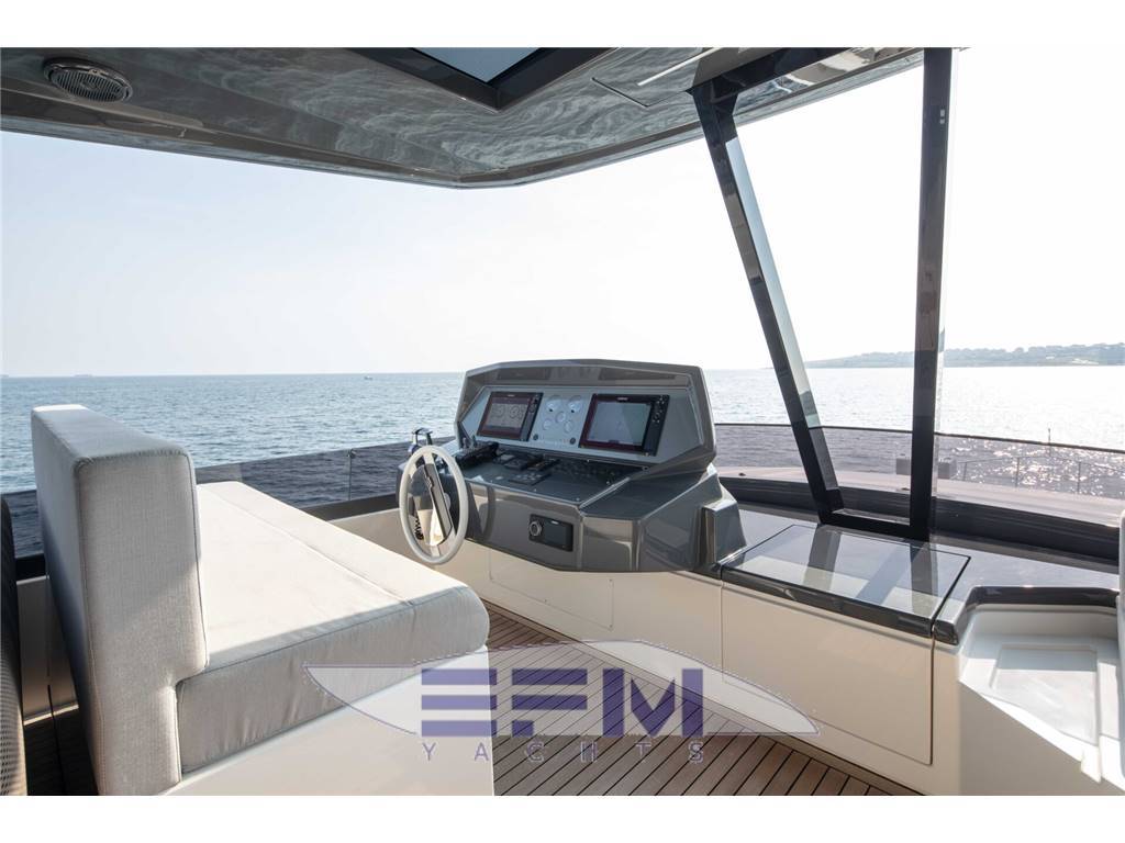 Il flybridge dal design aerodinamico, linee filanti e forme nette, soddisfa ogni desiderio dell’armatore in termini di comfort, stile e navigabilità. |