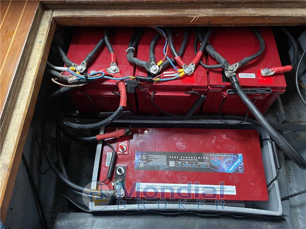 Notas internasCabina ospiti con 2 letti a castello, prese USB prese 220 Volt. Secondo bagno Rifatto completamente, con WC elettrico, Lavello e doccia separata. Terza cabina divisa ad uso cabina armadi e locale tecnico con possibilità di ripristino a terza cabina letti a castello. Grandissima Dinette con divano a L e divano opposto, tavolo da colazione e tavolo centrale. Grande cucina a C con Cucina a gas, forno , doppio lavello inox e frigo a pozzetto. Bellissimo pozzetto esterno in Teack ( 2024) e panche di seduta. Notas de la instrumentaciónPloter cartografico.tridata stazione del vento pilota automatico VHF Bussola Notas de armamentoSalpaancore elettrico con ancora e catenaAncora di rispetto Elica di prua Passerella idraulica Dotazioni di sicurezza 5 Winch di cui 2 elettrici a doppia velocità Avvolgiranda Avvolgi trinchetta Avvolgi genoa Vele Recenti Caricabatterie Batterie AMG di cui n°3 da 250 A per i servizi e 1 da 250A per il motore Boiler elettrico bivalente Autoclave Pompe di sentina Frigo a pozzetto Teack in Pozzetto Teack panche Iverter da 2,5 KW Inverte da 700Watt Prese USB in tutte le cabine e in dinette Luci notturne con streep led Tendalino e chiusura invernale Scaletta bagno. |