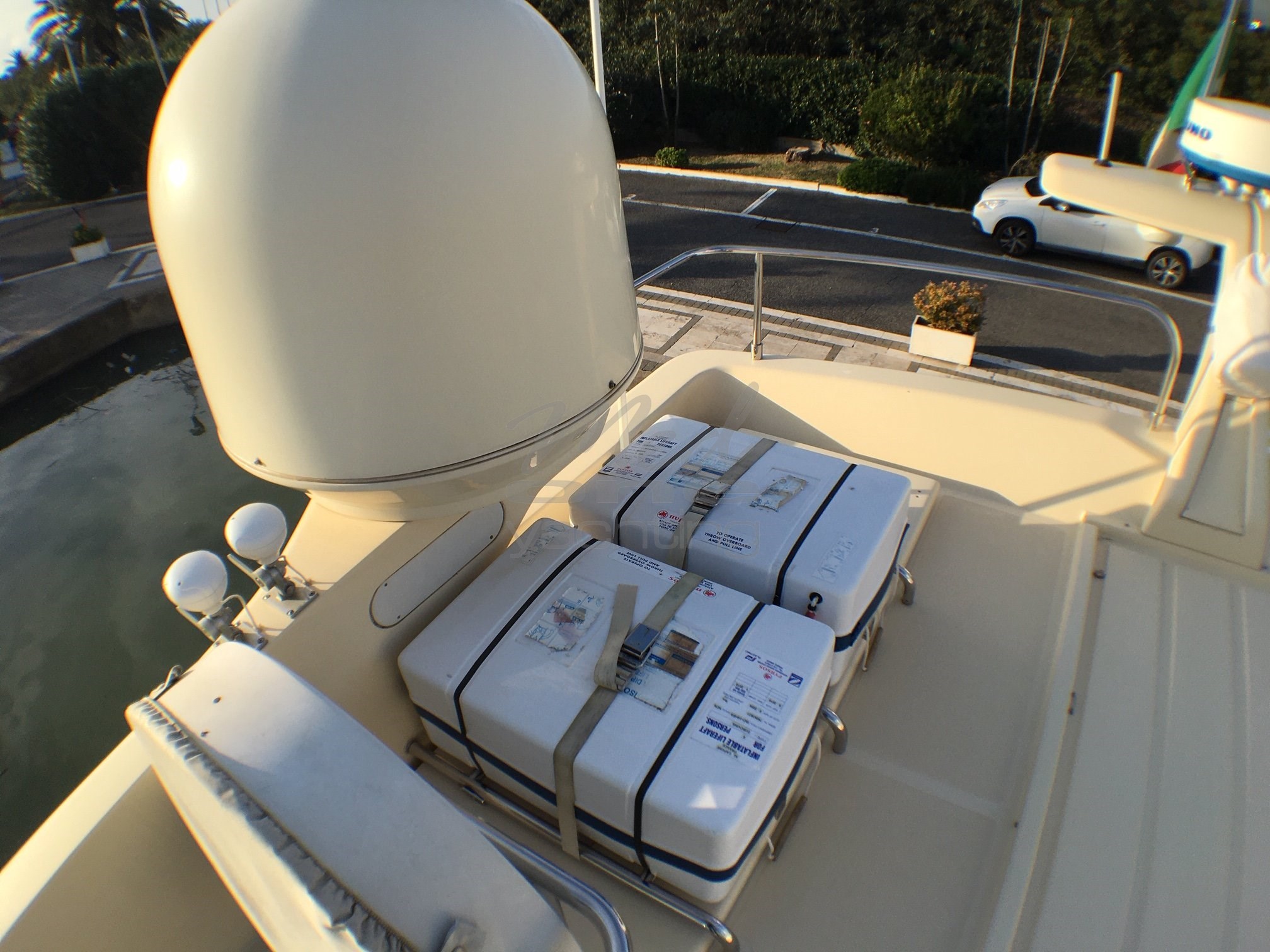 | INTERNI IN TEAK NATURALE CABINA ARMATORIALE A POPPA CON INGRESSO INDIPENDENTE E BAGNO SEPARATO CON GRANDE BOX DOCCIA CABINA VIP A PRUA CON LETTO MATRIMONIALE AD ISOLA E BAGNO CON B CON BOX DOCCIA SEPARATA CABINA OSPITI CON 2 LETTI IN PIANO E BAGNO CON BOX DOCCIA SEPARATA ZONA EQUIPAGGIO CON CABINA DOPPIA E LETTI A CASTELLO + BAGNO SEPARATO STAZIONE DI COMANDO AUSILIARIA A POPPA CON MANETTE E COMANDI ELICHE DI MANOVRA ELICA DI PRUA CON TELECOMANDO ELICA DI POPPA CON TELECOMANDO PC ROUTINE LAN/WI-FI UMTS CON STAMPANTE MULTIFUNZIONE ANTENNA SATELLITARE NAVISYSTEM NT75 GPS CARTOGRAFICO GEONAV LCD A COLORI 12″ CON GPS SUNSHINE LCD 11″ SU FLY PILOTA AUTOMATICO RAYMARINE ST7001+ CON INTERFACCIA RADAR PORTATA 36 MIGLIA CON DISPLAY 12″ TRIDATA RAYMARINE ST60 LOG-ECO-TEMP. VHF SISTEMA INTEGRATO GESTIONE E MONITORAGGIO IMPIANTO ELETTRICO NAVIOP CON SCHERMO 15″ TOUCHSCREEN STABILIZZATORE GIROSCOPICO ATI ROLLING GYRO GENERATORE AUSILIARIO DISSALATORE BIMINI TOP SU FLYBRIDGE PASSERELLA A SCOMPARSA LATO DRITTA LAVAPANNI DA 5,5 KG POSIZIONATA IN ZONA EQUIPAGGIO LAVASTOVIGLIE BOSCH OMBRELLO PARASOLE ZONA DI PRUA CON MECCANISMO DI APERTURA ELETTRO-IDRAULICO TAVOLO POZZETTO DI POPPA ESTENDIBILE PLANCIA BAGNO DI POPPA AFFONDABILE PER ALO-VARO TENDER LUCI SOTTOPLANCIA INVERTER MASTERVOLT 24V/3000W IMPIANTO ARIA CONDIZIONATA IN TUTTI I LOCALI |