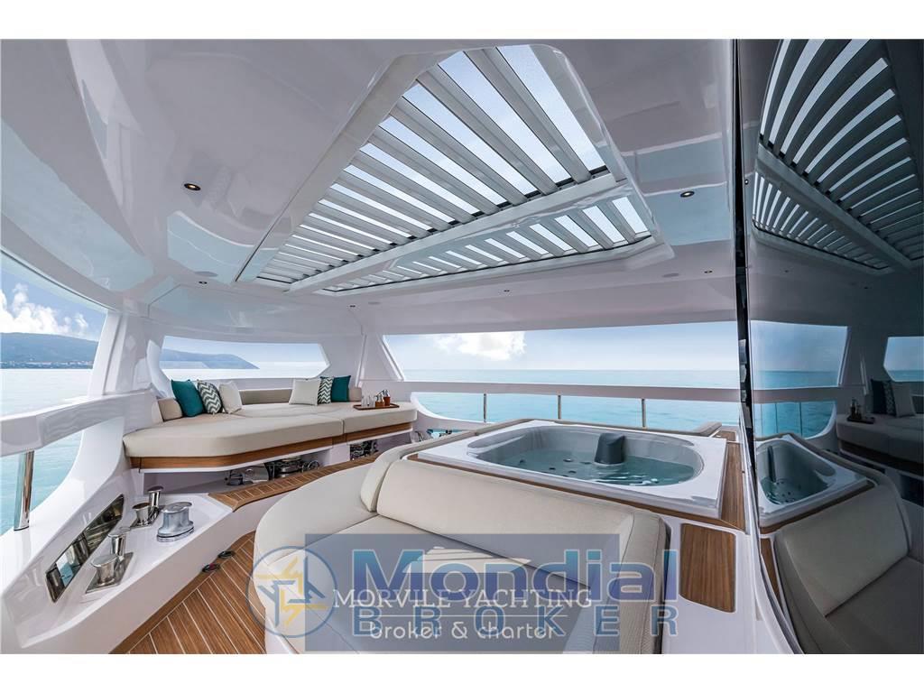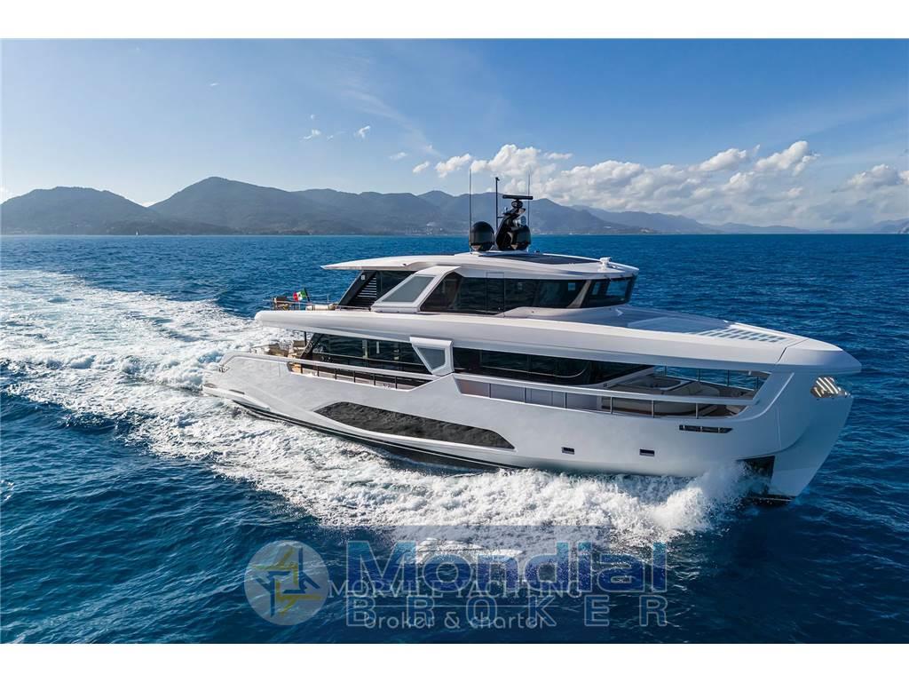 Notas internasQuesto modello è personalizzabile grazie alle innumerevoli possibilità di scelta: preparati ad un comfort senza precedenti. Due mood di arredamento, tre layout per il main deck, dove per la prima volta è possibile inserire una gym per una totale immersione nel wellbeing, e due per il lower deck. Meriti il meglio. Lo skylounge, anch’esso coperto, è disponibile in diverse configurazioni e fa di INFYNITO 90 il primo modello Ferretti Yachts con ponte chiuso, dall’alto potrai godere dei panorami più meravigliosi e sentirti al massimo. La versatilità è uno dei punti di forza di questa barca, che, per la prima volta, introduce anche materiali sostenibili e un solar roof per produrre energia rinnovabile, segnando un nuovo emozionante inizio. Antenna TV satellitare Impianto stereo Impianto TV Tv Bagni: 4 Cabine: 4 Cucina Forno a microonde Forno Congelatore Notas de la instrumentaciónPilota automatico Baromentro Bussola Comandi flaps Contamiglia Ecoscandaglio GPS GPS-Plotter Log Vhf Notas de armamentoTra gli elementi distintivi, spicca il pozzetto, spazioso e personalizzabile, che permette di sentirsi parte del mare e assaporare ogni attimo, ogni suono e ogni sfumatura di blu.Cuscineria Frigorifero esterno Scaletta: 1 Tavolo nel pozzetto |