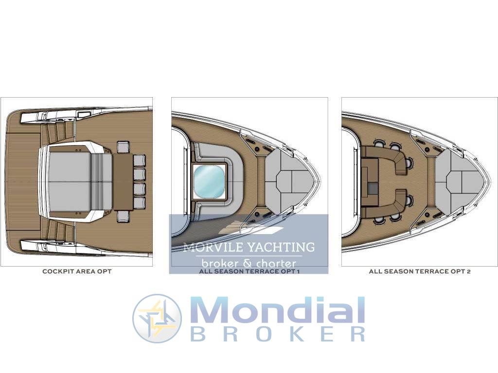 Partendo dal pozzetto di poppa, è evidente da subito l’estrema versatilità di configurazione: 34 mq calpestabili, arredabili con mobili free standing |