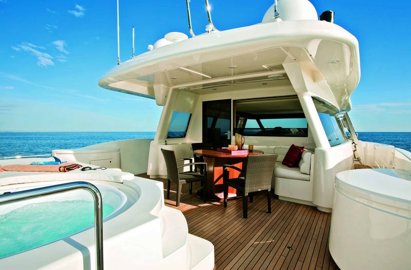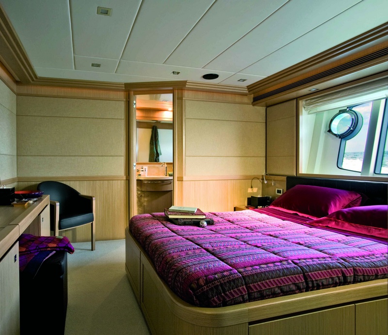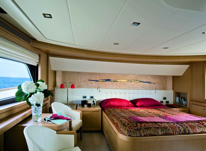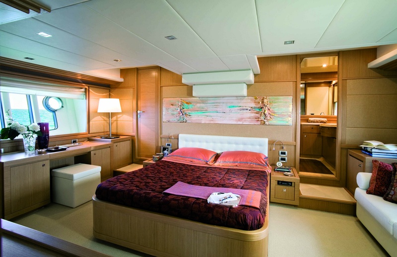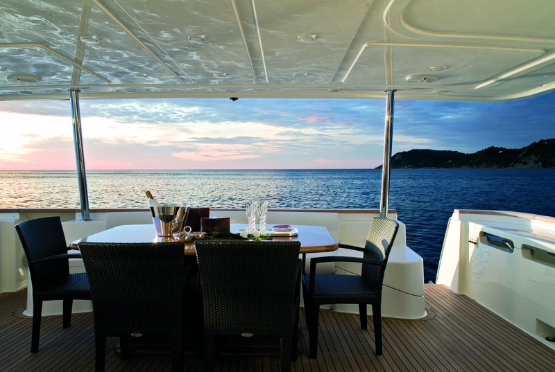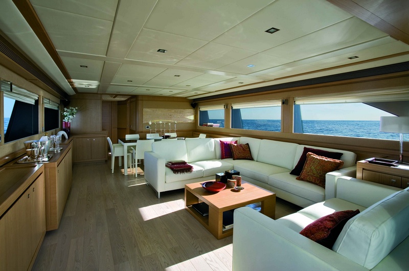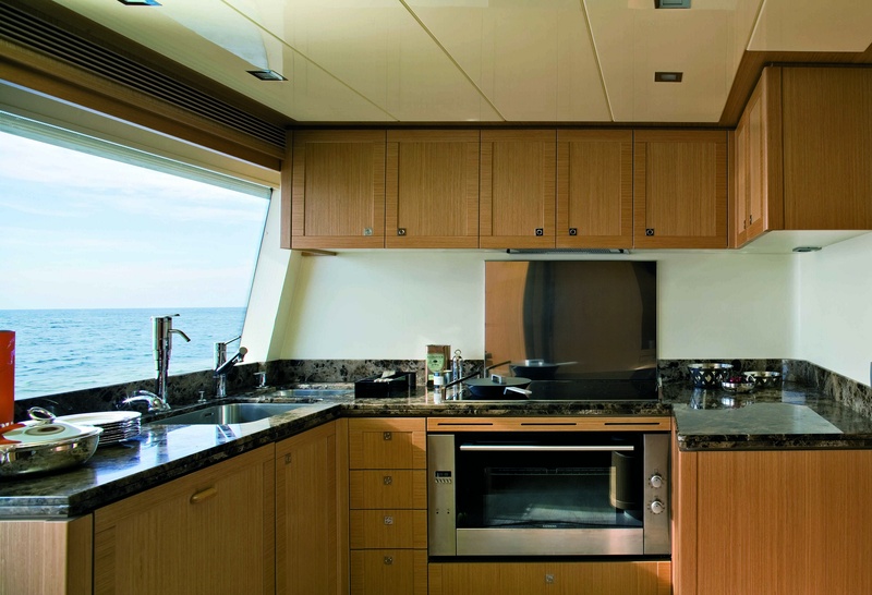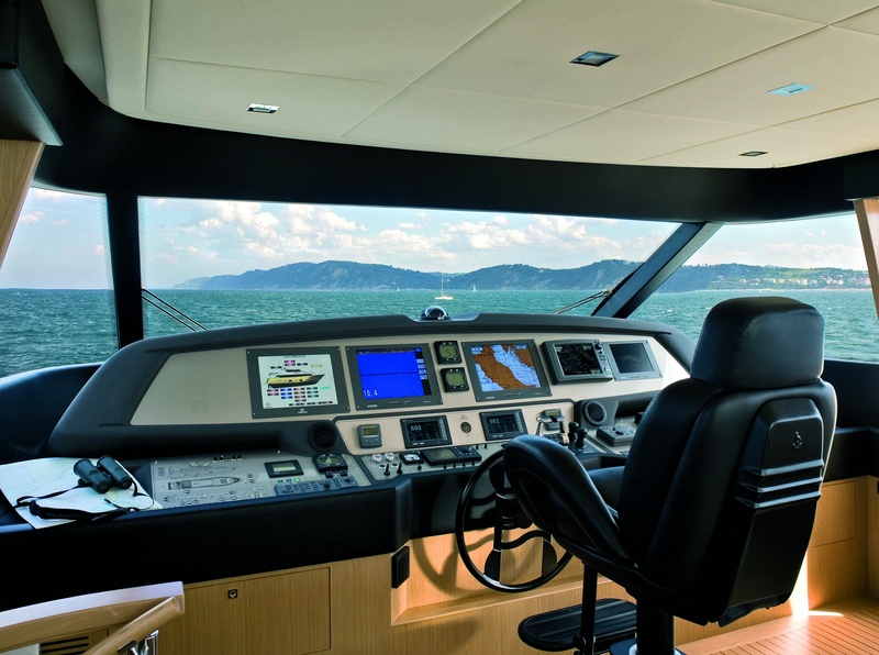 Puente de panorámicas: rieles de lado lateral, consistente en un sofá, sillas de la mesa de comedor, teca natural y ventanas laterales con apertura regulable frigorÃfico, electro-hidráulico, gretta (600 kg), móvil con receptor y parrilla, aislamiento tanque móvil con hamacas de teca con cojines, estaciones de control