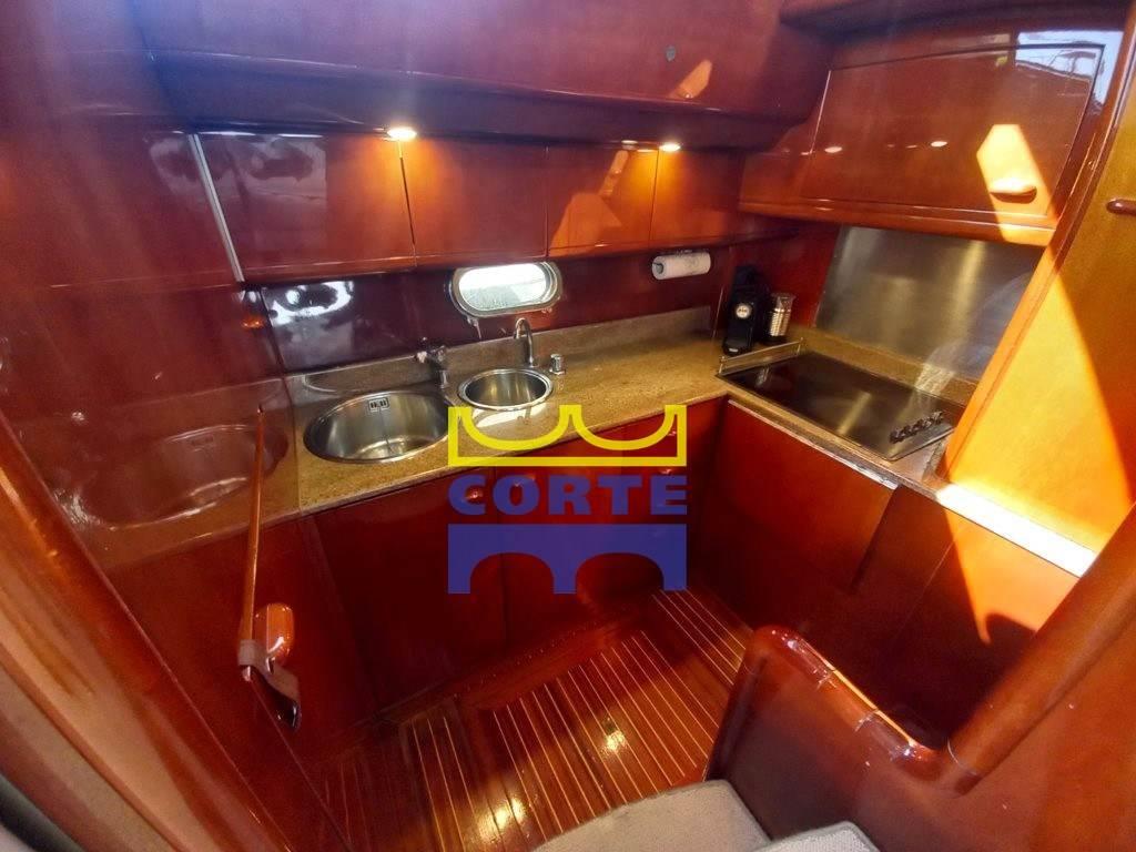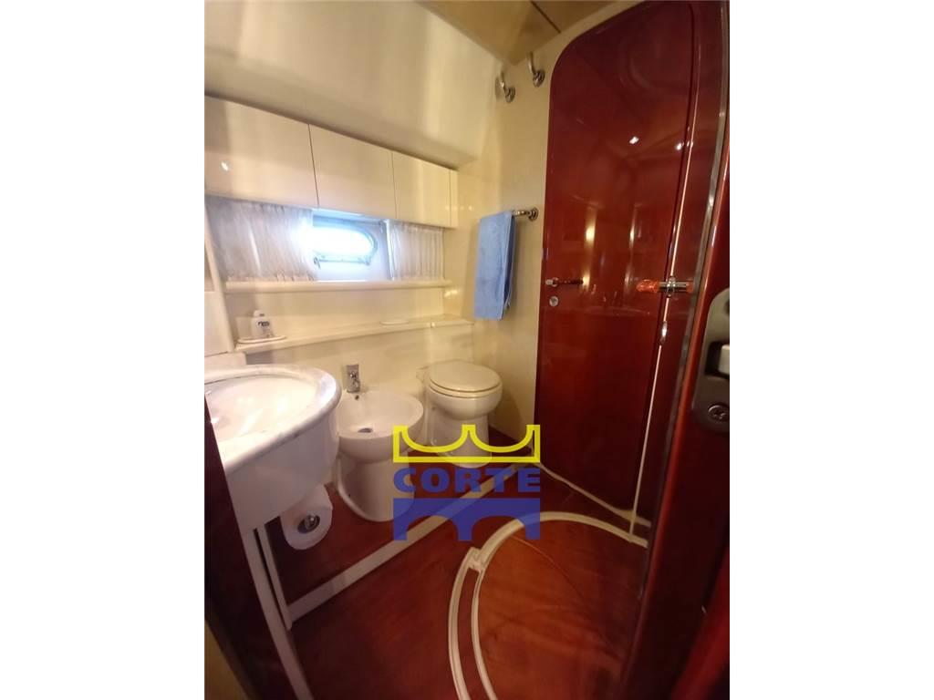 Notas internasDinette con 2 divanetti e tavolino. Cucina attrezzata con piano cottura in vetroceramica, frigorifero e freezer. Cabina armatoriale matrimoniale a prua con bagno privato. Due cabine ospiti con letti in piano . Bagno ospiti. Cabina interna equipaggio con bagno. Cabina equipaggio con bagno con ingresso dal pozzetto . Fly attrezzato con tavolo, mobile con lavello e frigo, zona prendisole. Notas de la instrumentaciónAllarme motore, Allarme sentina, Ancora, Angolo barra, Antenna radar, Autoclave (recente), Batterie (motori e servizi (2024)), Bussola, Caricabatterie (2024), Comando motori elettronico, Contamiglia, Display (Caterpillar), Doccia esterna, Doppia timoneria, Ecoscandaglio, Elica di poppa - stern thruster, Elica di prua - bow thruster, Faro orientabile, Flap idraulici, GPS (Fly Lowrance), Gruette per tender (passerella), Impianto antincendio, Lavandino nel Pozzetto, Log, Luci subacquee, Passerella (idraulica con gruetta), Piattaforma (poppa), Pilota automatico, Plotter con antenna GPS, Pompa di sentina automatica, Pompa di sentina elettrica, Porta ingresso, Pozzetto Teak, Presa 220V banchina, Radar, Radio VHF, Salpa Ancore Elettrico, Scaletta da bagno, Tavolo pozzetto, Tromba, Winch tonneggio di poppa, Winch tonneggio di pruaNotas de armamentoAltoparlanti, Antenna Satellitare TV, Aria condizionata, Bimini (top fly), Boiler (bivalente), Cassaforte, Clima reversibile, Congelatore, Cucina, Cuscineria completa, Frigorifero esterno, 2 Frigorifero interno, Impianto TV, Inverter, Microonde, Oscuranti, Piastra in vetroceramica, Prese interne 12v, Prese interne 220v, Stereo, Telecamera (poppa e sala macchine), Telo copriconsolle, Telo coprisedile, Tendalino (invernale pozzetto), TV, WC marino elettrico, Zanzariere, porta elettrica accesso piattaforma di poppa, lavandino e frigo sul fly |
