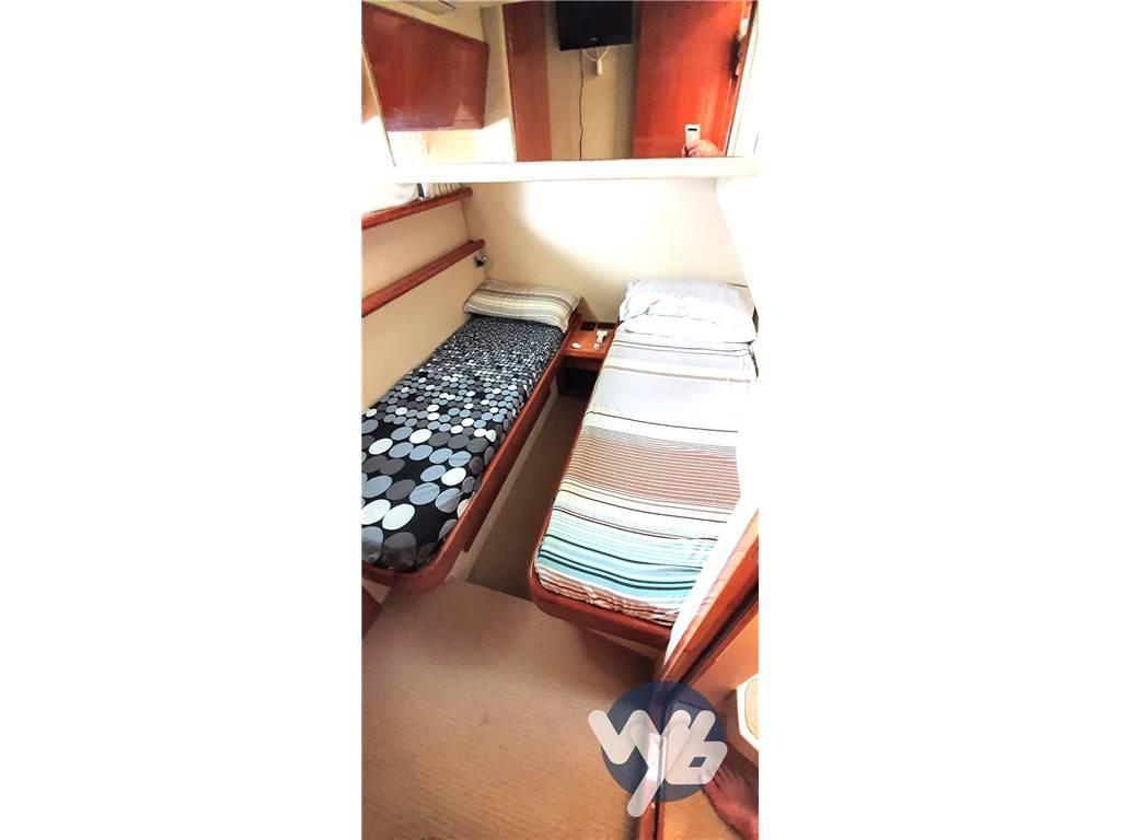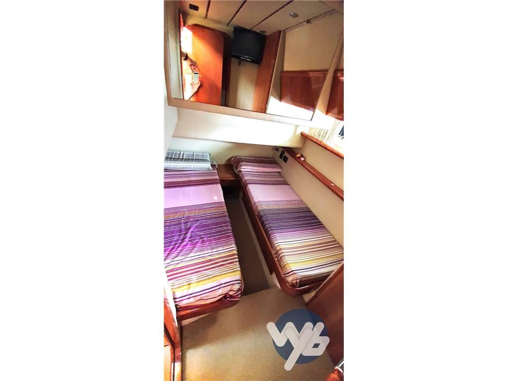 Notas internasNotas de la instrumentaciónBussola, Contamiglia, Eco, Gps ,Pllota, Radar, Vhf.Notas de armamentoAntenna Satellitare , Aria condizionata, Boiler, Cuscineria completa, Cuscineria fly, Digitale Terrestre, Impianto acque nere, Impianto TV, Lavastoviglie, Lavatrice, Prese interne 12v, Prese interne 220v, Riscaldamento, Stereo, Tendalino, 6 Batterie, Allarme motore, Autoclave, Autogonfiabile, Caricabatterie, Comando motori elettronico, Contamiglia, Desalinizzatore, Doccia esterna, Doppia timoneria, Elica di poppa, Elica di prua, Faro orientabile, Flasp idraulici, Impianto antincendio, Interfono, Lavaggio catena, Passerella, Pompa di sentina elettrica, Pompa di sentina manuale, Pozzetto Teak, Raddrizzatore, Salpa Ancore Elettrico, Scaletta da bagno, Tavolo pozzetto, Tender, Winch tonneggio di poppa. |