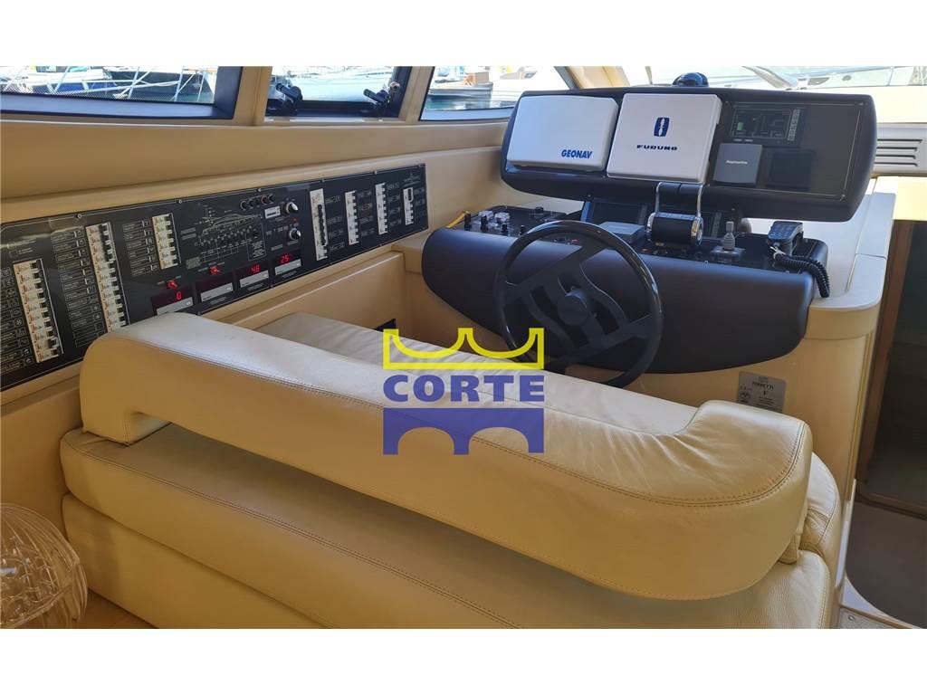 Notas de armamentoAltoparlanti, Aria condizionata, Bimini (top fly), Boiler (elettrico - scambiatore), Cassaforte, Clima reversibile, Congelatore, Cucina, Cuscineria completa, Digitale Terrestre, Dissalatore (70 litri ora), Forno, Frigorifero esterno, Frigorifero interno (cucina 180 litri e salone a pozzetto), Impianto TV, Inverter, Lavastoviglie (Bosh), Lavatrice, Piastra in vetroceramica (4 fuochi), Prese interne 12v, Prese interne 220v, Radio AM/FM, Stereo, TV, WC marino elettrico
