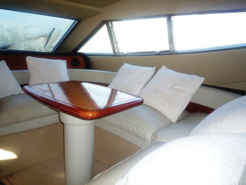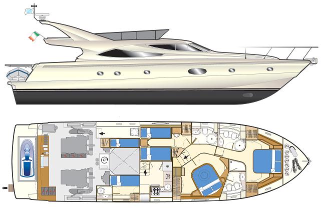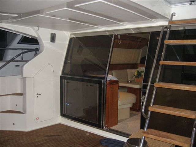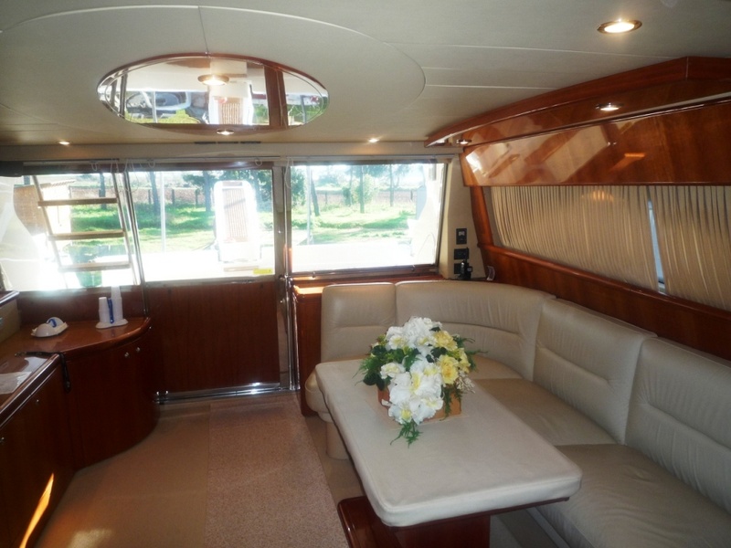Notas internasAmplio living comedor con cocina separada. Cabina de armador en el centro del barco con proa cabina VIP con baño, una cabina con dos camas con baño, cabina individual utilizado como cabañas o cabinas de extra de invitados con baño y entrada privada desde el habitáculo. Muebles de madera de cerezo pulido.