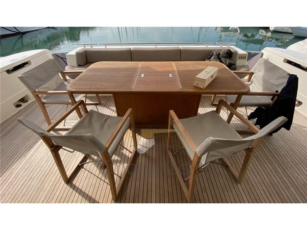 Notas internascucina a mezzanino a prua del ponte principale 4 posti crew Notas de la instrumentación2 Comando motori elettronico, Contametri catena, DSC vhf, GPS, Pilota automatico, Plotter, Radar.Notas de armamentoAllestimento tecnico e di coperta:Camminamenti laterali in teak, Doccia esterna, Elica di poppa - stern thruster, Elica di prua - bow thruster, Fari fissi a poppa, Faro orientabile, Flap idraulici, Garage per tender (not fit for tener), Gruette per tender su fly, Hard top, Impianto antincendio, Indicatori Flaps, Lavaggio catena, Luci subacquee, Passerella, 2 Porta laterale, Pozzetto Teak, Presa 220V banchina, Presa acqua banchina, 2 Stabilizzatori (ARG GYRO), Tavolo pozzetto, Tender (Capelli 360 + Yamaha 40 hp (year 2017)), Tromba, 2 Winch tonneggio di poppa, Winch tonneggio di prua. Dotazioni domestiche di bordo: Aria condizionata, BBQ/ Grill, Clima reversibile, Dissalatore (Idromar (1.064 hrs, 19.3.22)), Impianto acque nere, Prese interne 12v, Prese interne 220v, 4 WC marino elettrico (+ crew). Intrattenimento: Altoparlanti, Antenna Satellitare TV, Decoder satellite, Digitale Terrestre, Home Theater, Impianto TV, Radio AM/FM, Stereo, 3 TV. Cucina ed elettrodomestici: Congelatore, Forno, Frigorifero esterno, Frigorifero interno, Ghiacciaia, ICE Maker, Lavasciuga, Lavastoviglie, Macchina caffè, Piastra elettrica, Piastra in vetroceramica. Tappezzerie: Bimini, Cappottina, Cuscineria completa, Cuscineria di poppa, Cuscineria di prua, Cuscineria fly, Cuscineria Pozzetto, Prendisole aggiunto, Teli copri finestra, Telo copriconsolle, Telo coprisedile, Tendalino (bow tent + carbon poles). |