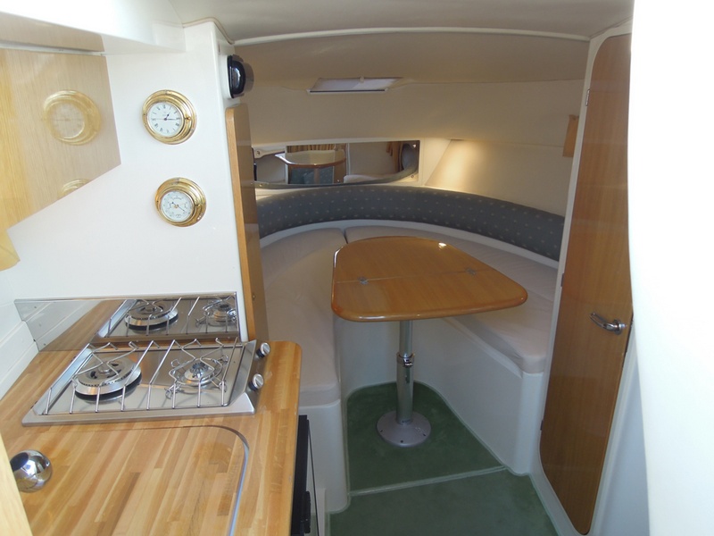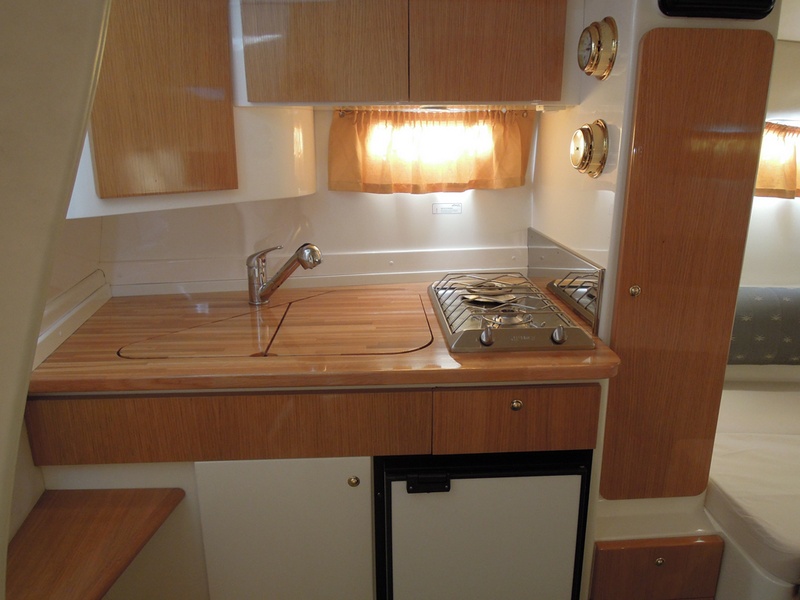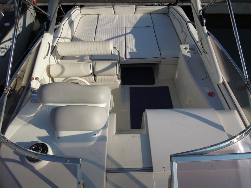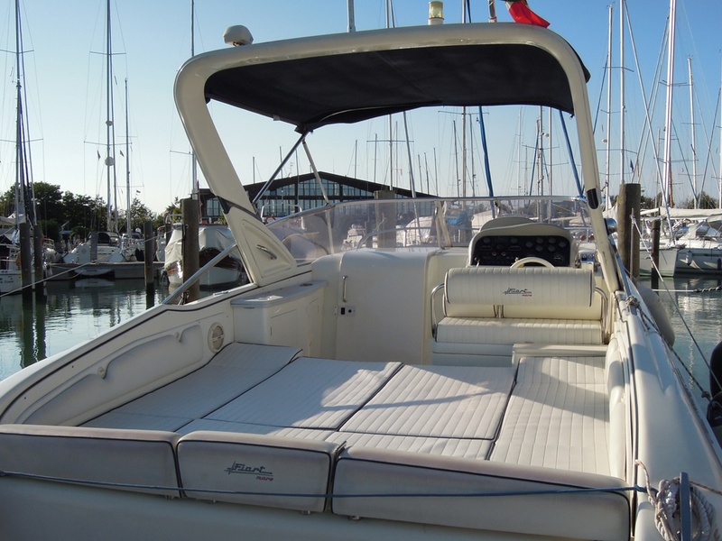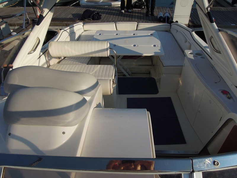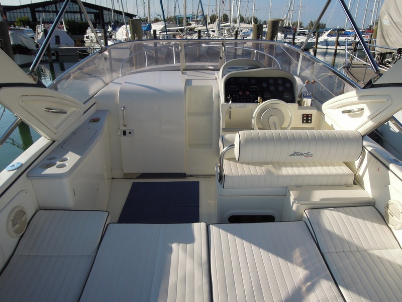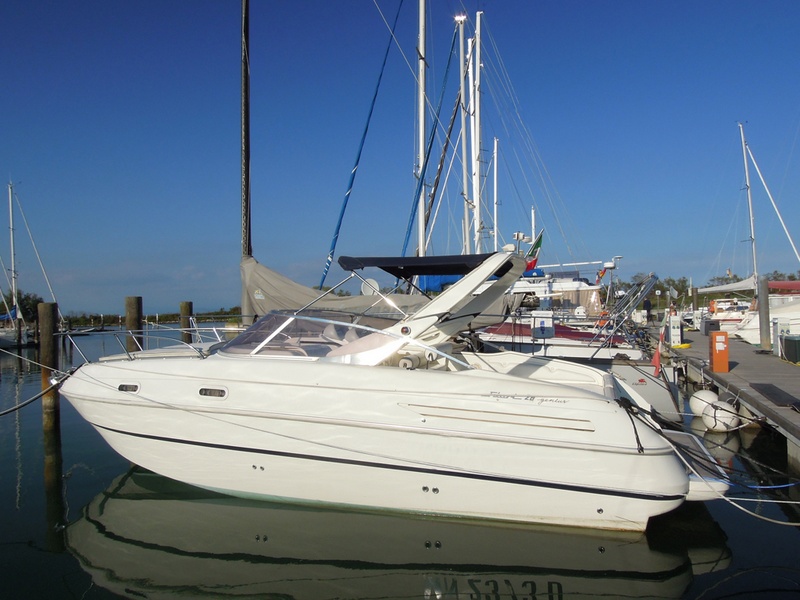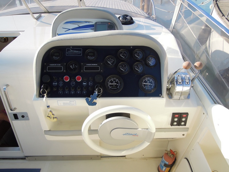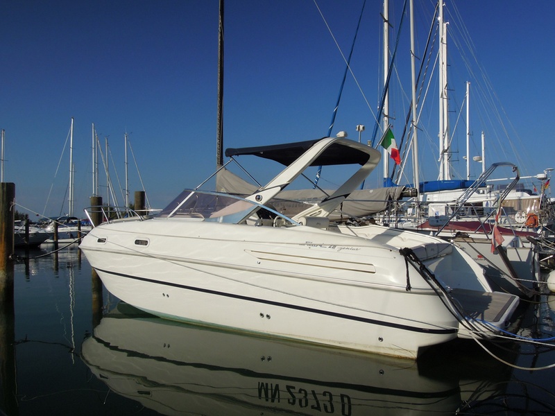 Notas internas1 Bagno Notas de la instrumentaciónFishfinder Raymarine L365Radio CD Notas de armamentoCaricabatterie SBC250 30ASalpancora el. Quick Tavolo in pozzetto con pistone idraulico (letto prendisole) Lavello in pozzetto Doccia a poppa Bimini top + tenda per chiusura completa del pozzetto (camper canvas) Tenda invernale (bassa) Cuscineria prendisole a prua Teak sulla piattaforma di poppa |