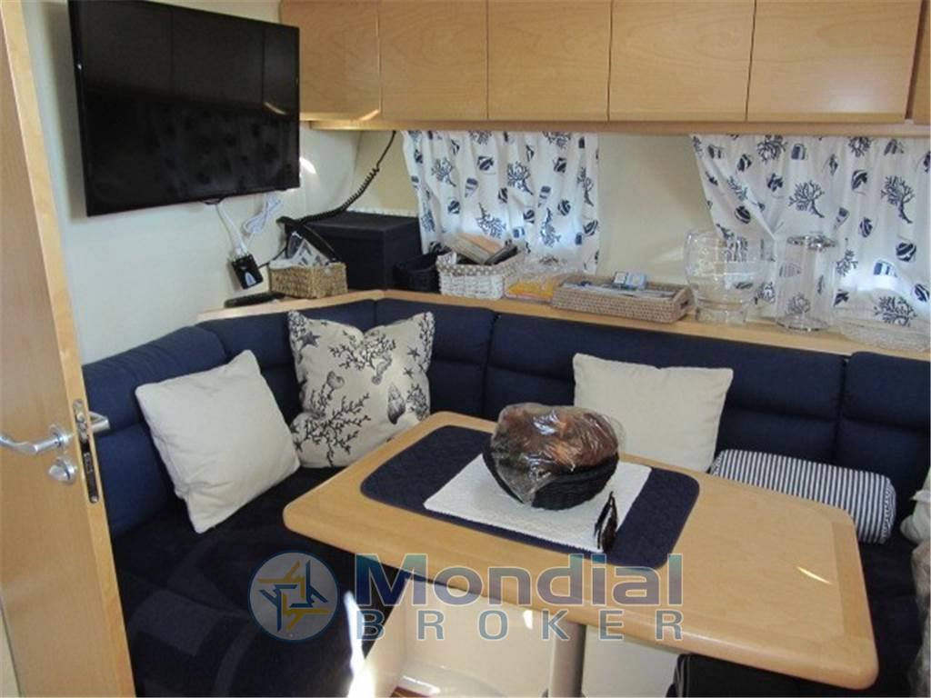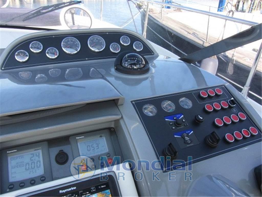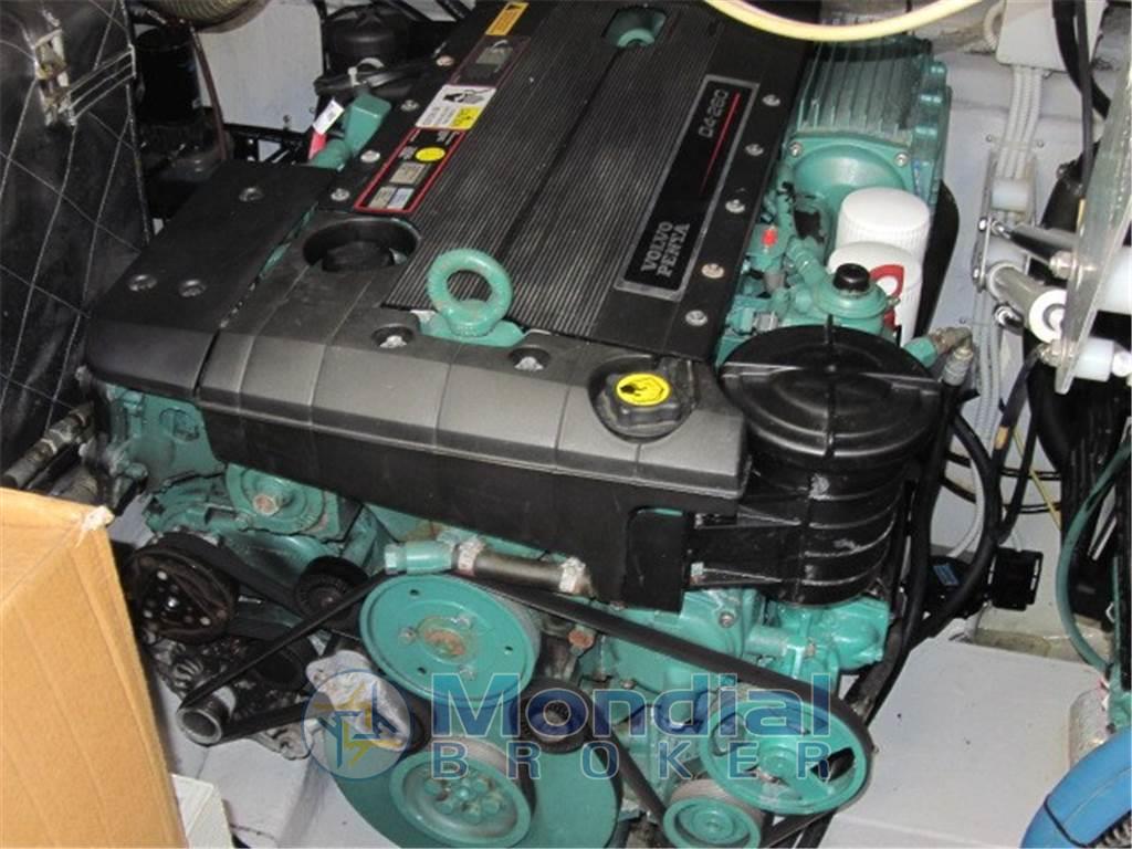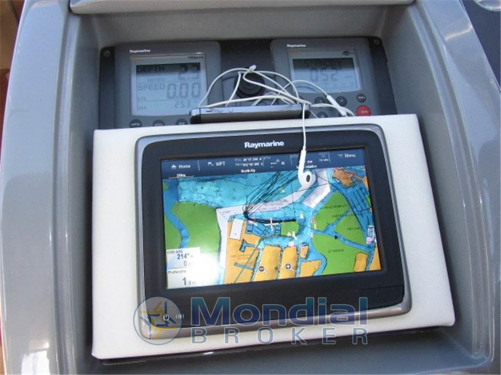 Notas internasNotas de la instrumentaciónAngolo barra, Bussola, Comando motori elettronico, Computer di bordo, Contamiglia, Display, Ecoscandaglio (Raymarine), GPS (Raymarine E80), Pilota automatico (Raymarine), Radio VHF.Notas de armamentoAllestimento tecnico e di coperta:Allarme motore, Allarme sentina, Autogonfiabile, Doccia esterna, Elica di prua - bow thruster, Flap idraulici, Impianto antincendio, Indicatori Flaps, Luci di cortesia, Passerella (Idraulica), Piattaforma, Pompa di sentina automatica, Pompa di sentina manuale, Pozzetto Teak, Presa 220V banchina, Rollbar, Salpa Ancore Elettrico, Scaletta da bagno, Tavolo pozzetto, Tromba. Dotazioni domestiche di bordo: Impianto acque nere, Prese interne 12v, Prese interne 220v, WC marino elettrico. Intrattenimento: Altoparlanti, Decoder satellite, Impianto TV, Stereo, TV. Cucina ed elettrodomestici: Cucina, Fornello, Frigorifero esterno, Frigorifero interno, Microonde, Piastra in vetroceramica. Tappezzerie: Cappottina, Cuscineria completa, Cuscineria di poppa, Cuscineria di prua, Cuscineria Pozzetto. |
