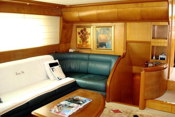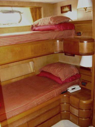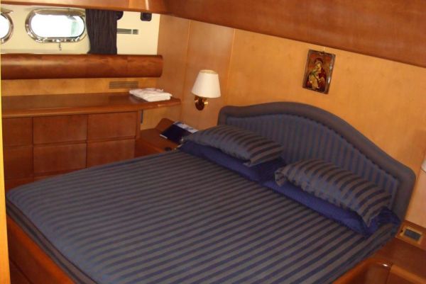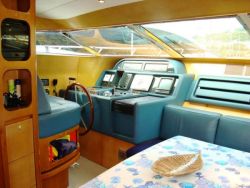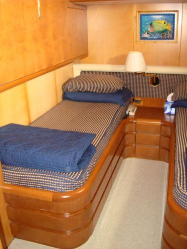 Notas internasPISO inferior: propietario-cabina con cama doble y dos camarotes con dos camas y cama plana respecto a la desaparición de una cabina con literas y cuatro baños. -Cabina con dos camas y un baño. -Sofás de cuero Interior, abedul claro. Notas de la instrumentación-Radar Furuno-piloto automático Nautiradar-GPS/Chartplotter Navionics SSB Skanti-profundidad sonar Simrad VHF-marinero + Skanti.Notas de armamento-Onán maniobra generadores AC Condaria-hélice de proa-desalación-satélite TV antena-abatibles pasillo tercera estación propulsores popa-grúa hidráulica sobre oferta de vuelo con motor de Yamaha Novurania 25 hp.-Arriba de popa Bimini tornos, molinetes Teca en la lavadora de mosca. |