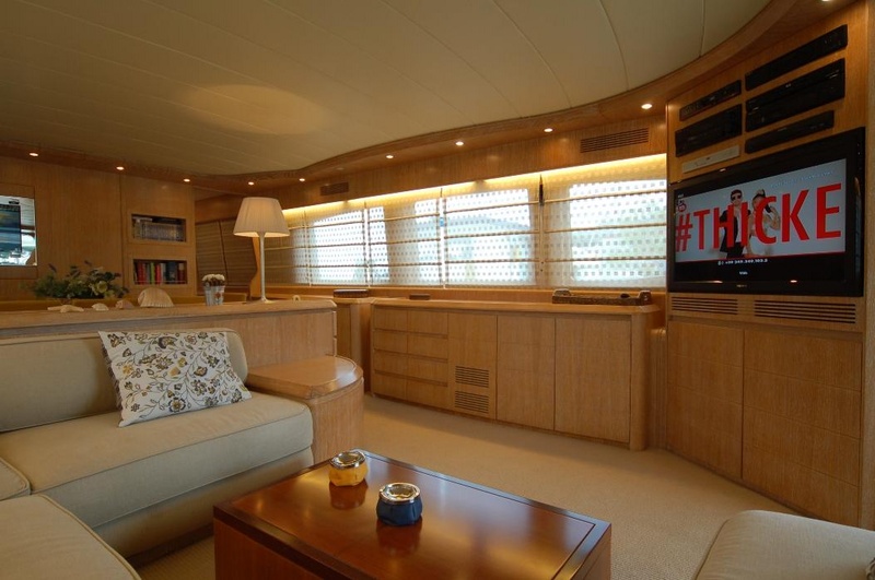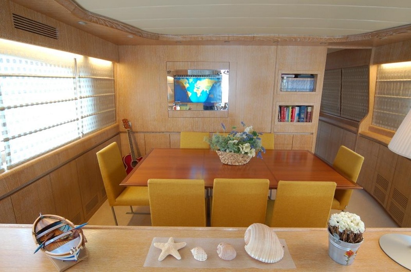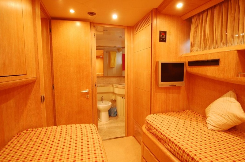 Notas internasSALÓN con sofá en forma de U y WETBAR completo contraste TV PLASMA TV NEC 42 '+ DVD + cielo + sistema de sonido envolvente BOSE decodificador y mesa de comedor de PIONEER HIFI para 8 personas-tablero con cocina comedor con doble acceso tripulación, MIELE placa vitrocerámica con 4 placas, GENERAL ELECTRIC refrigerador y congelador, horno y lavavajillas MIELE camarote de popa doble haz completo y su cuarto de baño con ducha separada + LCD SHARP 19' + SONY DVD + CD + decodificador FORE cabina VIP con baño y ducha separada, SHARP LCD 19 '+ VHS + CD SONY dos camarotes de invitados en MIDSHIPS, una habitación TRIPLE (con cama supletoria) y la otra con doble baño con ducha separada + SHARP LCD 15' + VHS + CD + decodificador SONY TRIPLE forward cabina de tripulación