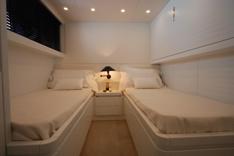 Notas de armamentoLa tercera en estación de comando arco cabina & STERN THRUSTER BCS esposas pasarela hidráulica de ZF, PESCANTES volar y arco MOR MC3J XAVIER IDROMAR WATERMAKER 300 LT/H aire acondicionado sistema CONDARIA 90.000 BTU 2 X 27 KW ONAN generador inversor MASTERVOLT masa baterÃa cargadores rectificadores COMBI MASTERVOLT baterÃas EXIDE motores y servicios 2 LOFRANS ancla LOFRANS de cabrestante cabrestantes retráctil 2 ++ 2 anclajes 90 KG 2 POSIDONIA caldera desde 80 LT satélite teléfono-FAX/impresora/PC SATELLITE TV pista visión NAVISYSTEM INTERCOM DELTANAV cielo 6 DECODIFICADOR + 6 LCD de PIONEER (50 '' + 37 '' + 20 '' + 3 x 15 '') las cámaras de CONTROL de la cabina y sala de máquinas con 2 ELETTRONAV 15 '' reproductor de DVD/CD/MP3 de pantallas con compresor de sistema de sonido BOSE cilindros-VACUUM CLEANER-CENTRAL ascensores cocina/FLY SAFE-hielo-refrigerador 3 lavavajillas y lavadora-secadora MIELE tierna NOVURIANA 470 + 80 HP YAMAHA + 2 JET SKI YAMAHA