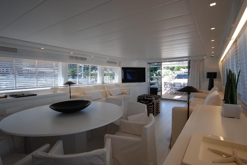 Notas internasAMPLIO LIVING comedor con dos sofás opuesto termina y comedor con mesa para 8 personas con doble acceso, cocina & aparatos: estufa, lavavajillas, frigorÃfico, COMPATTARIFIUTI, MATERIAL de vuelo, hielo, horno DIGITAL DASHBOARD-BIVALENTE con cuartos de dormir de tripulación de comedor: medio de camarote doble haz completo, vestidor y ducha de baño completo con SAUNA + LCD decodificador y dos camarotes de invitados con dos camas individuales en doble piso + 3 ° cama plegable cada uno con su propio cuarto de baño Y ducha separada + LCD y VIP GUEST cabina doble decodificador al arco con su cuarto de baño y ducha + LCD y la tripulación LOCAL para 4 decodificador al arco con entrada y servicios independientes