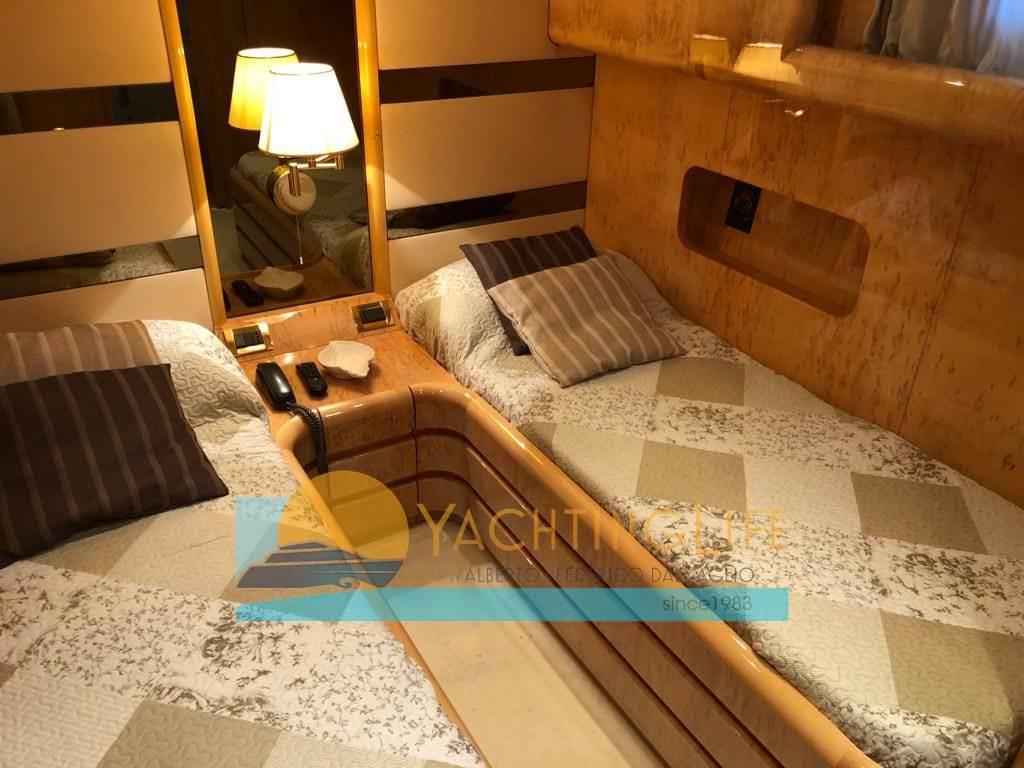 Notas internas1 Matrimoniale italiana, 2 Matrimoniale francese, 1 Doppia in piano, 1 Cabina equipaggio, 2 Toilette con doccia, 1 Dinette, 1 Cucina, 1 Salone, 1 Toilette Equipaggio, 2 Toilette doccia no bidet