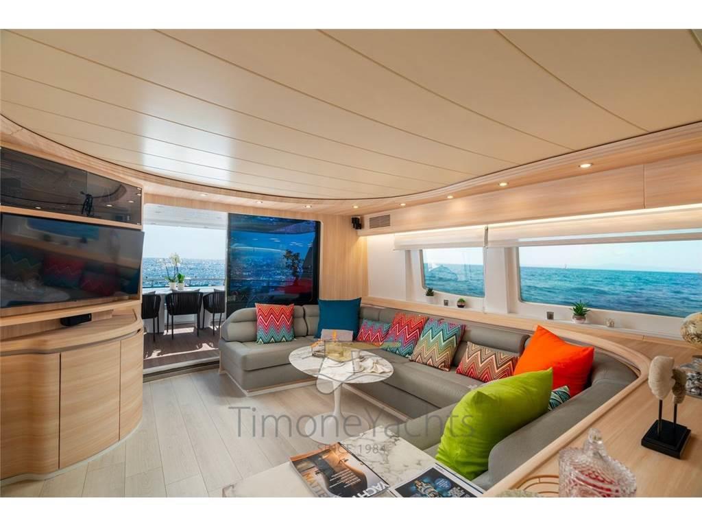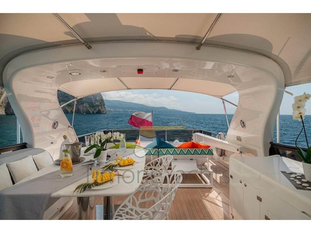 Notas internasNotas de la instrumentaciónAIS, Bussola, Comando motori elettronico, 2 Contametri catena, Contamiglia, DSC vhf, Ecoscandaglio, GPS, Interfaccia, Interfono, MeteoFax, Pilota automatico, Plotter, Radar, Radio VHF.Notas de armamentoAllestimento tecnico e di coperta:Allarme fumo/gas, Allarme motore, Allarme sentina, Autogonfiabile, Camminamenti laterali in teak, Doccia esterna, Elica di poppa - stern thruster, Elica di prua - bow thruster, Faro orientabile, Flap idraulici, Gruette per tender su fly, Indicatori Flaps, Lavaggio catena, Passerella (IRAULICA), Pompa di sentina automatica, Pompa di sentina elettrica, Porta laterale, Pozzetto Teak, Presa 220V banchina, Presa acqua banchina, Raddrizzatore, Rollbar, Salpa Ancore Elettrico, Scaletta da bagno, Stabilizzatori (Smart Gyro), Tavolo pozzetto, Tender (new 2023: 3mt + 40 hp Suzuki), Tromba, 2 Winch tonneggio di poppa, 2 Winch tonneggio di prua. Dotazioni domestiche di bordo: Aria condizionata, BBQ/ Grill, Clima reversibile, Dimmer per Luci, Dissalatore (2022), Impianto acque nere, Pavimento interno in legno, Prese interne 12v, Serbatoio Acque Nere, 5 WC marino elettrico (+ crew). Intrattenimento: Antenna Satellitare TV, Decoder satellite, Digitale Terrestre, Impianto TV, Radio AM/FM, TV. Cucina ed elettrodomestici: Frigorifero esterno, Frigorifero interno, ICE Maker, Lavasciuga, Lavastoviglie, Piastra in vetroceramica. Tappezzerie: Bimini, Cappottina, Cuscineria completa, Cuscineria di poppa, Cuscineria di prua, Cuscineria fly, Cuscineria Pozzetto, Teli copri finestra, Telo coprisedile, Tendalino. |