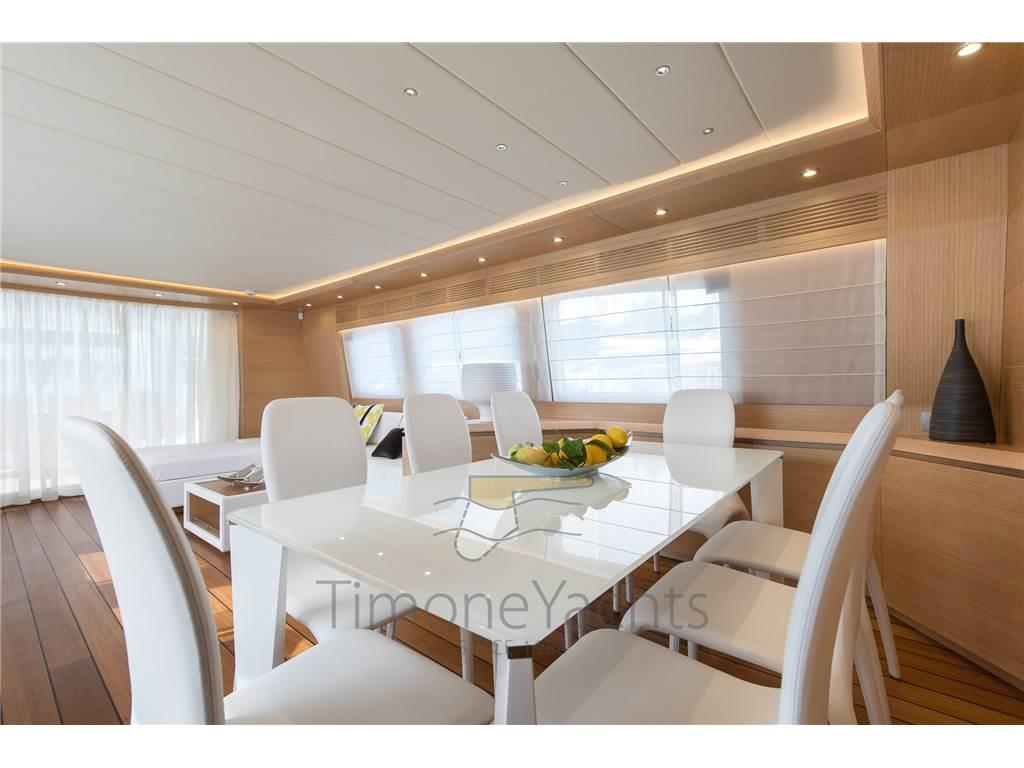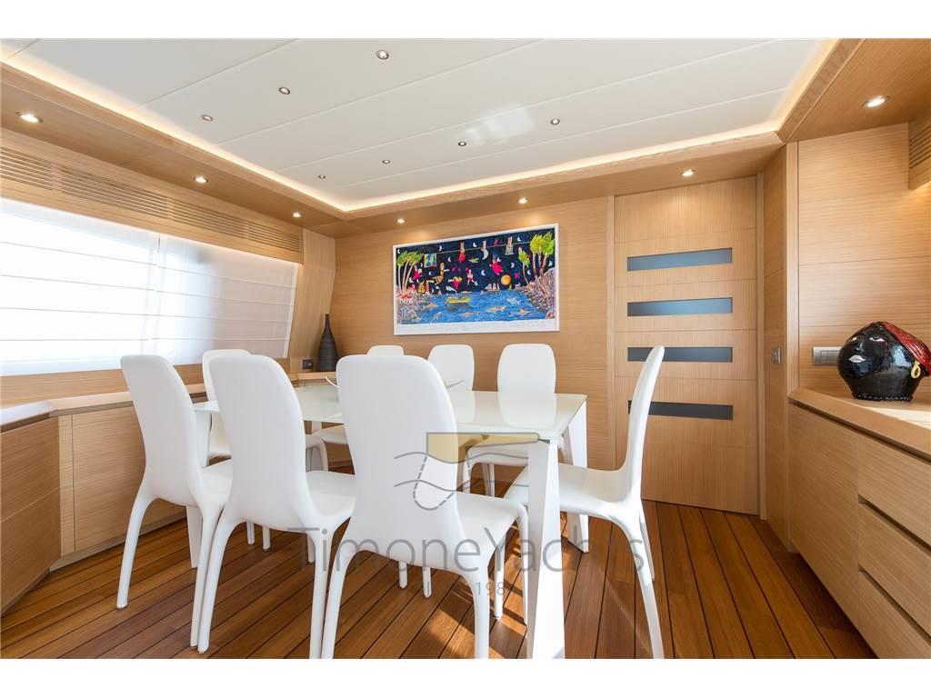 Notas internasNotas de la instrumentaciónAIS, Allarme gas, Allarme motore, Allarme sentina, Autoclave, Autogonfiabile, Batterie, Bussola, Camminamenti laterali in teak, Caricabatterie, Comando motori elettronico, Contametri catena, Contamiglia, Doccia esterna, DSC vhf, Ecoscandaglio, Elica di poppa - stern thruster, Elica di prua - bow thruster, Faro orientabile, Flap idraulici, GPS, Hard top, Indicatori Flaps, Interfaccia, Interfono, Lavaggio catena, Luci subacquee, MeteoFax, Passerella (IRAULICA), Pilota automatico, Plotter, Pompa di sentina automatica, Pompa di sentina elettrica, Porta laterale, Pozzetto Teak, Presa 220V banchina, Presa acqua banchina, Radar, Raddrizzatore, Radio VHF, Rollbar, Salpa Ancore Elettrico, Scaletta da bagno, Stabilizzatori (fins: on the way + zero speed), Tavolo pozzetto, Tender, Tromba, Winch tonneggio di poppa, Winch tonneggio di pruaNotas de armamento2 Dissalatore (Idromar. Working hrs on 17/7/2020: 769 and 766), 5 TV, 5 WC marino elettrico, Altoparlanti, Antenna Satellitare TV, Aria condizionata, BBQ/ Grill, Boiler, Clima reversibile, Cuscineria completa, Cuscineria di poppa, Cuscineria di prua, Cuscineria fly, Cuscineria Pozzetto, Decoder satellite, Digitale Terrestre, DVD, Forno, Frigorifero esterno, Frigorifero interno, Home Theater, ICE Maker, Impianto acque nere, Impianto TV, Inverter, Lavasciuga, Lavastoviglie, Piastra elettrica, Prese interne 12v, Prese interne 220v, Pressarifiuti, Radio AM/FM, Stereo, Teli copri finestra, Telo copriconsolle, Telo coprisedile, Tendalino, WC marino manuale, CMC electric fins (zero speed + navigation), watermaker Idromar, bow + stern thristers, carbon fiber Hard Top on fly, domotic touch screen at the dash + redundant manual back up in ER + dedicated App, tender Williams 385, up/down platform astern, Icemaker with drinking water dedicated supply, jacuzzi tub on fly, cockpit enclosure, fresh water plug in bow anchor room, sliding beds in midship twins each one with pullman bed, underwater lights, flybridge tv system, teak on fly, sink + fridge cabinet on fly, nr 2 grill BBQ separate cabinet on fly, tv plug predisposition on front dinette, portholes alarms, nr.3 camera system, centralized hoover, yacht controller, safe in master cabin + front crew cabin + Captain cabin astern, Audio-Video entertainment system: Samsung TV + BOSE audio.TV: -Flybridge: Samsung 40" FHD Led TV 3D Smart -helm station: Samsung 22" FHD Led TV -Salon: Samsung 48" FHD Led TV 3D Smart -Master: Samsung 32" FHD Led TV -Smart -Guests (2 cabins): 2x Samsung 22" FHD Led TV -Vip: Samsung 32" FHD Led TV -Smart Appliances: Wincellar MIELE (in salon) galley extractor MIELE ceramic glass cooktop MIELE 90cm oven MIELE 90cm Dishwasher MIELE Fridge GE 90cm combo washer/dryer MIELE nr 2 Bbq MIELE (on Flybridge) Fridge inox 2 lockers (sul Flybridge) additional Freezer bottom down (on Flybridge |