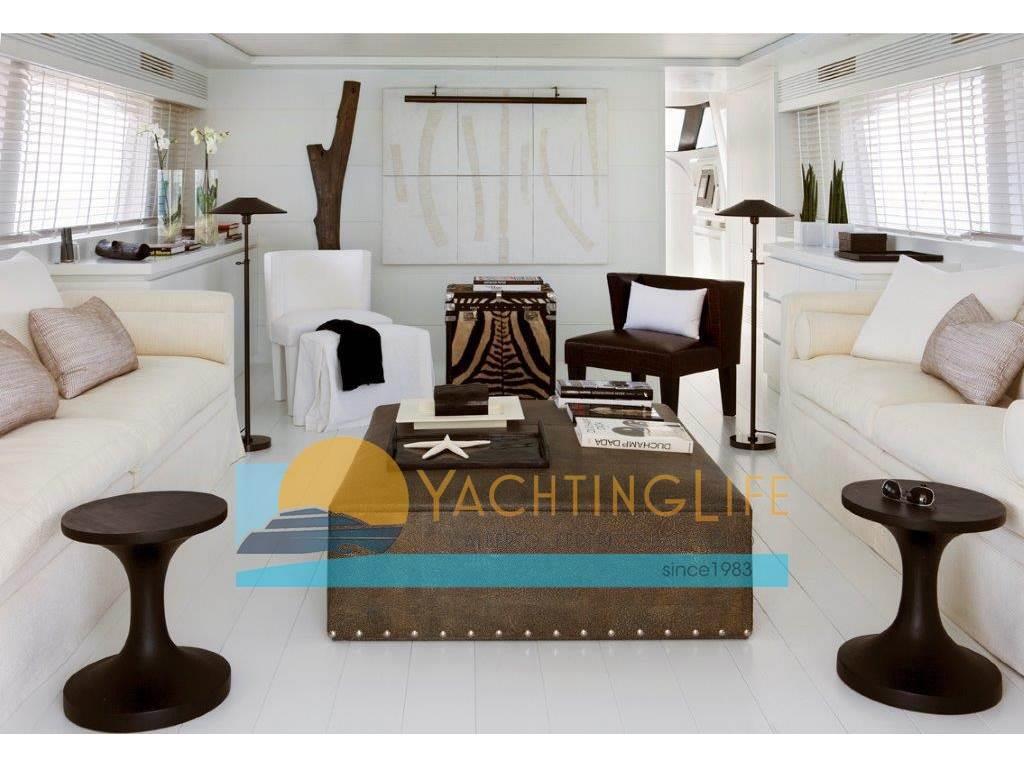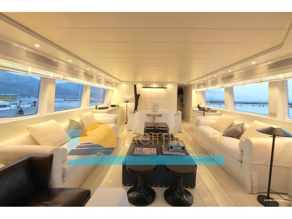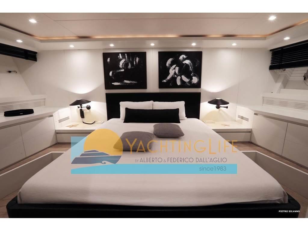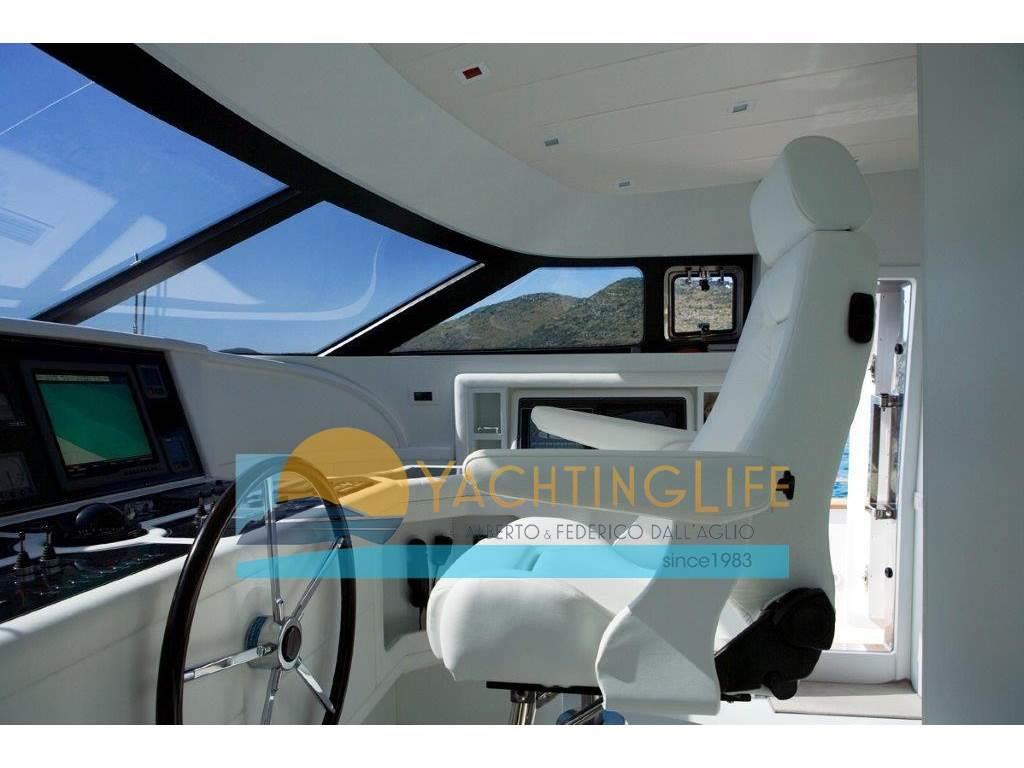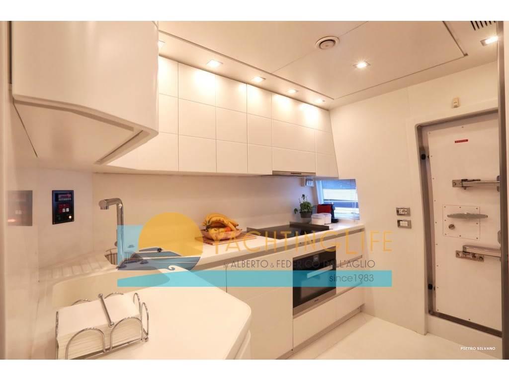 Notas de armamentoAltoparlanti, Antenna Satellitare TV, Aria condizionata, Asciugatrice, Aspirapolvere centralizzato, Bimini, Boiler, Cassaforte, Congelatore, Cucina, Cuscineria di poppa, Cuscineria di prua, Cuscineria fly, Decoder satellite, Digitale Terrestre, Dissalatore, DVD, Forno, Frigorifero esterno, Frigorifero interno, Ghiacciaia, ICE Maker, Impianto acque nere, Impianto TV, Lavastoviglie, Lavatrice, Meccanismo saliscendi per TV, Microonde, Pavimento interno in legno, Piastra in vetroceramica, Prese interne 12v, Prese interne 220v, Riscaldamento, Serbatoio Acque Nere, Stereo, Telecamera, Telo copriconsolle, Telo coprisedile, 5 TV, 6 WC marino elettrico