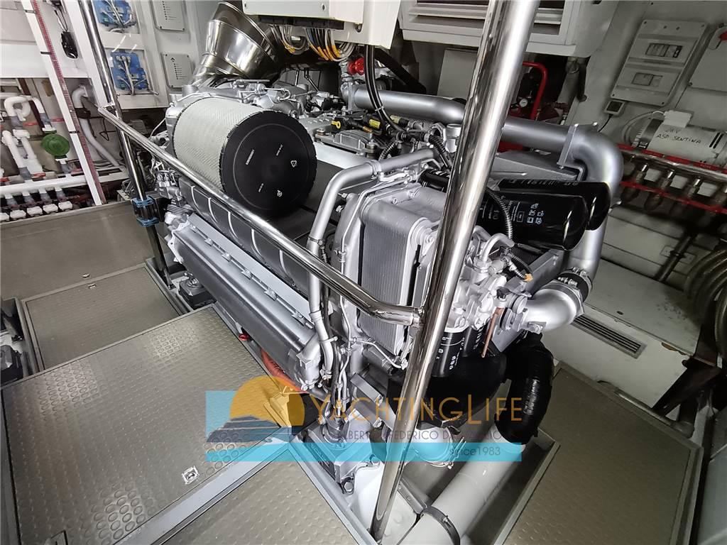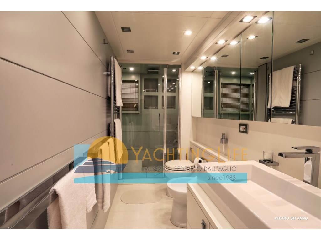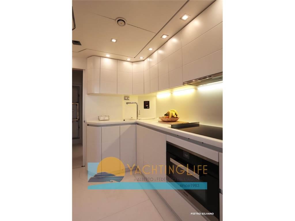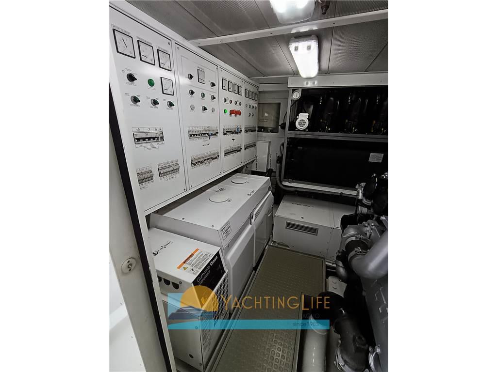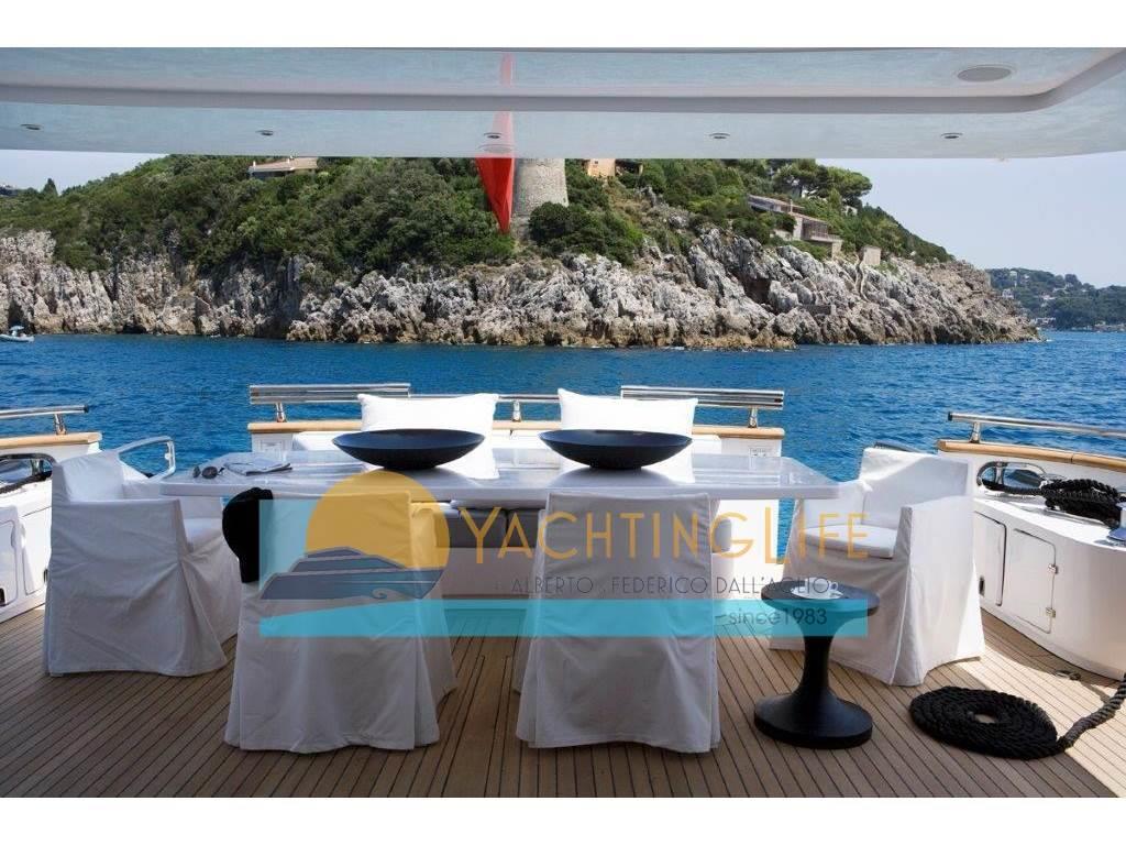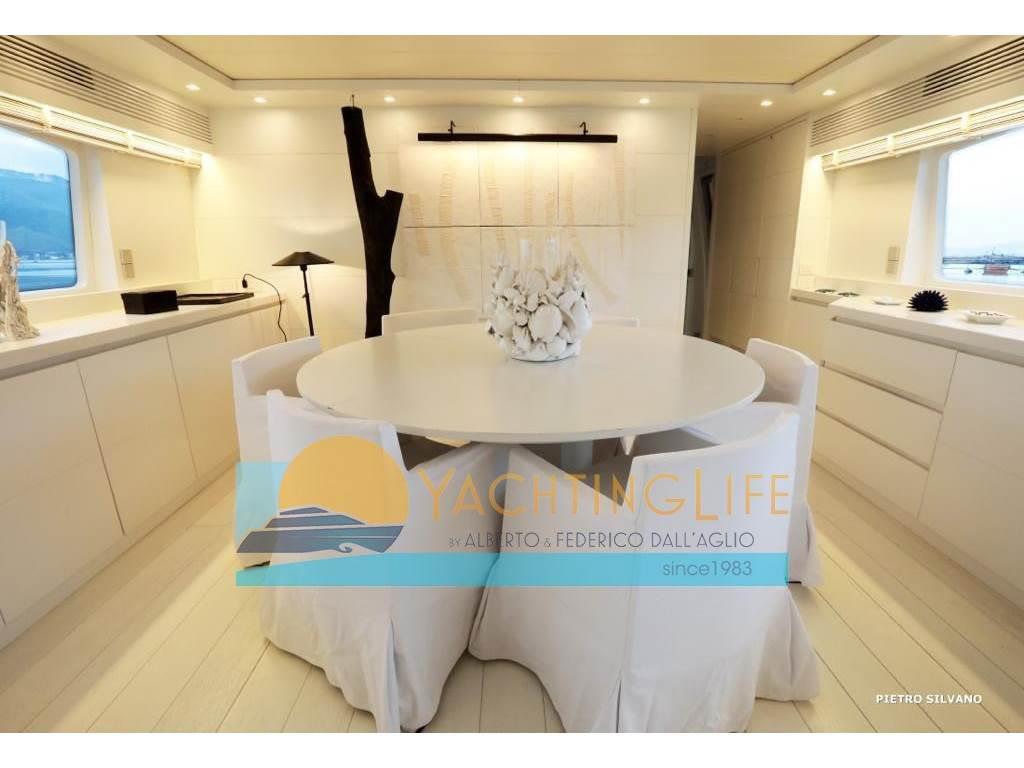 Notas de armamentoAltoparlanti, Antenna Satellitare TV, Aria condizionata, Asciugatrice, Aspirapolvere centralizzato, Bimini, Boiler, Cassaforte, Congelatore, Cucina, Cuscineria di poppa, Cuscineria di prua, Cuscineria fly, Decoder satellite, Digitale Terrestre, Dissalatore, DVD, Forno, Frigorifero esterno, Frigorifero interno, Ghiacciaia, ICE Maker, Impianto acque nere, Impianto TV, Lavastoviglie, Lavatrice, Meccanismo saliscendi per TV, Microonde, Pavimento interno in legno, Piastra in vetroceramica, Prese interne 12v, Prese interne 220v, Riscaldamento, Serbatoio Acque Nere, Stereo, Telecamera, Telo copriconsolle, Telo coprisedile, 5 TV, 6 WC marino elettrico