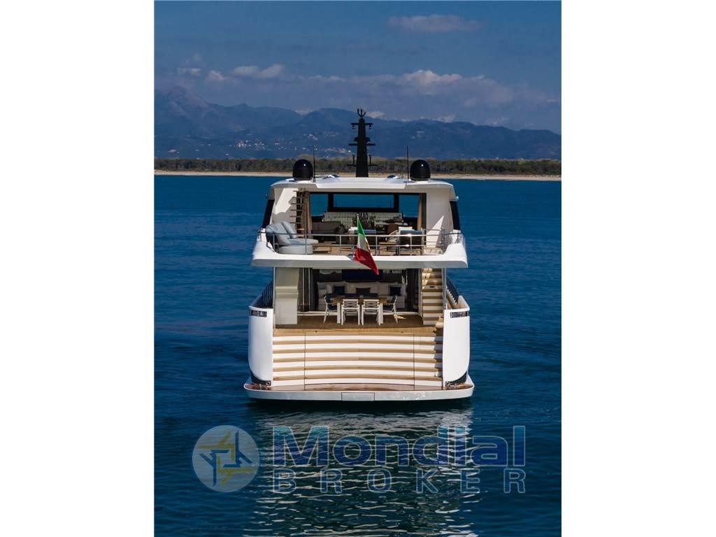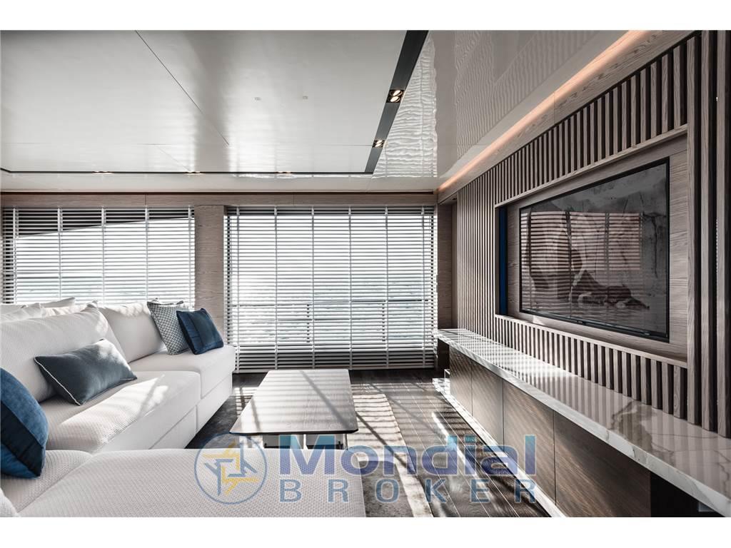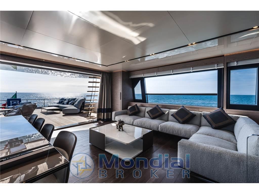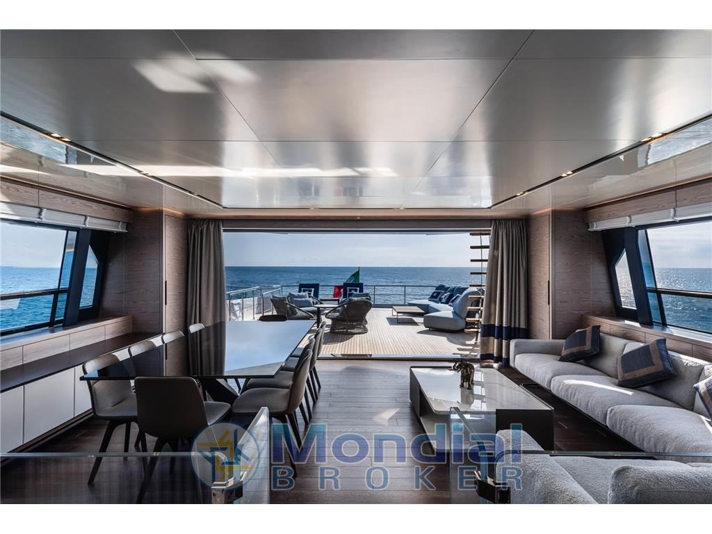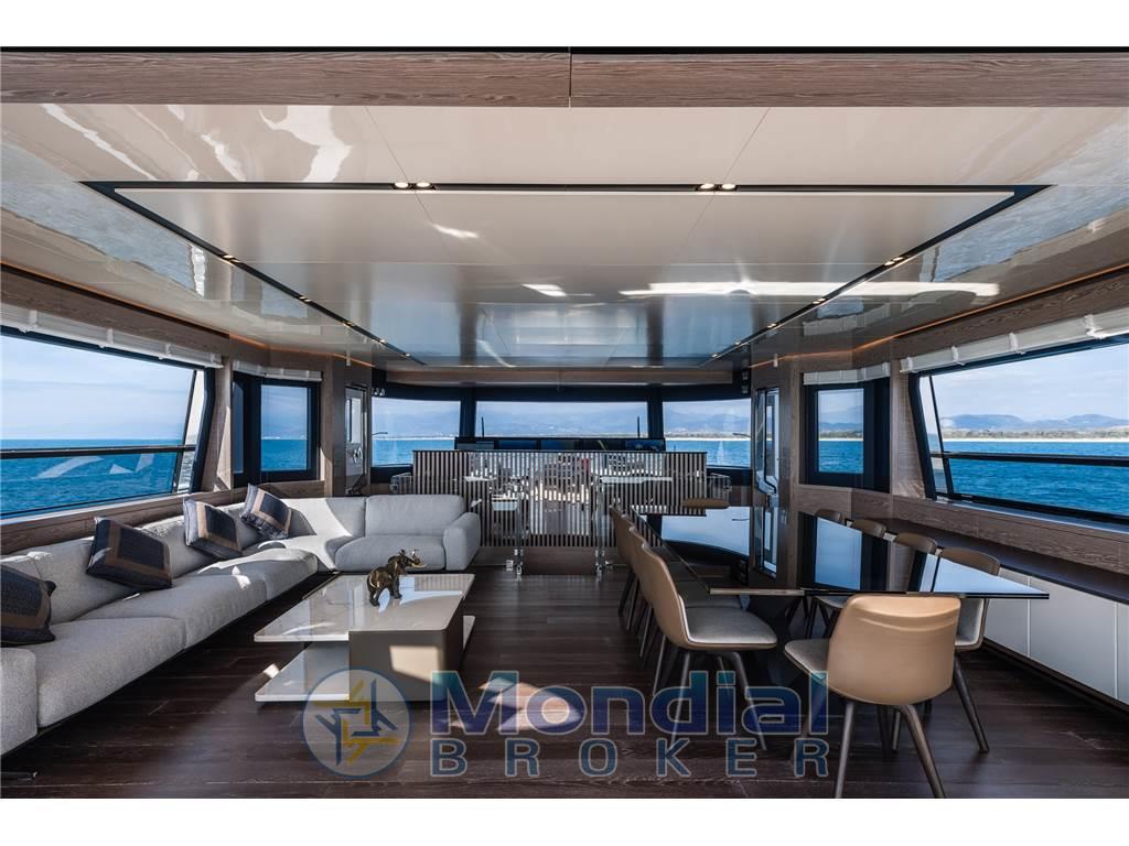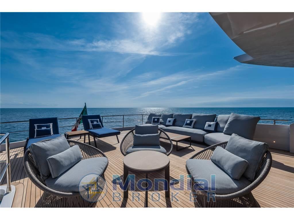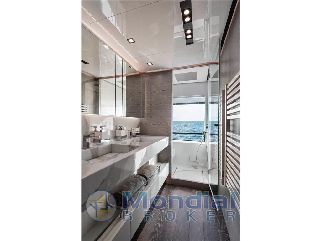 Notas de armamentoAntenna Satellitare TV, Asciugatrice, BBQ/ Grill, Boiler, Clima reversibile, Collegamento internet, Congelatore, Controllo Domotica, Cucina, Cuscineria completa, Cuscineria fly, Dissalatore, Forno, Frigorifero esterno, Frigorifero interno, ICE Maker, Impianto acque nere, Lavastoviglie, Piastra in vetroceramica, Prese interne 220v, Riscaldamento, Stereo, Telecamera, Tendalino, TV, 8 WC marino elettrico, TERZA STAZIONE DI COMANDO, STABILIZZATORE ZEROSPEED E UNDERWAY , WATERMAKER 360 LITRI/ORA . SAUNA