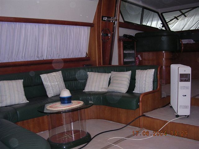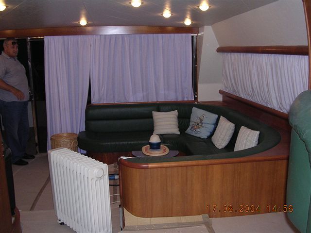 - Arco y hélice de popa. - RaÃz interior. - Las bandas de azul. - Externo Nuevo tapizado. - Bimini top. - 4 TV de plasma. - Instalación de cielo en todas las habitaciones de DVD. |