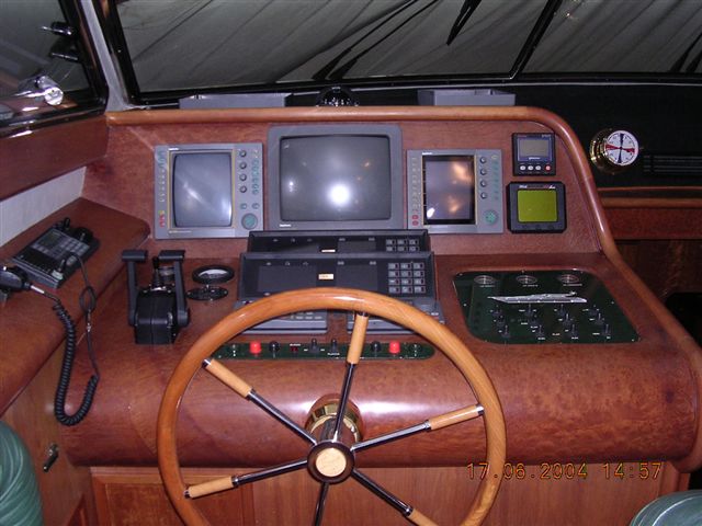 Notas internasNotas de la instrumentacióndos radares, estación meteorológica, GPS, plotter piloto automático dobles, dobles, eco, vhf, SSB, la estación de control de los terceros,Notas de armamentoANTENA DE SATÉLITE. PASARELA, con control remoto, unidades de desalinización (nuevo), aire acondicionado, calefacción, fabricante de hielo, lavavajillas, lavadora, nevera, una grúa eléctrica, 2 HÉLICES, tiernos con PLANK guÃa 25 HP. |