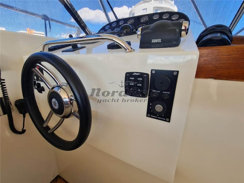Notas internasAria condizionata: Presente Impianto stereo Impianto TV Tv Bagni: 1 Cabine: 1 Posti letto: 4 Cucina Forno: microonde Frigorifero Piano Cottura: 1 Notas de la instrumentaciónPilota automatico: Presente Ecoscandaglio: Presente GPS: Presente Plancetta: in teak Radar: Presente Vhf: Presente Notas de armamentoDESCRIZIONE IMPIANTISTICA Tendalini nuovi, cuscineria prua e poppa nuova, dinette esterna nuova, cielo dinette esterna nuovo con luci a led accensione a sfioro, radio Fusion con subwoofer, doppio frigorifero, tv in dinette, ambienti climatizzati interni ed esterni. Teak plancetta e pozzetto nuovo. ----- Copertura pozzetto Cuscineria prendisole Doccia esterna Elica di manovra a prua: Presente Flaps Frigorifero esterno Luci di cortesia Zattera di salvatagio |