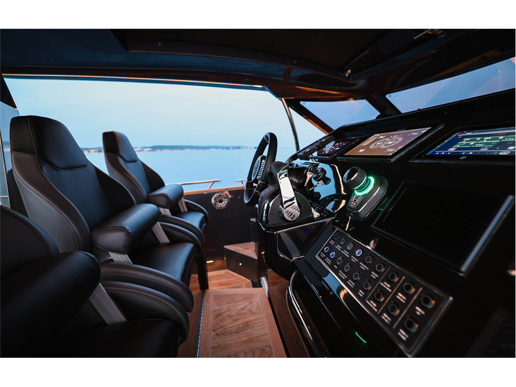 | TECHNICAL SPECIFICATIONS / ESPECIFICACIONES TÉCNICAS Class / Clase: Sport Cruiser /Crucero Deportivo Length/ Eslora 11,40m Beam / Manga 0,90m Draft / Calado 3,60m Velocidad Crucero 28kn Velocidad Máxima 37kn Fuel Capacity/ Capacidad Combustible 1 x 350 l Watercapacity/ Capacidad de agua dulce 1 x 600 l Inboard / Outboard Engines/ Motores Interior / Fueraborda Capacity / Capacidad 12 Cabinas / Cabins 1 Bathrooms / Baños 1 MOTORIZATION / MOTORIZACIÓN 2 * MERCURY MD 3.0 Total Power / Potencia 270 HP Fuel Type / Combustible Diesel Engine Hours/ Horas de motores 58 STANDARD EQUIPMENT • ELECTRICAL EQUIPMENT External power input Inverter Electronics Probe Slider - Speedometer TV Navigation center Plotter - Plotter 2 X 12" SIMRAD DVD Player Autopilot Radio Compass GPS Cockpit speakers VHF radio • INTERIOR EQUIPMENT Bow thruster Electric bilge pump Manual bilge pump Microwave Marine toilet Air conditioning Hot water Refrigerator Freezer Battery charger • EXTERIOR EQUIPMENT Teak cockpit Cockpit shower Teak side decks Radar reflector Cockpit cushions Cockpit table Bathroom ladder Hydraulic bathing platform Electronics • VHF: Simrad RS12 with antenna "GPS: Simrad GO12, WIFI, multi- touch widescreen display, built in echosounder and radar interface" Deck Equipment • "Audio package: Fusion Apollo MS-RA770 with 4 speakers (2 in saloon + 2 in cockpit)" Air conditioning system: • Thermowell AirJet 12V Microvawe in galley, 230V Cockpit refrigerator, 65l, 12V • Wet bar with fridge Electricity and Engine Specs • Battery for bow thruster and windlass under bed in bow cabin Victron - MultiPlus inverter / charger 3kVA + BMV • Bow thruster: Side Power SE50 -140 |