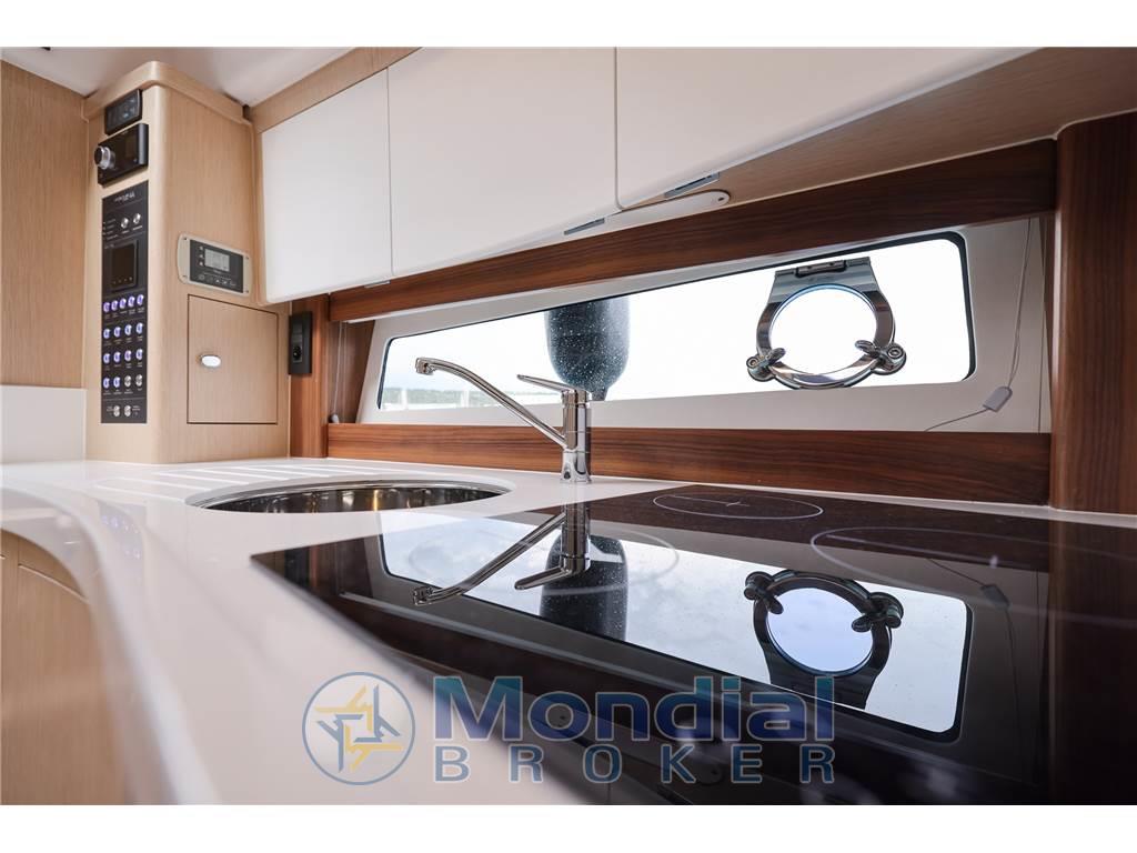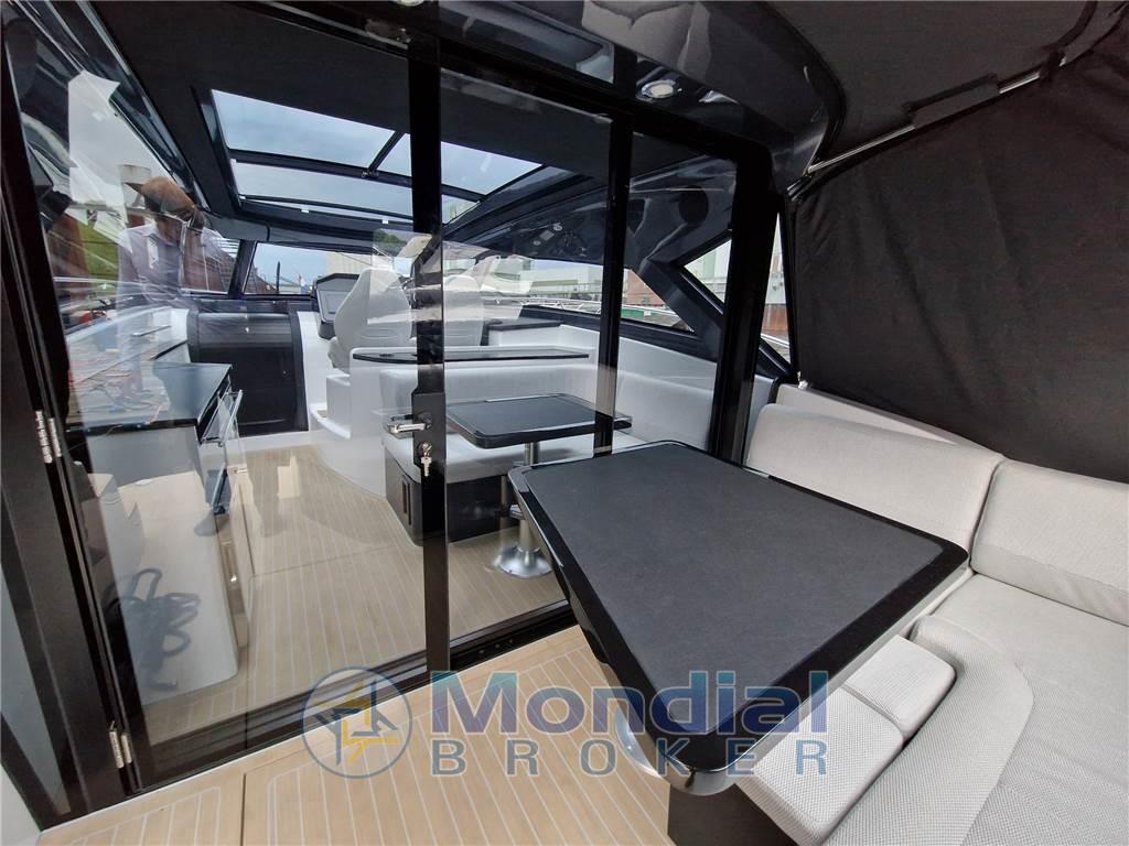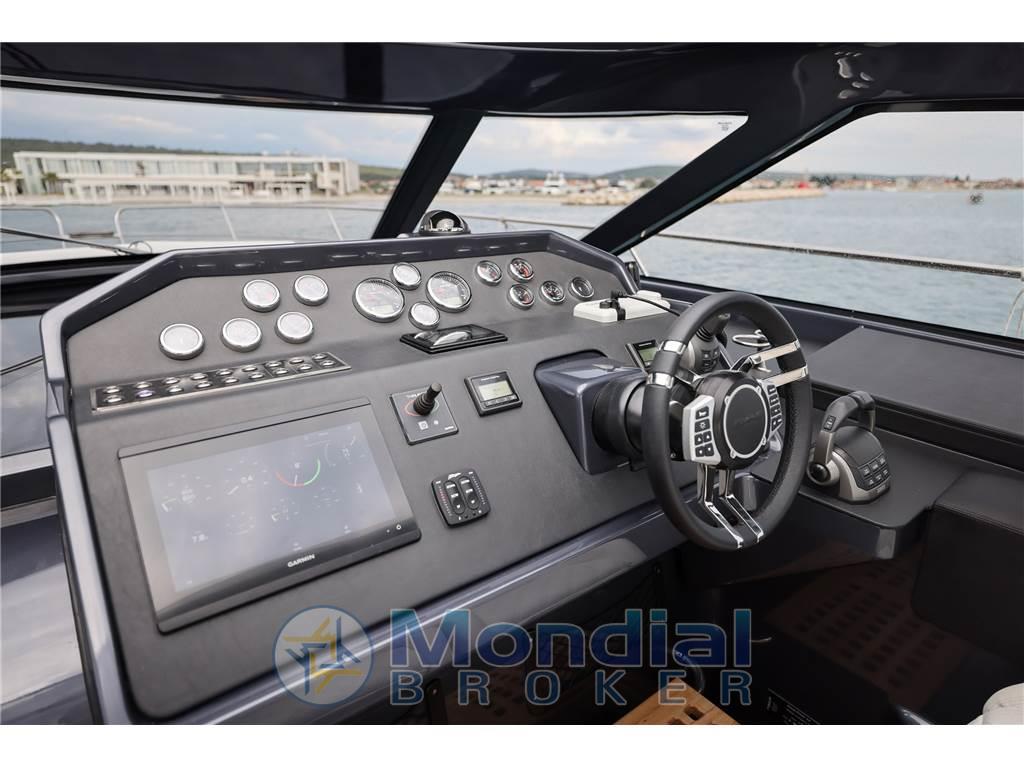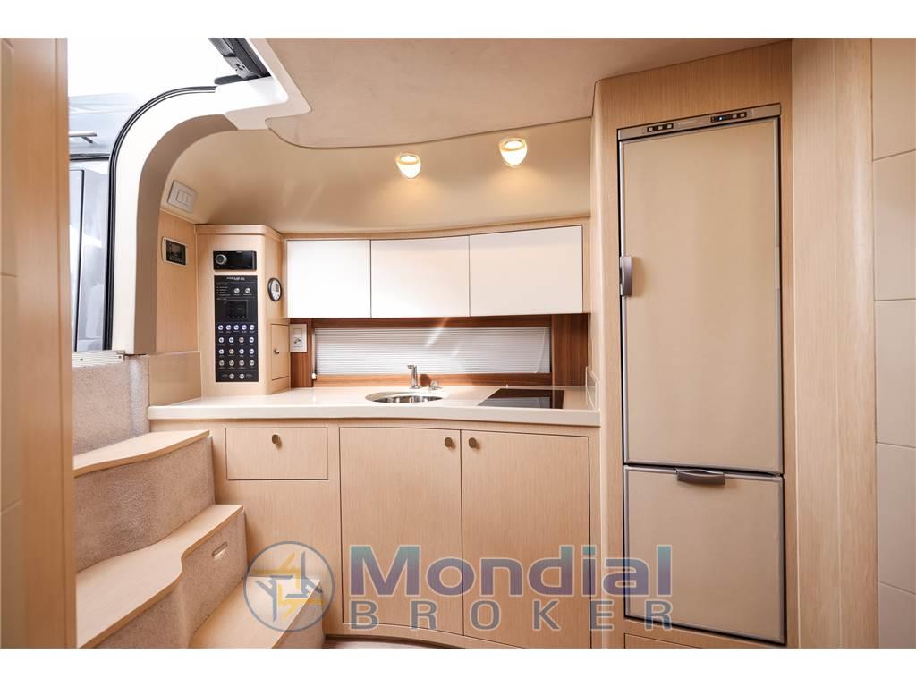 Notas internasNotas de la instrumentaciónAncora (Bruce), Angolo barra, 4 Batterie (n.2 batterie 140 Ah per i servizi e n.2 batterie 140 Ah per i motori), Bussola, Caricabatterie, Hard top (con tetto apribile scoreevole in vetro), Piattaforma (di poppa in teak), 3 Pompa di sentina automatica, Pozzetto Teak, Presa 220V banchina, Salpa Ancore Elettrico, Scaletta da bagno (pieghevole), Tavolo pozzettoNotas de armamentoBoiler, Microonde, 2 WC marino elettrico, Musone di prua in acciaio inox con fermo ancora. 10 oblò apribili. Corrimano hard top in acciaio inox. sedili pilota e copilota regolabili. Mobile bar con piano in kerrock. Indicatori motore (giri al minuto, pressione olio, temperatura liquido di raffreddamento, voltmetro, indicatore Power-trim, spie di allarme, livello carburante). Tridata. Prese di corrente 230 V. Pavimento in legno in dinette. Wet bar in pozzetto in Kerrock |