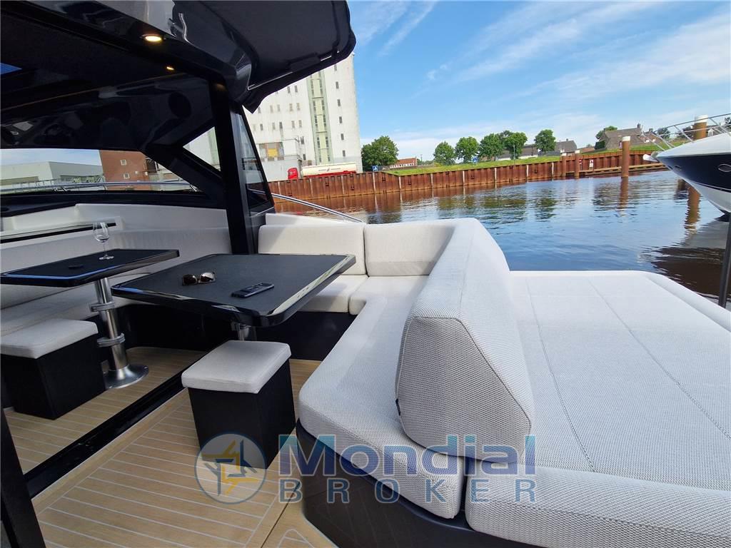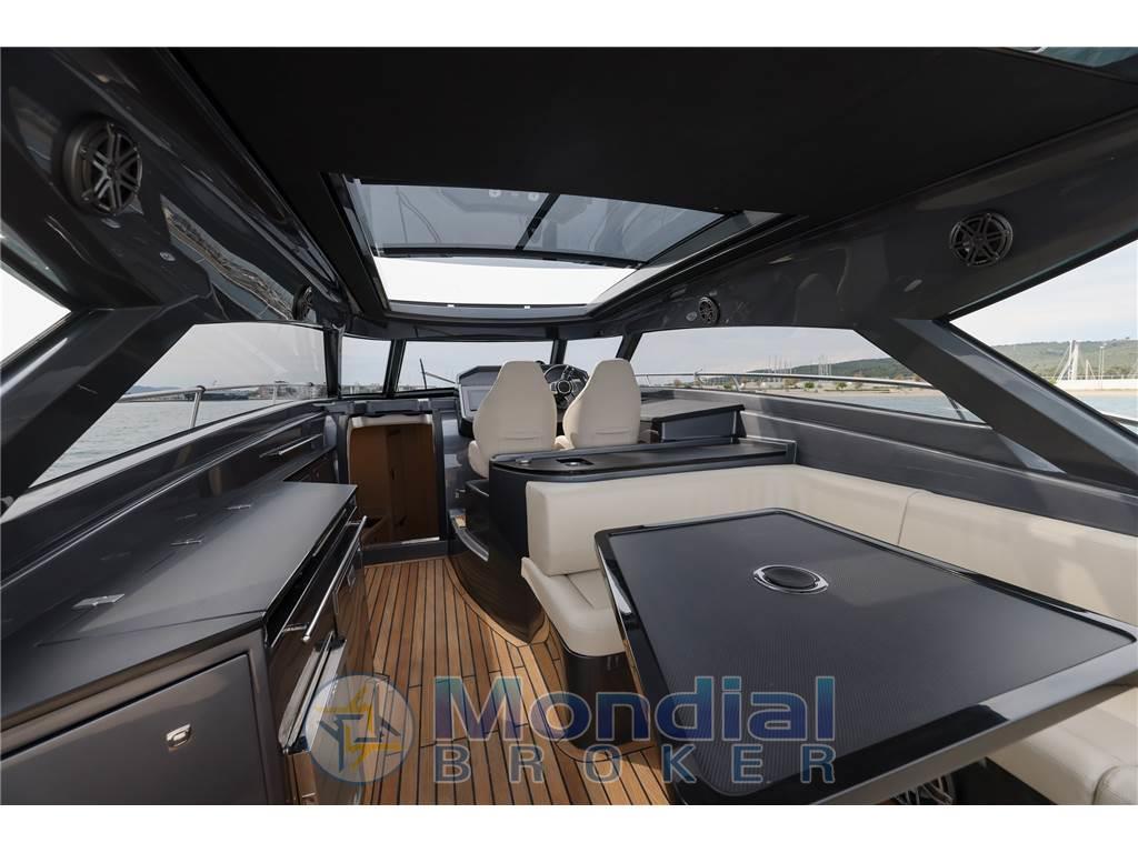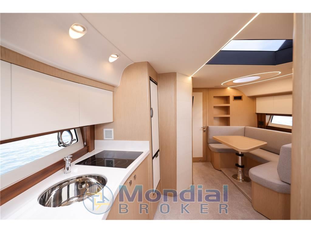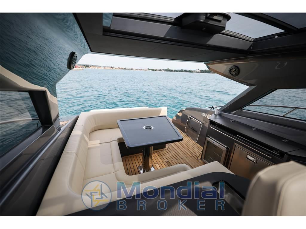 Notas internasNotas de la instrumentaciónAncora (Bruce), Angolo barra, 4 Batterie (n.2 batterie 140 Ah per i servizi e n.2 batterie 140 Ah per i motori), Bussola, Caricabatterie, Hard top (con tetto apribile scoreevole in vetro), Piattaforma (di poppa in teak), 3 Pompa di sentina automatica, Pozzetto Teak, Presa 220V banchina, Salpa Ancore Elettrico, Scaletta da bagno (pieghevole), Tavolo pozzettoNotas de armamentoBoiler, Microonde, 2 WC marino elettrico, Musone di prua in acciaio inox con fermo ancora. 10 oblò apribili. Corrimano hard top in acciaio inox. sedili pilota e copilota regolabili. Mobile bar con piano in kerrock. Indicatori motore (giri al minuto, pressione olio, temperatura liquido di raffreddamento, voltmetro, indicatore Power-trim, spie di allarme, livello carburante). Tridata. Prese di corrente 230 V. Pavimento in legno in dinette. Wet bar in pozzetto in Kerrock |