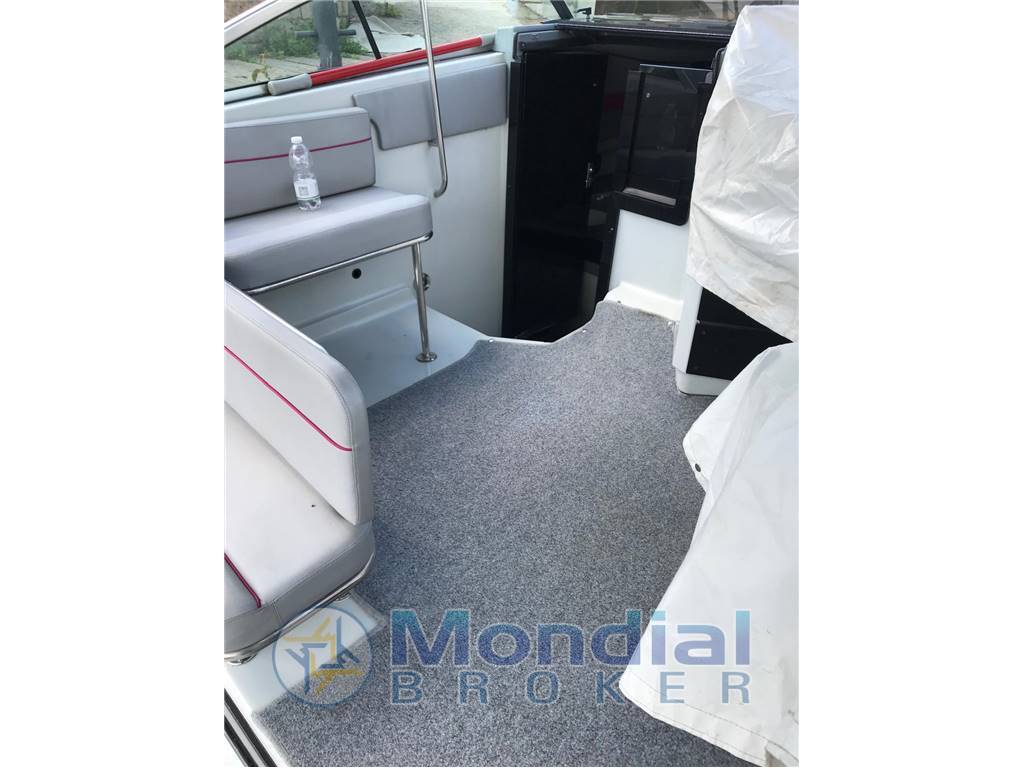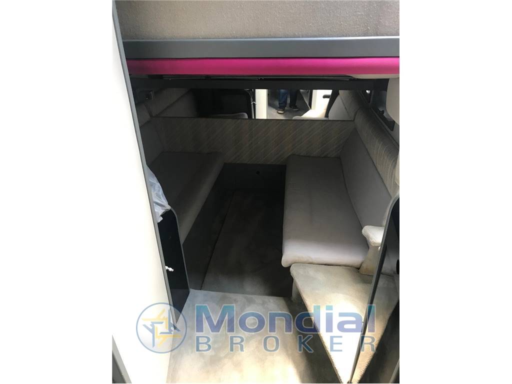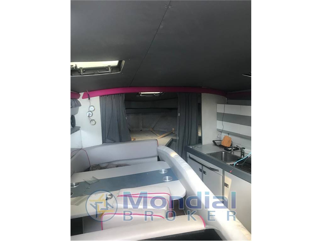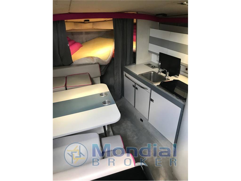 Notas internasInterni in legno laccato bianco/grigio con una cabina armatore a prua, il secondo letto per 2 persone sotto la guida, dimette formata da un divano a U con un tavolo di fronte ad esso la cucina composta da lavello frigorifero, angolo cottura e vari armadietti per lo stivaggio di viveri e cambusa. Il bagno chiuso con paratie composto dal lavandino, doccia e WC.