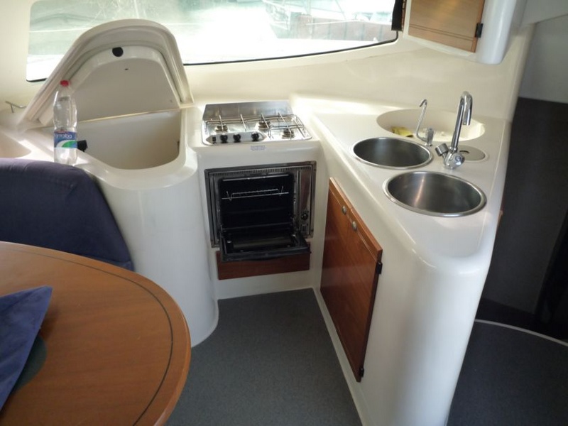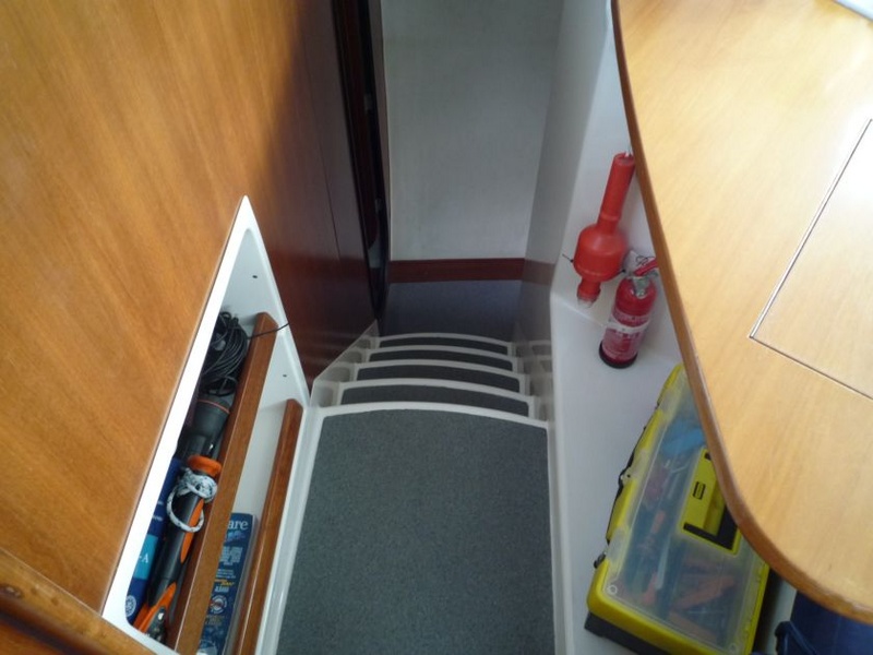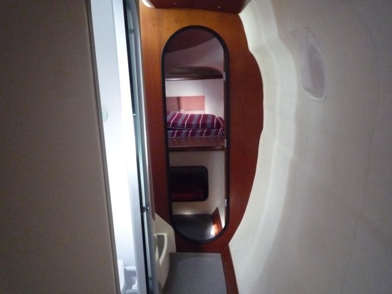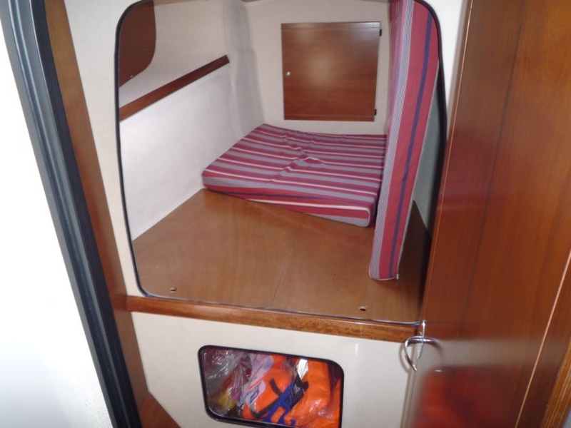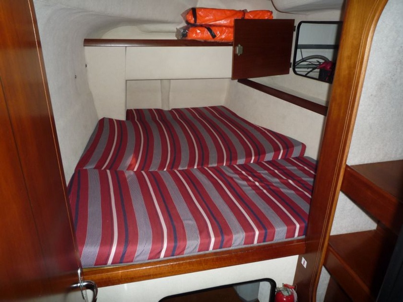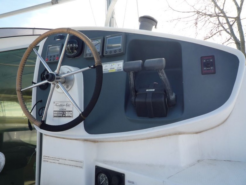 Notas internas- Piano di lavoro - 2 lavelli con sgocciolatoio - Vano spazzatura con accesso verticale, eliminazione sacchetti attraverso vano indipendente - Rubinetto acqua calda e fredda sotto pressione con miscelatore - Rubinetto acqua di mare sotto pressione - Piano cucina inox 3 fuochi con ferma pentole - Forno a gas inox - Frigorifero capacità con impianto di raffreddamento 12 V - Colonna bar comprendente un vano immondizia indipendente - piano di lavoro e cassetto per le posate - Grande armadietto sotto il lavandino - Armadietto sopra il lavandino - Cassetto sotto il forno - Illuminazione mediante spot alogeni - Armadio sulla porta d’entrata - vano armadio con piani interni - un vano sopra il letto - 1 appendiabiti - ventilazione con un osteriggio su ponte e uno laterale - finestratura fissa sulla fiancata esterna - tendine oscuranti - illuminazione con spot alogeni e due lampadine in testata del letto - Zanzariere rimovibili Vani di prua (1 +1 cuccetta per equipaggio): - accesso dalla cabina anteriore con porta in legno - finizione completa di pittura e gel coat - riserva di galleggiabilità sotto il piano pavimento Cabina posteriore: - accesso attraverso porta in legno dal corridoio - letto doppio (1.5/1.2 x 2 m approx.) con accesso da un lato tipo semi-island bed - vani sotto il letto con accesso frontale - vani portaoggetti da un lato del letto - vano armadio con piani interni - ventilazione attraverso osteriggio sul ponte più un oblò sul ponte posteriore - finestratura fissa fiancata esterna - illuminazione mediante spot alogeni di cui due su testate del letto - tendine oscuranti - Zanzariere rimovibili Bagno centro barca dx : - Accesso da una porta in legno - Piano con lavabo intergrato e specchio - Acqua calda e fredda con miscelatore e doccia fissa - Doccia con pompa evacuazione acqua elettrica - W.C. manuale - Accessori d’uso (supporto carta igienica e porta asciugamani) - Ventilazione tramite un osteriggio - illuminazione con 2 neon Allestimento interno : - Interni quadrato e cabine : pagliolato a doghe tipo parquet - Finizioni su pareti e soffitti - Cuscineria interna tipo cuoio, colore beige - Materassi in mousse poliestere - Ventilazione naturale permanente attraverso il gavone dell’ancora Allestimento quadrato : - Quadrato accessibile attraverso una porta scorrevole - Finestratura panoramica anteriore - 1 tavolo in legno per 8/10 persone, divanetto a 6 posti e due sedie. - Ripostigli sotto le sedute - Ventilazione attraverso un oblò frontale apribile + 2 oblò anteriori - Illuminazione principale data da tre spot alogeni, più altri spot alogeni orientabili. Bagno centrale scafo sx - Accesso da una porta in legno - Piano con lavabo intergrato e specchio - Acqua calda e fredda con miscelatore e doccia fissa - Doccia con pompa evacuazione acqua elettrica - W.C. manuale - Accessori d’uso (supporto carta igienica e porta asciugamani) - Ventilazione tramite un osteriggio - Illuminazione con un neon Cabina anteriore: - Accesso attraverso porta in legno dal corridoio - Letto doppio (1,10/1,45 x 2m approx.) con accesso da un lato tipo semi-island bed - Vano per stivaggio sotto il letto con accesso laterale - Armadio con ripiani interni - Piano sotto il letto - Ventilazione attraverso osteriggio e oblò finestratura fissa fiancata esterna - Illuminazione mediante lampade alogene di cui due su testata del letto - Tende oscuranti - Zanzariere rimovibili Zona carteggio - 1 tavolo carteggio in legno con ribaltina - Console per quadro elettrico a 12V e strumenti di navigazione - 1 presa 12 V - Illuminazione del quadro elettrico 12V - Luce tavolo da carteggio Cabina posteriore sotto timoneria (armatoriale): - Accesso attraverso una porta in legno in corridoio - Letto doppio ( 1.60 x 2.00 m approx.) con accesso laterale - Ripostiglio sotto il letto con accesso frontale - Vani portaoggetti su ambedue i lati del letto - Vano armadio con piani interni - Ventilazione: un osteriggio su ponte e un oblò apribile - Finestratura fissa sulla fiancata esterna - Illuminazione con spot alogeni e due lampadine in testata del letto - Tendine oscuranti su tutte le aperture - Oblò su murata - Zanzariere rimovibili Bagno centro barca dx: - Accesso attraverso una porta in legno - Piano di appoggio con lavabo integrato e specchio - Acqua calda e fredda con miscelatore e doccia integrata - Doccia con pompa elettrica di evacuazione - W.C. manuale - Accessori d’uso: porta asciugamani e porta carta igienica - Ventilazione attraverso osteriggio - Illuminazione con 2 neon Cabina anteriore: - accesso attraverso porta di legno in corridoio - letto doppio ( 1.10/1.45 x 2 m approx.) con accesso da un lato tipo semi-island bed - ampio spazio di stivaggio sotto il letto con accesso laterale Allestimento ponte Timoneria : - accesso con gradini dal pozzetto - sedile timoniere fisso (tre posti) con schienale - console strumenti grande visibilità - grande pozzetto piano - prendisole dietro timoneria, con poggiapiedi e poggiatesta - divano 6 posti attorno al tavolo - un tavolo fisso al pozzetto - un divanetto 3 posti sotto il solarium - vano portaoggetti sotto solarium - vano portaoggetti sotto divano - un grande vano nel divano del pozzetto - due vani zattera con uscita diretta a mare - illuminazione con faretti stagni Ponte anteriore : - grande vano anteriore con 3 compartimenti, doppio ancoraggio, zona raccogli drizze a piè d’albero - uno spazio per il gas (2 bombole) Designed by renowned Joubert/Nivelt team, the Athena 38 is ideal for performance ocean sailing or modified for charter operators. Boasting a high degree of comfort, he has a low centre of gravity to afford maximum safety and with a generous 80 square feet of sail area. New manufacturing technologies employed in the vessel include a single piece hull infused with composite partitions and a deckhouse constructed with RTM eco-technology. An innovative sliding bay provides direct open-plan access between the spacious saloon and cockpit, 