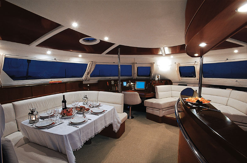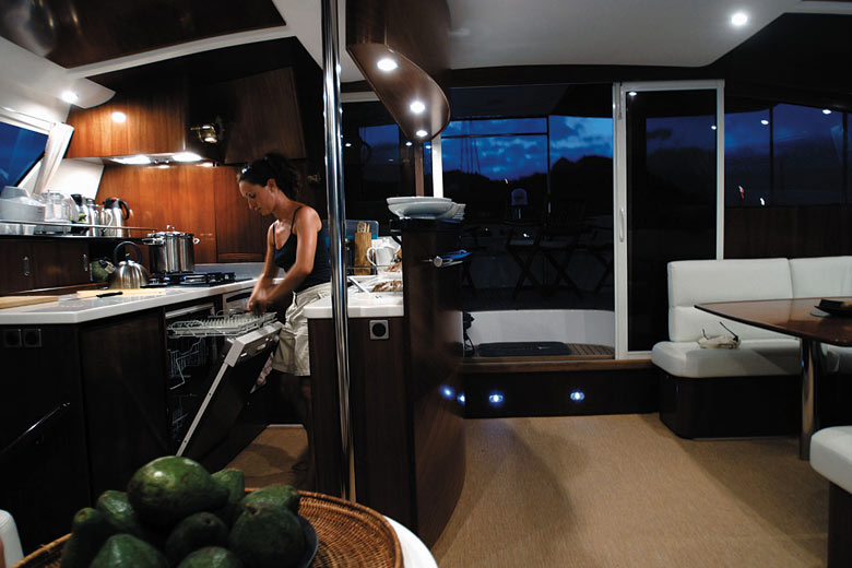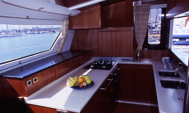 Catamarán de lujo full optional con lavavajillas, microondas, caja fuerte, PC con conexión a internet, aire acondicionado, generador de 12 kW, watermaker 180 l/k, máquina de hielos, antena Omni max TV, reproductor de DVD, pesca, equipo de snorkel para 8, inmersión para 2, kayaks, donut. Disponible en Sicilia, otras bases a petición |
