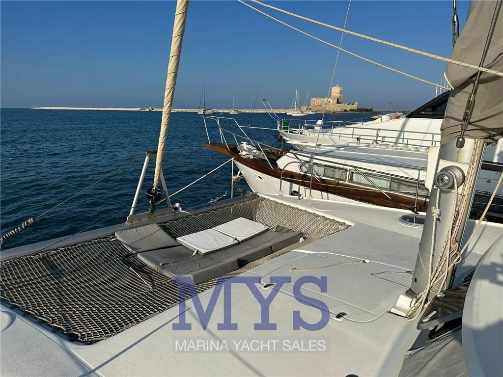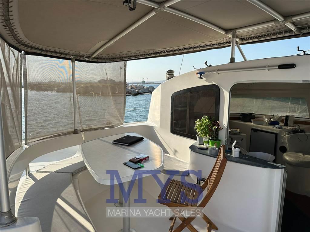Notas internas2 cabine a poppa con letti Matrimoniali 2 Matrimoniale a V di prua Dinette con cuscineria in ecopelle 2023 Cucina con 3 fuochi a gas e microonde 2 Toilette con doccia e WC elettrici Interni i rovere Notas de la instrumentaciónPlotter con antenna GPS (Hummbird 859HD)2 Display (Tridata Raymarine interno ed esterno) Stazione vento (Wind Raymarine) Radio VHF (Icom 401 Euro) Pannelli Solari (400W) Inverter (5000 W) Pilota automatico 2 WC marino elettrico Stereo 4 Altoparlanti (2 interni e 2 esterni) 4 Batterie (Varta da 180A) Autoclave Boiler Contamiglia Caricabatterie Ecoscandaglio Frigorifero interno (con porta) Microonde Presa 220V banchina Prese interne 12v Prese interne 220v Salpa Ancore Elettrico Log Luci di cortesia Pompa di sentina automatica Notas de armamento4 Winch (Self Tailing)Ancora (con catena calibrata) Angolo barra Avvolgi Fiocco Barometro Bimini (con struttura rigida) Binocolo Bussola Cassetta di pronto soccorso Catamarano Cuscineria di poppa (2023) Cuscineria di prua (2023) Cuscineria interna 2023 Cuscineria Pozzetto (2023) Doccia esterna Dotazioni di sicurezza entro 50 miglia Gruette per tender Lazy Bag Lazy Jack Motore ausiliario (Fuoribordo per tender Honda 6Hp) Oscuranti Passerella Piattaforma (Maggiorata con doghe in teck ) Pompa di sentina manuale Porta ingresso Riflettore Radar Sartiame spiroidale (sostituito 2019) Scaletta da bagno Tavolo pozzetto Teak sintetico a poppa e sulle scale 2023 Teli copri finestra Tender (Selva 3.1 - 2023) Windex Zattera di salvataggio |