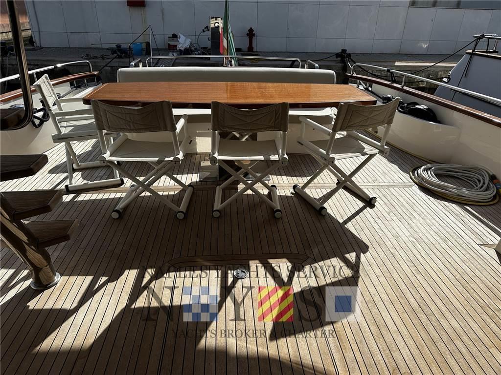 Notas internasNotas de la instrumentaciónAngolo barra, Antenna radar (raymarine), Bussola, Comando motori elettronico (3 postazioni), Computer di bordo (Naviop ricondizionato), Contametri catena, Ecoscandaglio (raymarine), GPS (raymarine E 120 plancia E 80 Fly), Interfaccia, Interfono, Pilota automatico (Raymarine), Radar (Raymarine), Radio VHF (Raymarine Ray 240 E), Sedile Copilota (2 posti panchetta).Notas de armamentoAllestimento tecnico e di coperta:Allarme motore, Allarme sentina, Ancora, 2 Autoclave (Gianneschi), Autogonfiabile (2 grandi e uno piccolo), Bitte Abbattibili (solo poppa in pedana), Bocche di Lupa (sala macchina), Camminamenti laterali in teak, 3 Caricabatterie (Mastervolt quello grande nuovo 2024), Doppia timoneria, Elica di poppa - stern thruster (Vetus), Elica di prua - bow thruster (Vetus 2400 Wat revisionato 2024), Fari fissi a poppa, Faro orientabile (Prua fly), Flap idraulici, Garage per tender (Da revisionare l'apertura), Impianto antincendio, Impianto Aria Compressa (Doppia pomba 75000 VTU), Indicatori Flaps, Lavaggio catena, Lavandino nel Pozzetto, Luci di cortesia, Passerella (IDRAULICA), Piattaforma (Idraulica Opac Mare), Pompa di sentina automatica, Pompa di sentina elettrica, Pompa di sentina manuale, Porta ingresso (Acciao Opac Mare), 2 Porta laterale (in cucina e salone elettriche), Pozzetto Teak, Presa 220V banchina, Presa acqua banchina, 2 Raddrizzatore (uno e' per i generatori), Salpa Ancore Elettrico (Lofrans), Scaletta da bagno (elettrica Opac Mare), Selle per Tender, Tavolo pozzetto (Teak verniciato), Tavolo Salone Abbattibile, Tender (Aer Marine 2.40), Tientibene con cancelletti, Tromba, 2 Winch Elettrico (poppa), 2 Winch tonneggio di poppa (Lofrans). Dotazioni domestiche di bordo: Aria condizionata (Climman su tutta le cabine), Cassaforte, Clima reversibile, Dissalatore (in riparazione), Impianto acque nere, 2 Inverter, Pavimento interno in legno, Prese interne 220v, Riscaldamento, Serbatoio Acque Nere, WC marino elettrico. Dotazioni di sicurezza: Barometro, Cassetta di pronto soccorso, Cinture di salvataggio, Dotazioni di sicurezza oltre 50 miglia, Giubbetti di salvataggio, 2 Zattera di salvataggio. Intrattenimento: Altoparlanti (per radio), Radio AM/FM, Stereo (Bose). Cucina ed elettrodomestici: Congelatore, Cucina (Miele 4 fuochi), Forno (Miele), Frigorifero esterno (Fly), 2 Frigorifero interno, ICE Maker, Lavasciuga (Miele), Lavastoviglie (Miele), Microonde. Tappezzerie: Bimini (Fly), Copripozzetto, Cuscineria completa, Cuscineria di poppa (2024), Cuscineria di prua (2024), Cuscineria fly (2024), Cuscineria Pozzetto (2024), Teli copri finestra, Telo copriconsolle, Telo coprisedile, Tendalino (poppa e Fly), Zanzariere. |