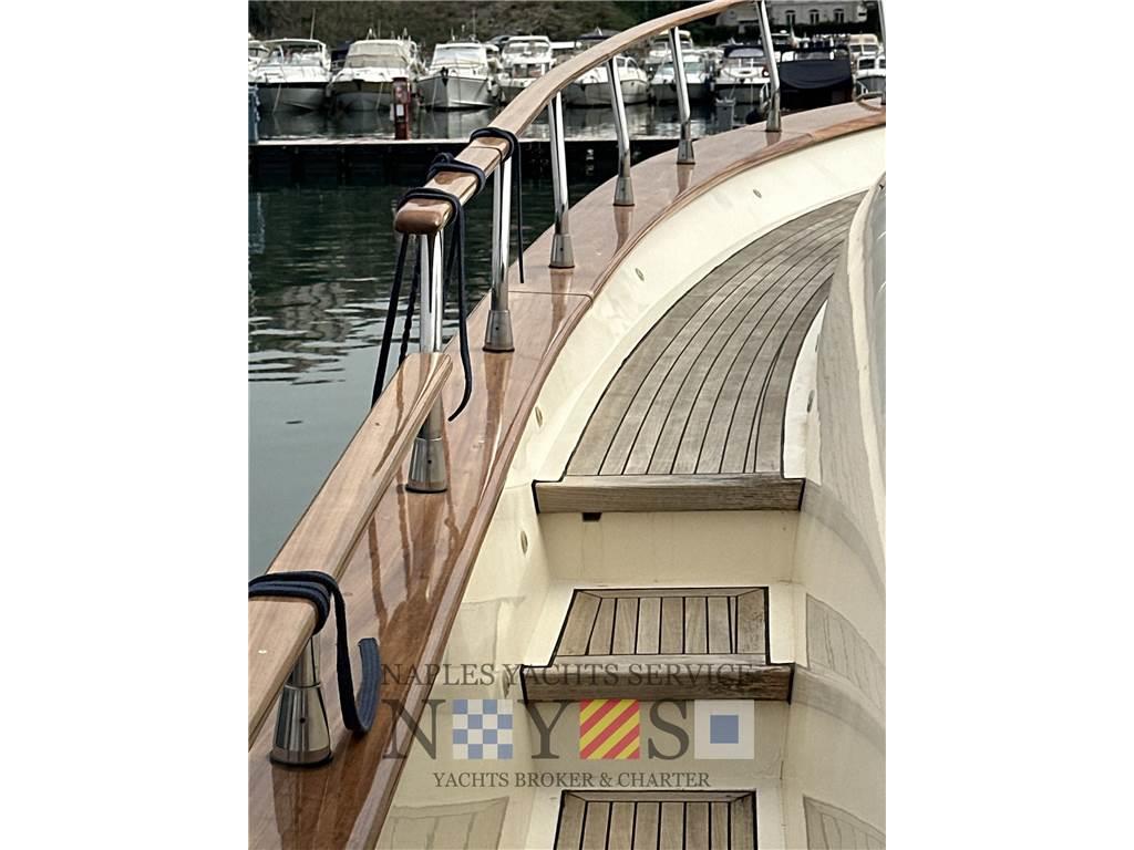Notas internasNotas de la instrumentaciónAngolo barra, Antenna radar, Bussola, Comando motori elettronico, Contametri catena (MZ ELETTRONICS CON TELECOMANDO 2024), Display, Ecoscandaglio, GPS (RAYMARINE E120), Pilota automatico (ST400 RAYMERINE), Radio VHF (RAYMARINE).Notas de armamentoAllestimento tecnico e di coperta:Allarme motore, Allarme sentina, Elica di prua - bow thruster (SIDE POWER), Luci di cortesia, Passerella (BESENZONI), Piattaforma (PROFILO IN ACCIAIO INOX), Pozzetto Teak, Presa 220V banchina, Raddrizzatore (MASTERVOLT), Salpa Ancore Elettrico, Tavolo pozzetto (CON RIPIANO LUCIDO). Dotazioni domestiche di bordo: Aria condizionata, Prese interne 12v, Prese interne 220v, 3 WC marino elettrico. Dotazioni di sicurezza: Zattera di salvataggio. Intrattenimento: Impianto TV, Radio AM/FM, Stereo, TV. Cucina ed elettrodomestici: Cucina, 2 Fornello (INTERNO ED ESTERNO), 3 Frigorifero esterno, 3 Frigorifero interno, Microonde, Piastra elettrica. Tappezzerie: Cuscineria completa, Cuscineria di poppa, Cuscineria di prua. |