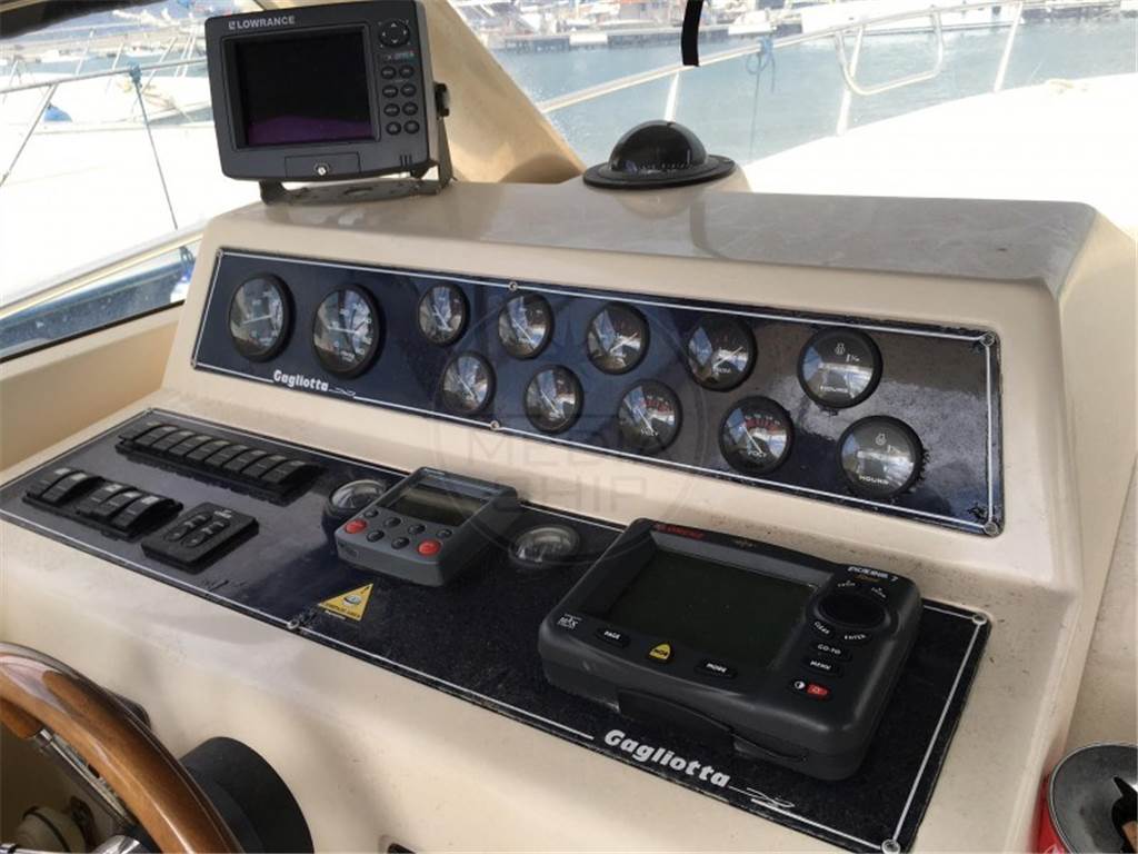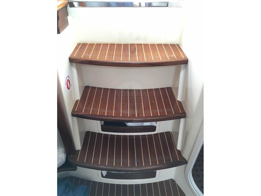 Notas internasNotas de la instrumentaciónBussola, Ecoscandaglio, GPS, Pilota automatico, Radio VHF.Notas de armamentoAllestimento tecnico e di coperta:Ancora, Passerella, Pompa di sentina elettrica, Scaletta da bagno, Tavolo pozzetto, Winch. Cucina ed elettrodomestici: Fornello (Gas), Frigorifero interno (Electric). Tappezzerie: Copripozzetto, Copriscafo. |