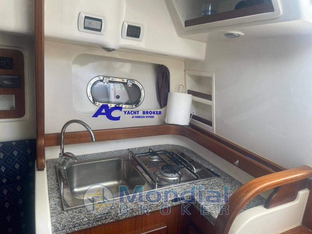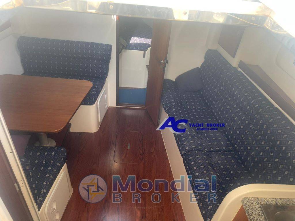 Notas internasNotas de la instrumentaciónGps, vhf, ecoscandaglio, impianto stereoNotas de armamentoBoiler, autoclave, verricello elettrico, caricabatterie, impianto 220 V, passerella idraulica, T-Top rigido, frigo interno ed esterno, cuscineria prendisole prua, doccetta esterna, scaletta bagno, pozzetto attrezzato con sedute e panca |