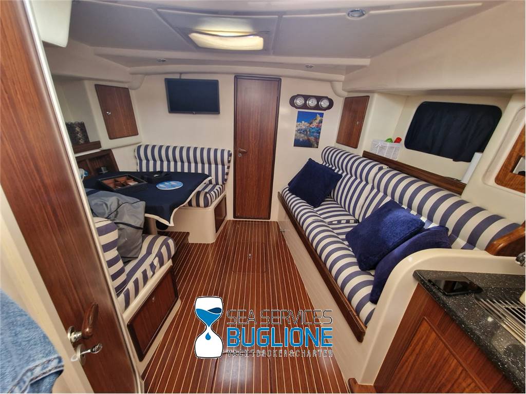 Notas internase n°2 oblò con zanzariera ed oscurante. Dinette doppio divano a sinistra e dritta nave ed a sinistra nave grazie al tavolo trasformabile si può ottenre un letto. Bagno a sinistra nave con wc tecma lavabo etc. Cucina a dritta nave. Notas de la instrumentaciónGps LowranceVhf Autopilota Raymarine Flap Bennet Conta catena quick Stazione barometrica in dinette Quadro magneto termici generali in dinette Notas de armamentoPortellone con alzata elettrica sala maccchinaForna micoronde Cucina ad induzione nuova Doccetta anche a prua Tende di copertura ombreggiante Tenda Camping per inverno Tendalino con i bastoni per pranzare all'ombra |