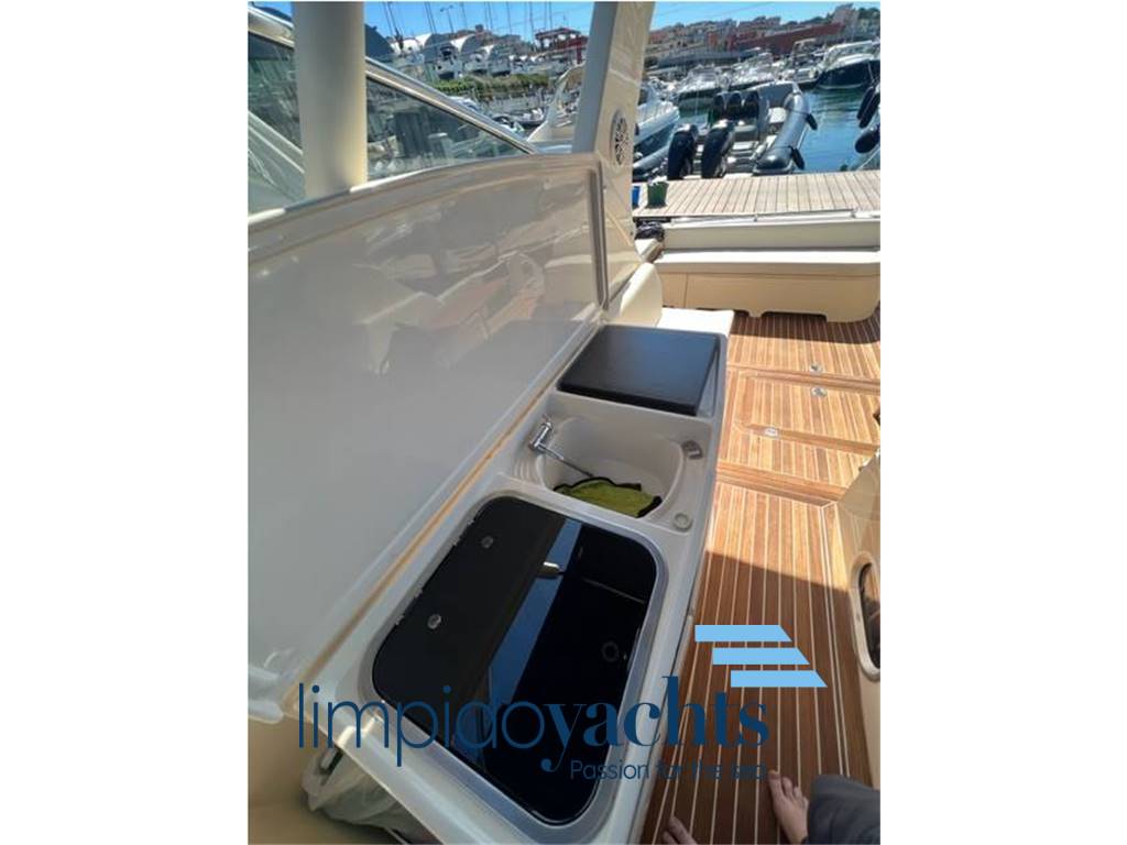 Notas internasNotas de la instrumentaciónGPS GARMIN interfacciato con ECO,flaps LENCO con indicatori, VHF IC-M421, stereo CD con casse, angolo di barra, telecomando conta metri CATENA MZ, strumenti motore analogici e digitali Volvo Penta, manette elettroniche. Notas de armamento- GPS/PLOTTER - FLAPS - TEAK plancetta di poppa- Tendalino pozzetto - Mobile cucina esterno con piano cottura, lavello e frigorifero - Doccia esterna - Scaletta da bagno - Tavolo pozzetto retraibile con pistone idraulico con trasformazione prendisole - Cuscineria esterna completa - Impianto stereo e tv |