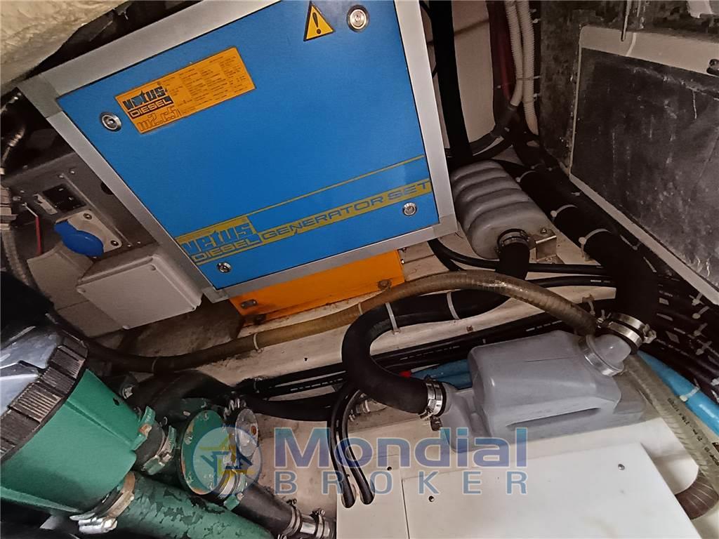 Notas internasNotas de la instrumentaciónAngolo barra, Antenna radar, Bussola, Computer di bordo, Contametri catena, Display, Ecoscandaglio, GPS (Raymarine 11" Touch), Luci di navigazione, Radar, Radio VHF.Notas de armamentoAllestimento tecnico e di coperta:Allarme motore, Allarme sentina, Autogonfiabile, Doccia esterna, Elica di prua - bow thruster, Faro orientabile, Flap idraulici, Impianto antincendio, Indicatori Flaps, Lavaggio catena, Luci di cortesia, Passerella (Idraulica), Piattaforma, Pompa di sentina automatica, Pompa di sentina manuale, Pozzetto Teak, Presa 220V banchina, Presa acqua banchina, Rollbar, Salpa Ancore Elettrico, Scaletta da bagno, Sistema Depurazione acque nere, Tavolo Salone Abbattibile, Tromba. Dotazioni domestiche di bordo: Aria condizionata, Clima reversibile, Impianto acque nere, Pavimento interno in legno, Prese interne 12v, Prese interne 220v, Riscaldamento, Serbatoio Acque Nere, WC marino elettrico. Dotazioni di sicurezza: Riflettore Radar. Intrattenimento: Altoparlanti, Impianto TV, Radio AM/FM, Stereo. Cucina ed elettrodomestici: Cucina, Fornello, Frigorifero interno. Tappezzerie: Bimini, Cappottina, Copripozzetto, Cuscineria completa, Cuscineria di poppa, Cuscineria di prua, Cuscineria fly, Oscuranti, Teli copri finestra, Telo Copertura Fly, Telo copriconsolle, Tendalino. |